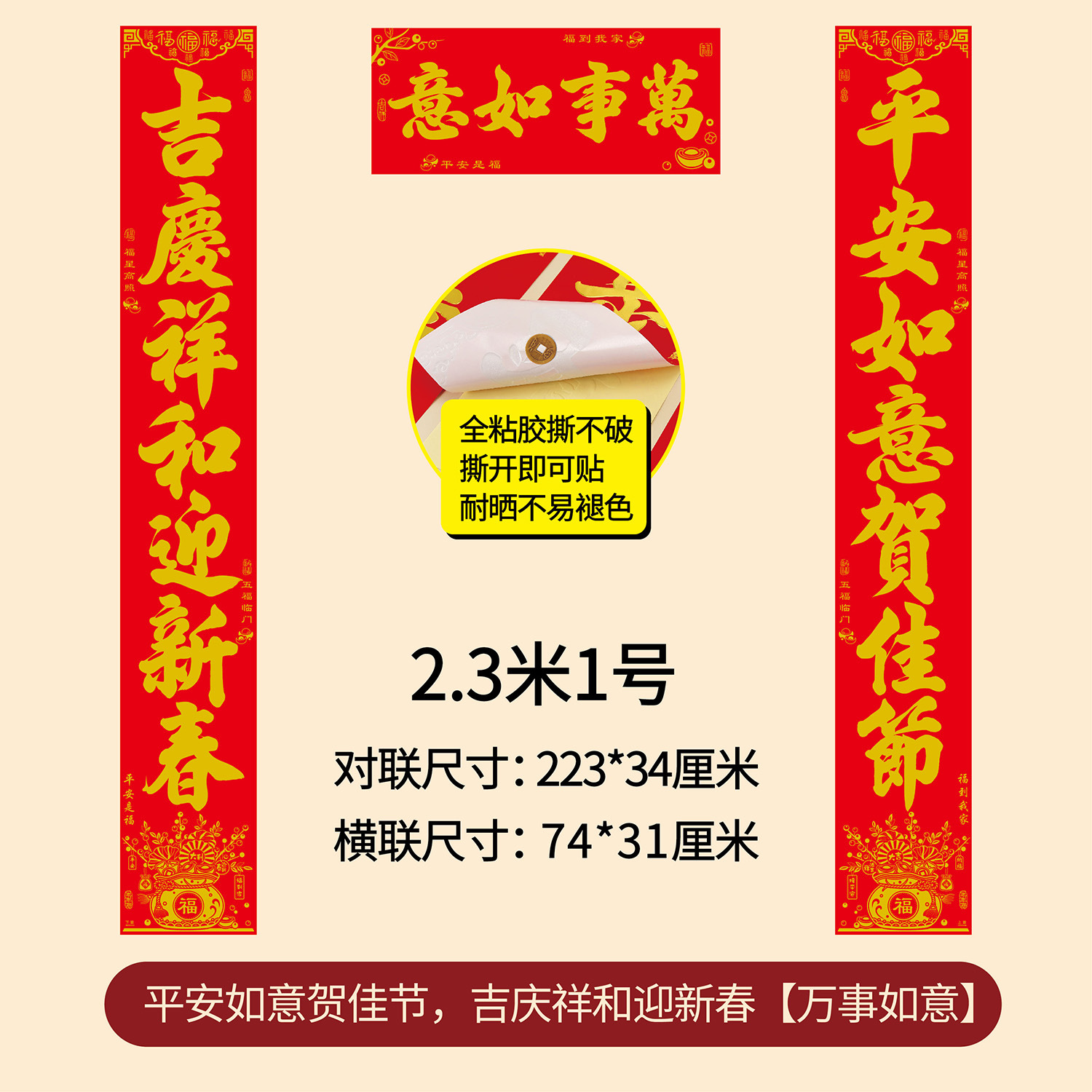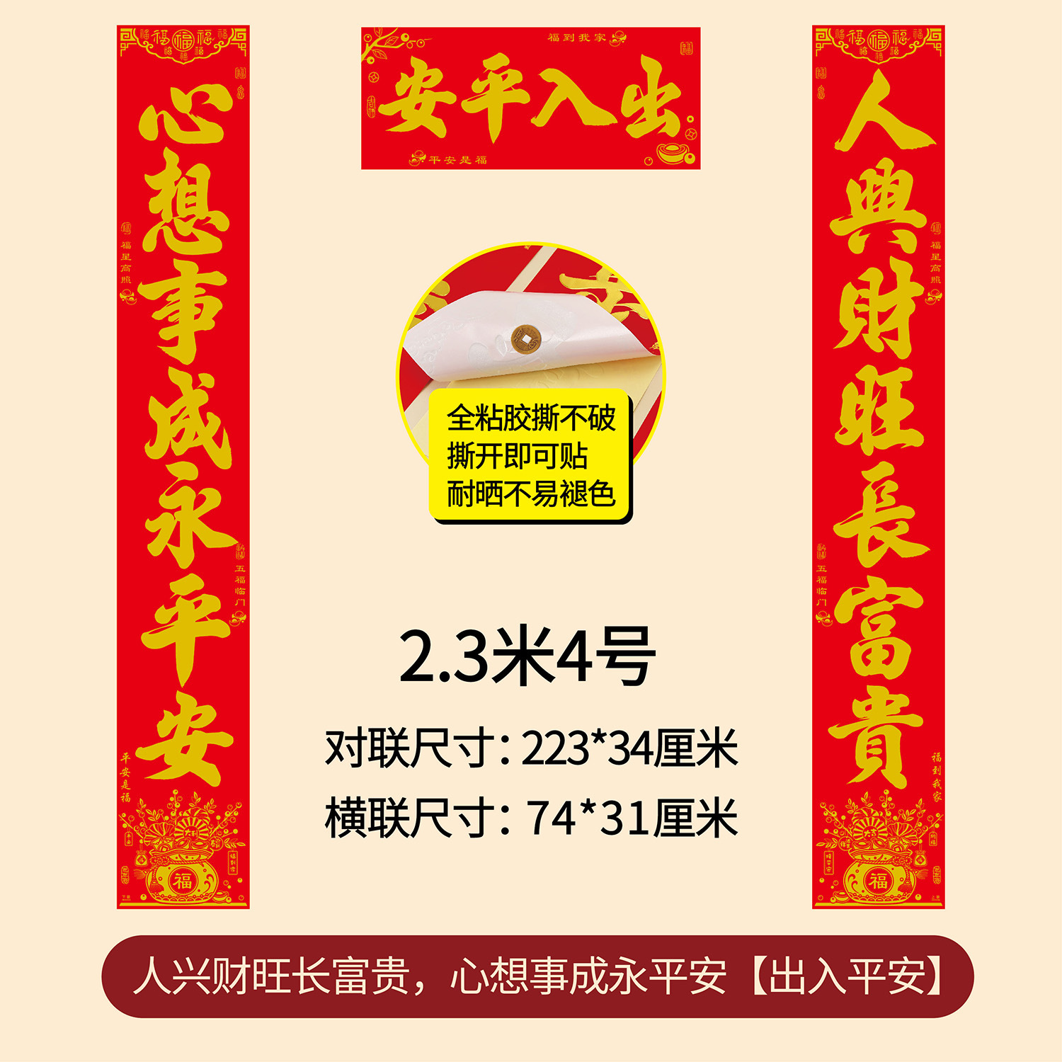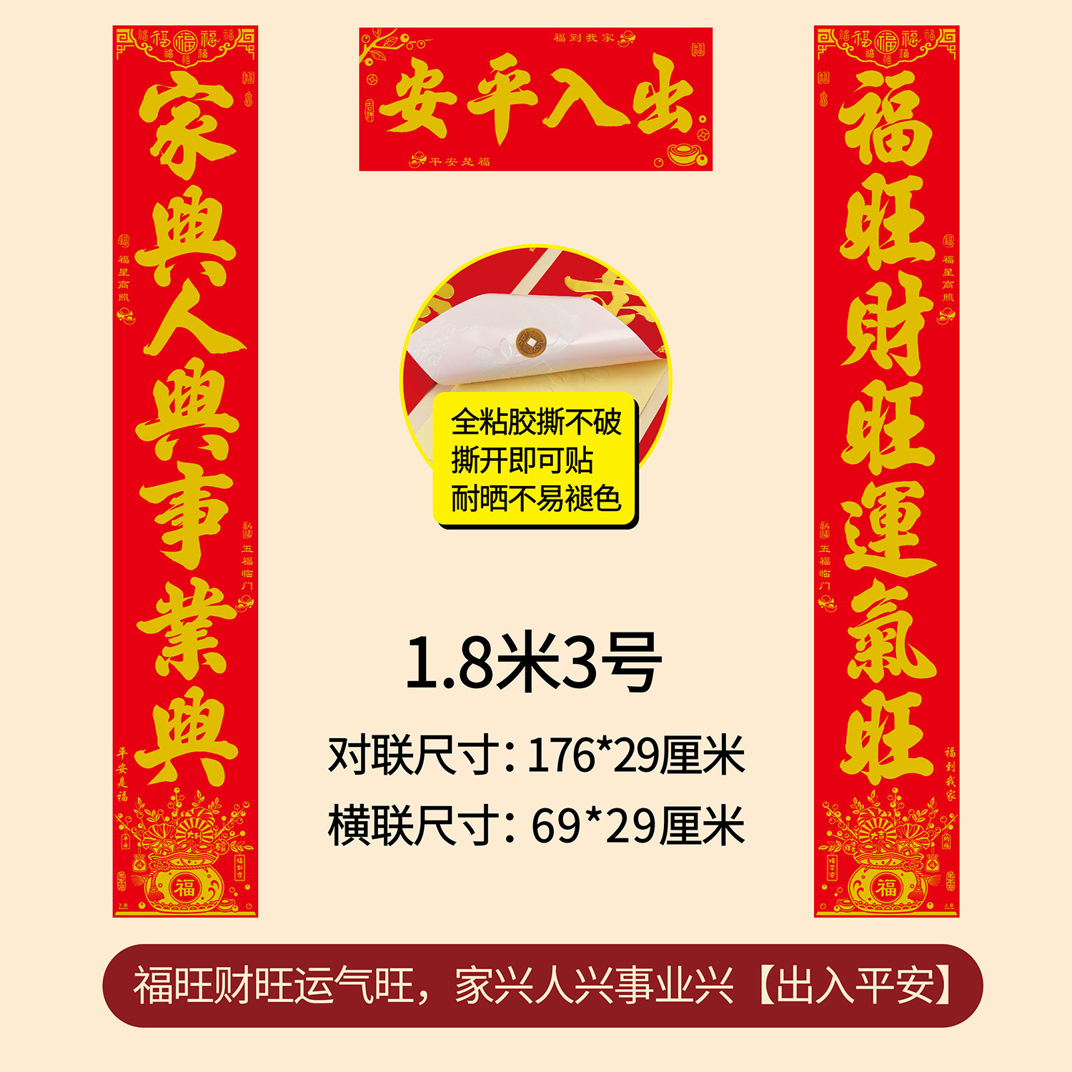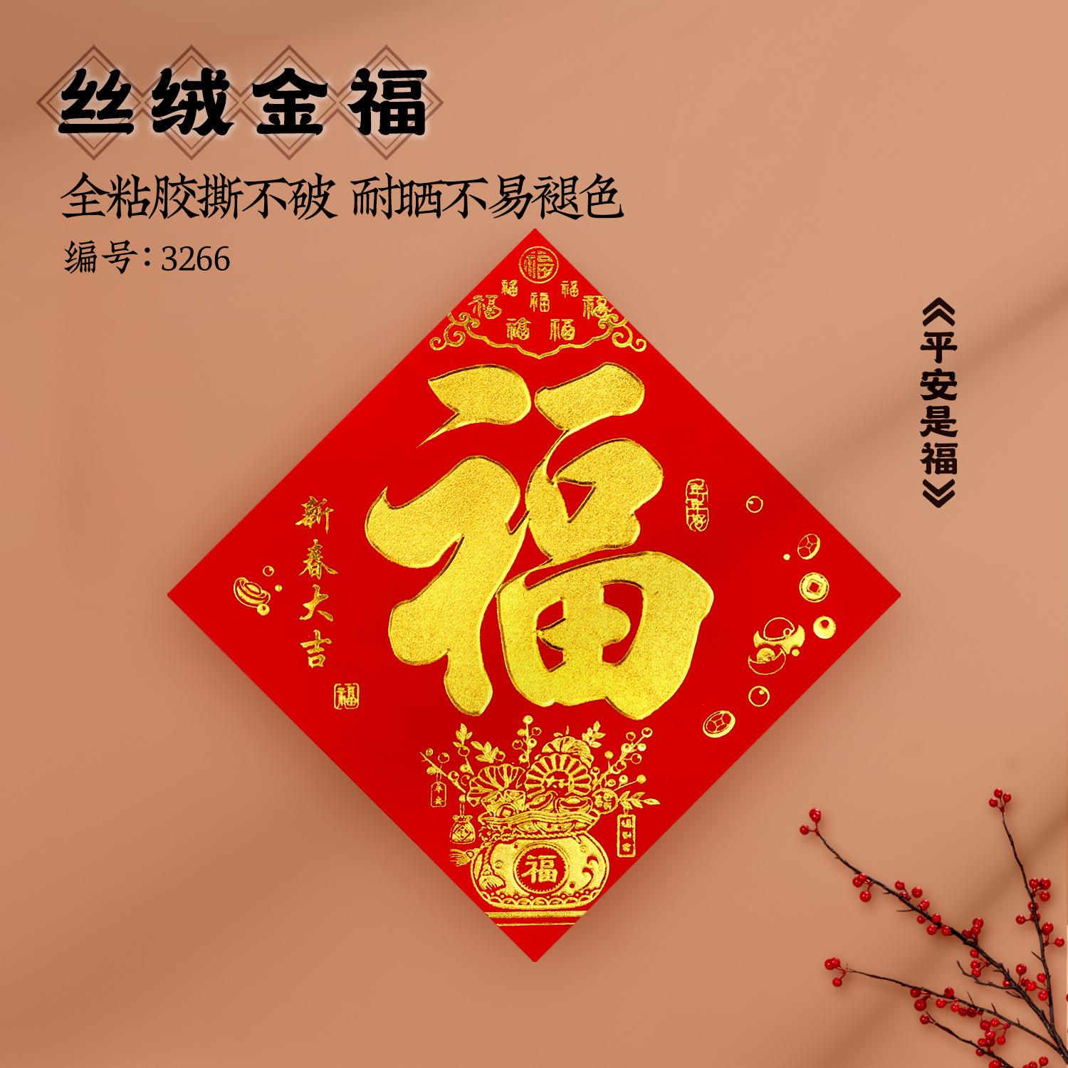 年年好厂家直供新款丝绒烫金全背胶春联过年对联大门福贴春节门联