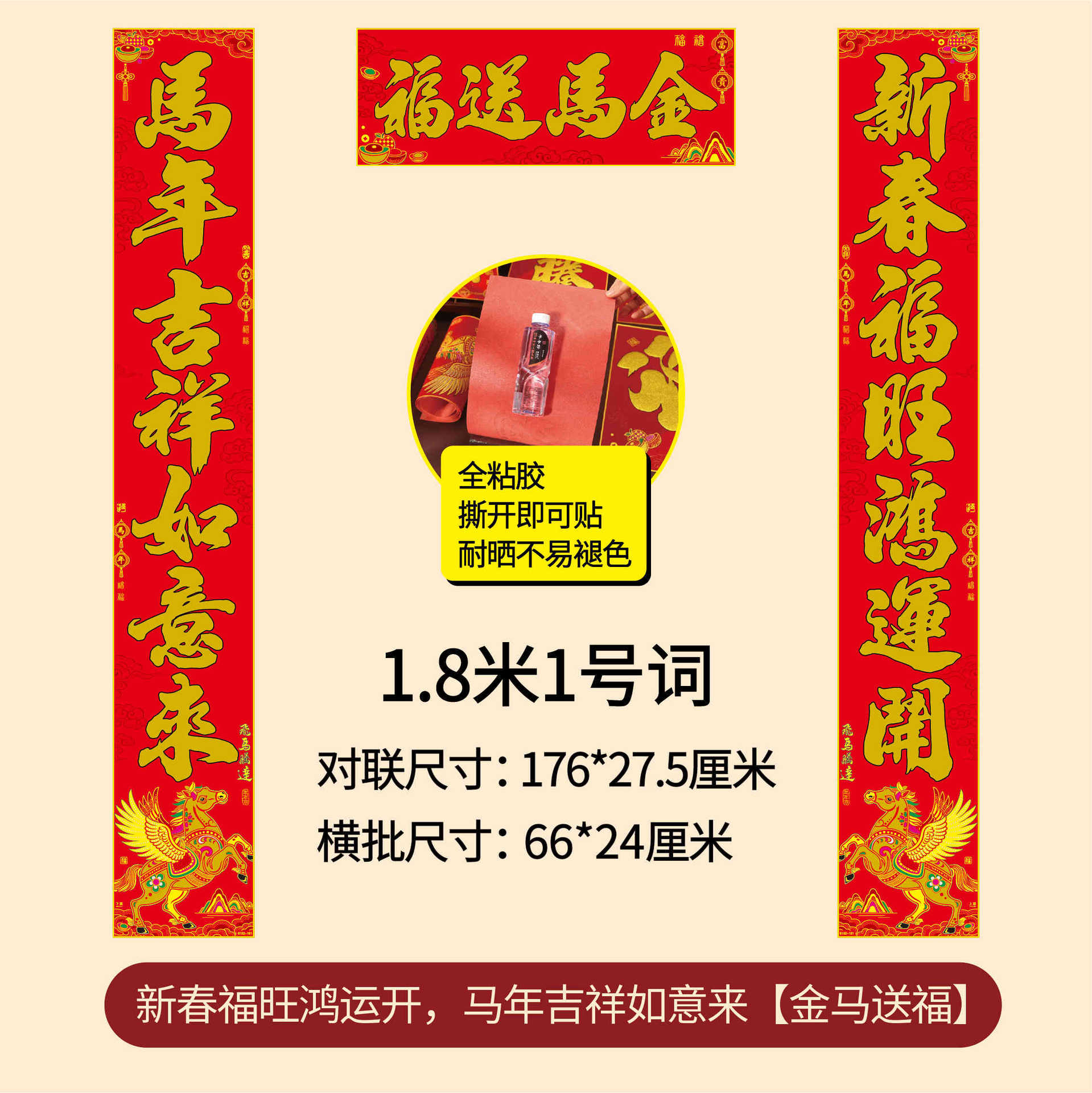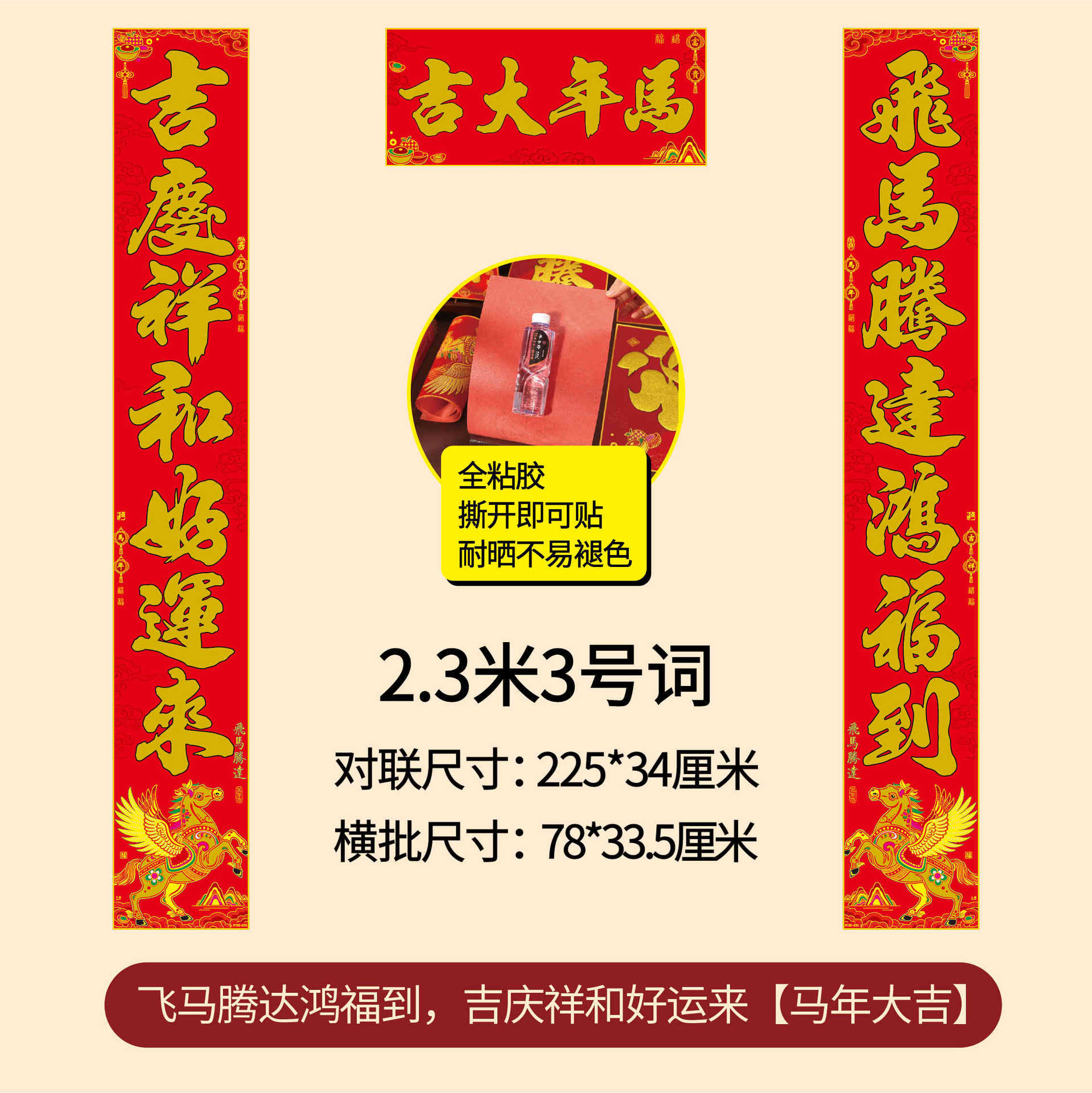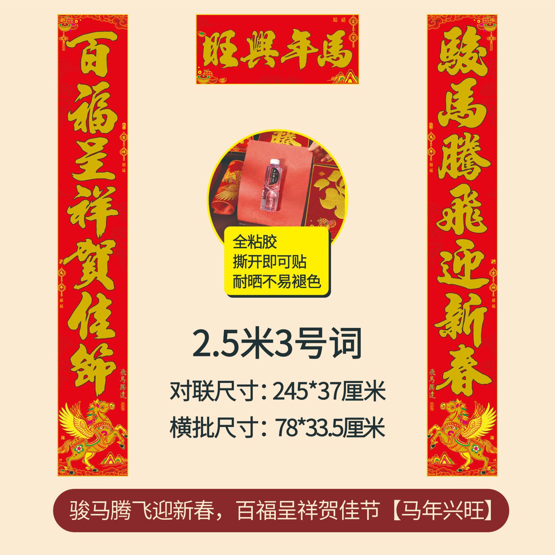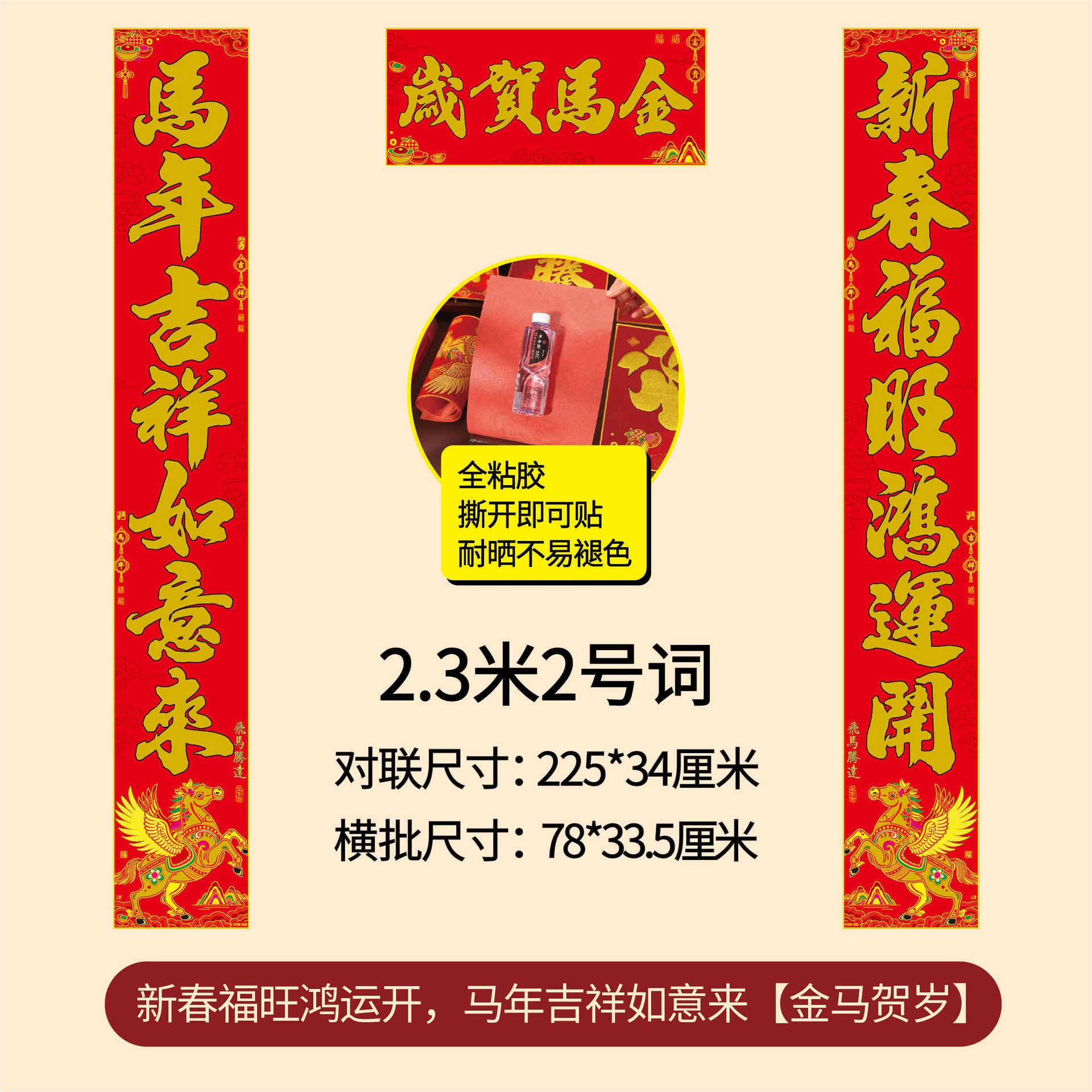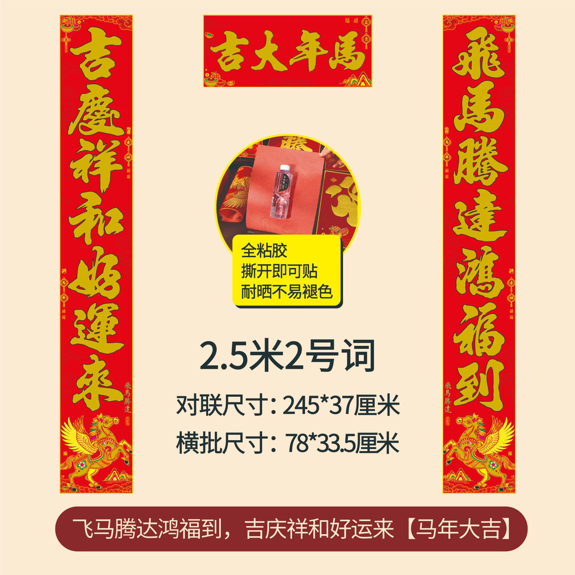 年年好马年对联门贴春节装饰新款绒布春联过年福子贴新年福字批发
