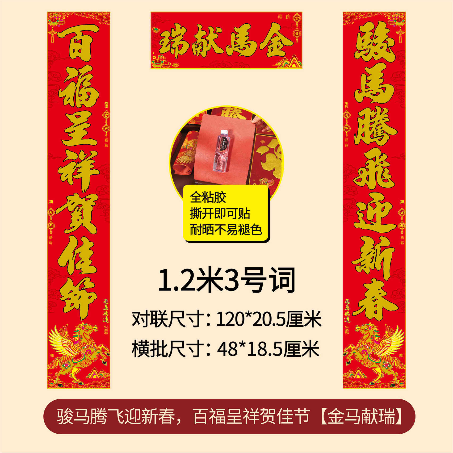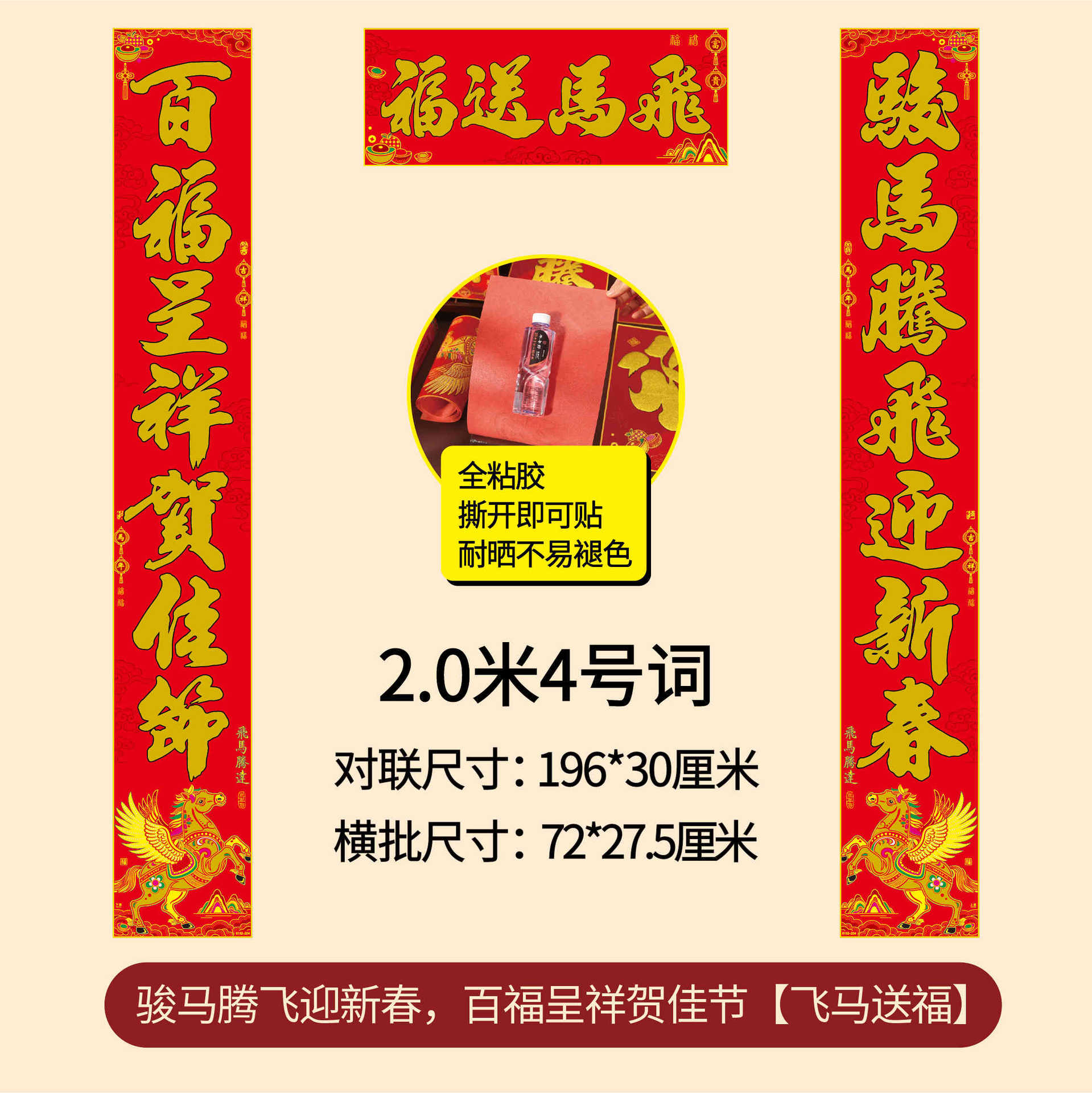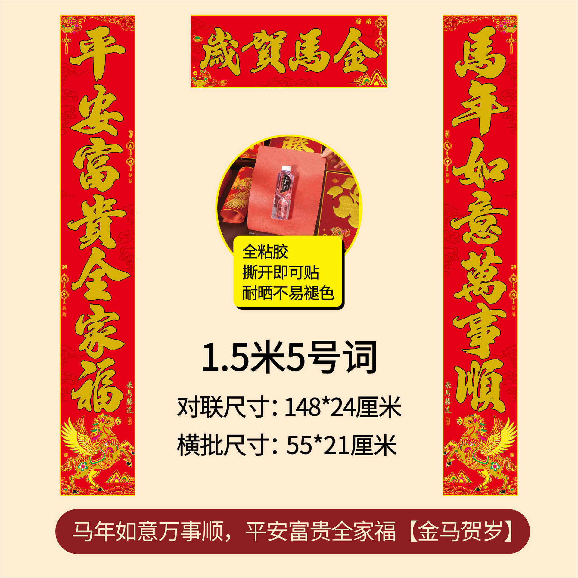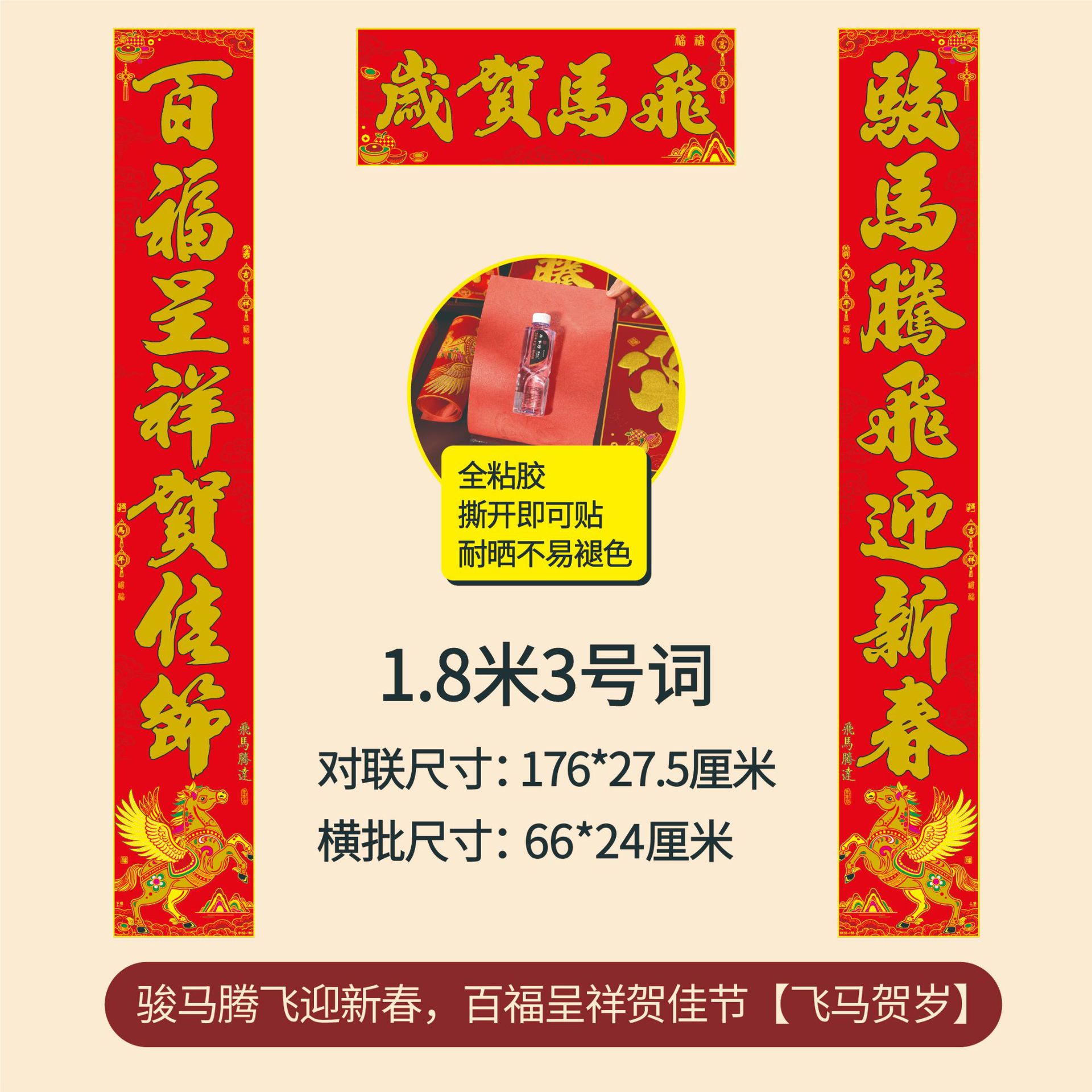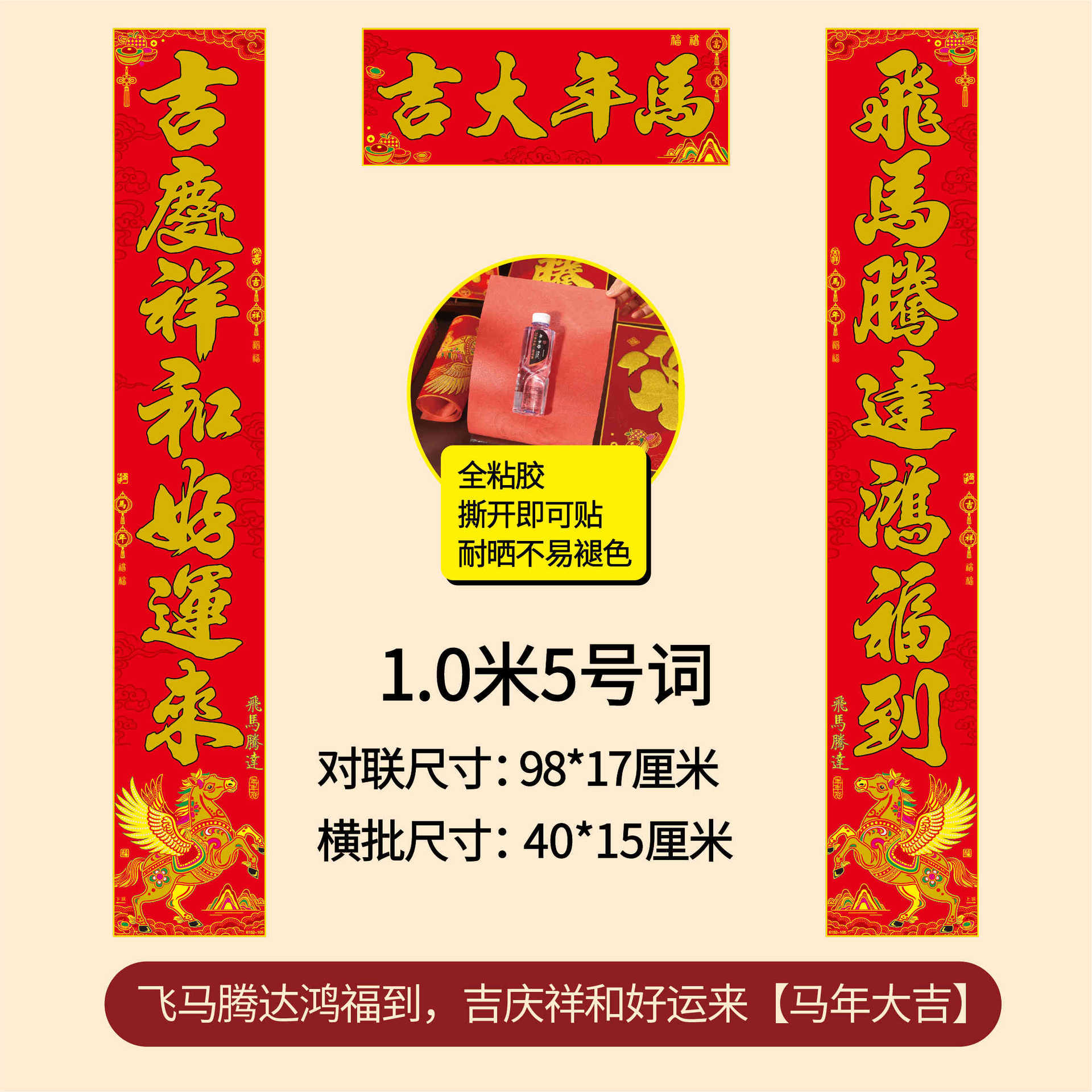 年年好马年对联门贴春节装饰新款绒布春联过年福子贴新年福字批发