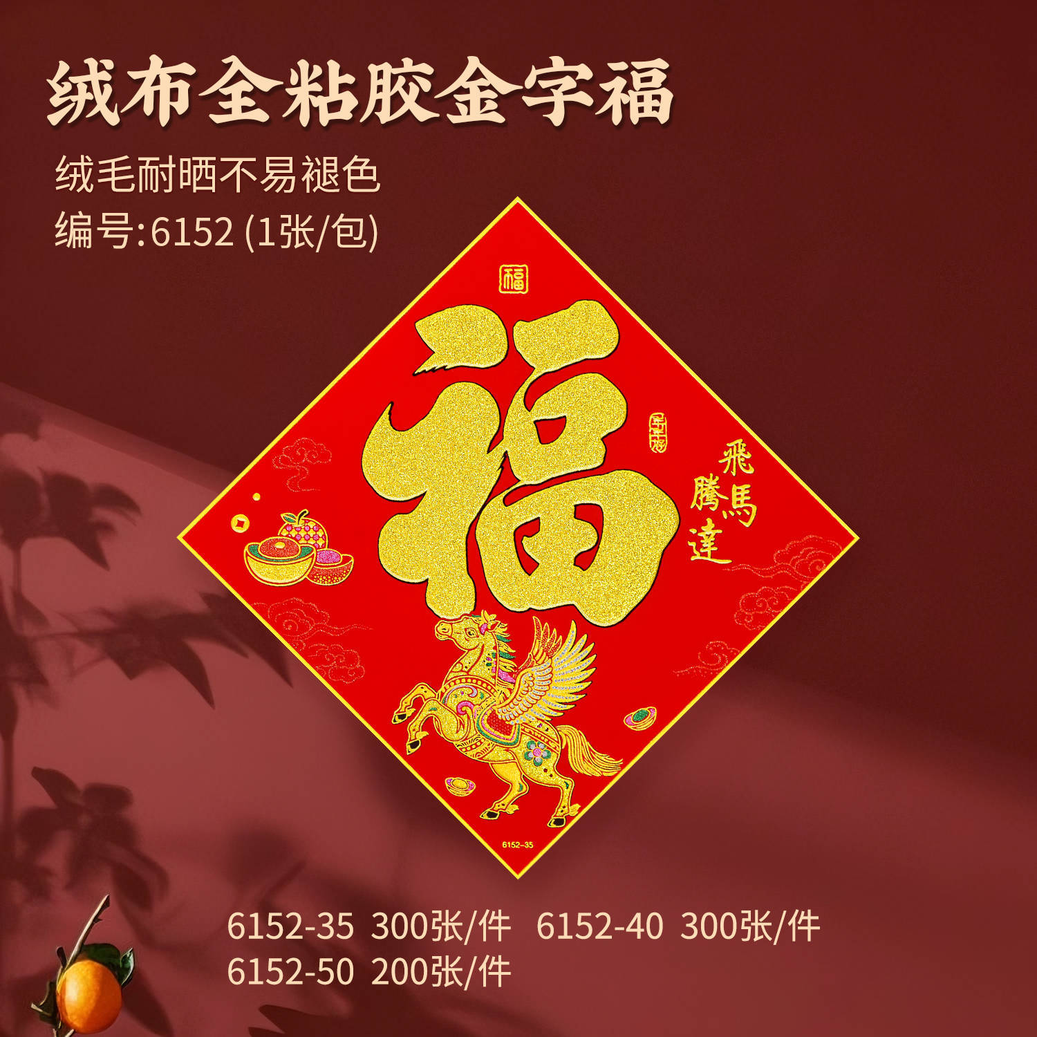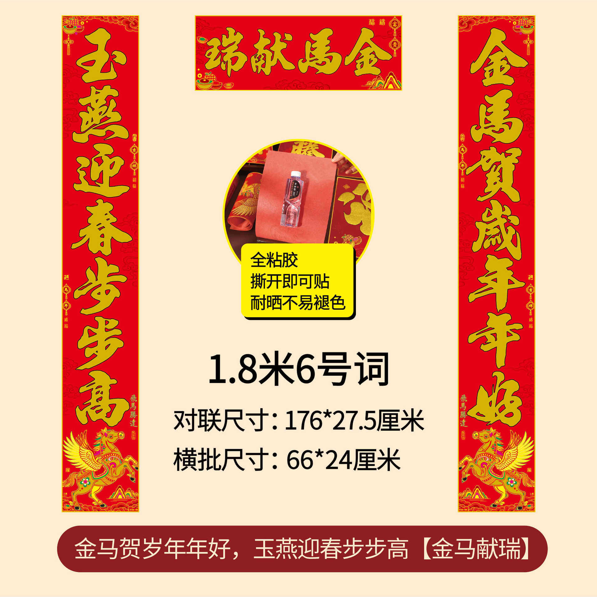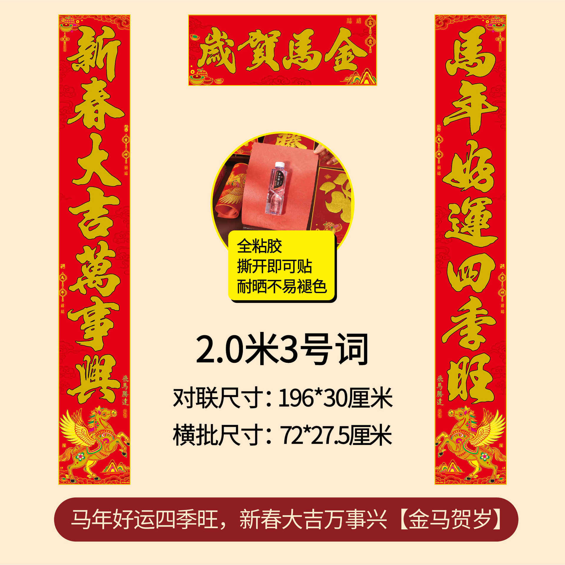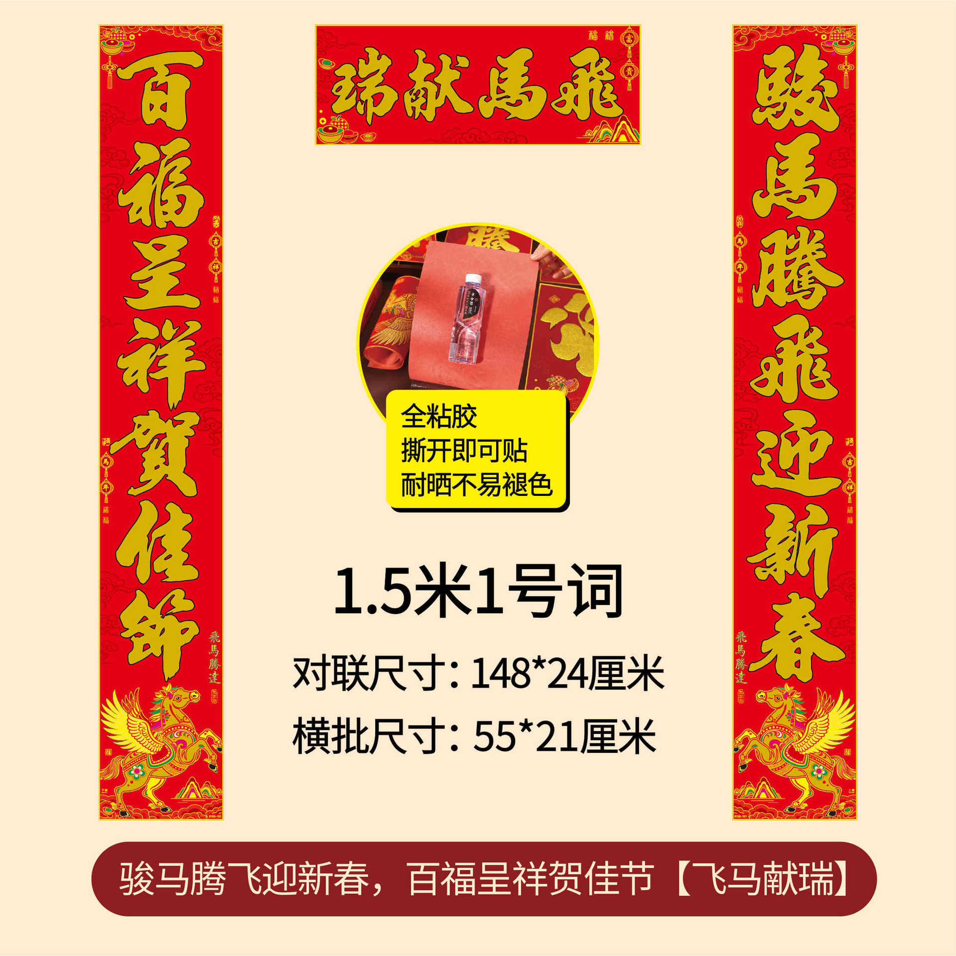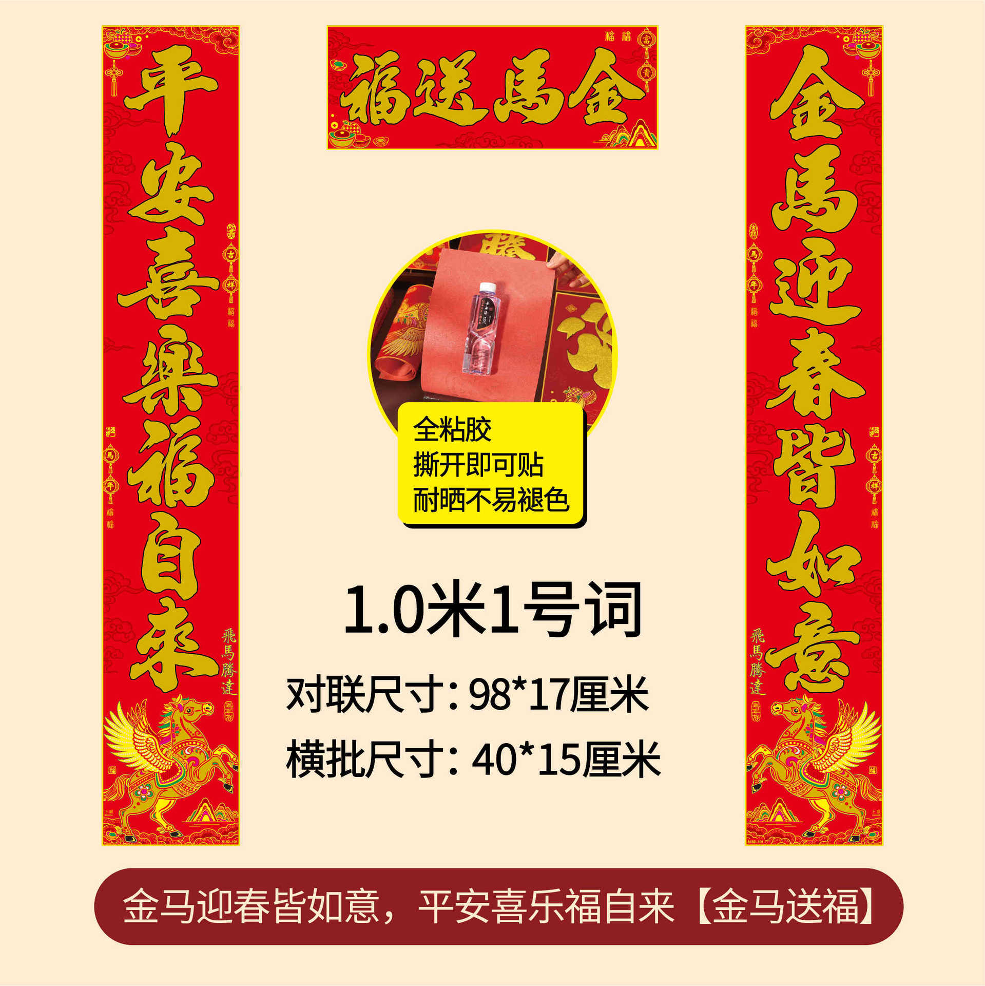 年年好马年对联门贴春节装饰新款绒布春联过年福子贴新年福字批发