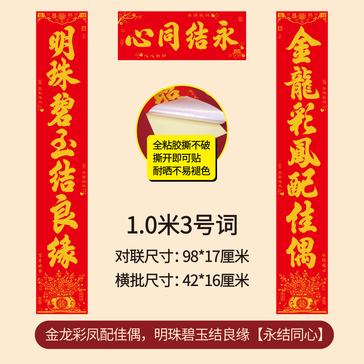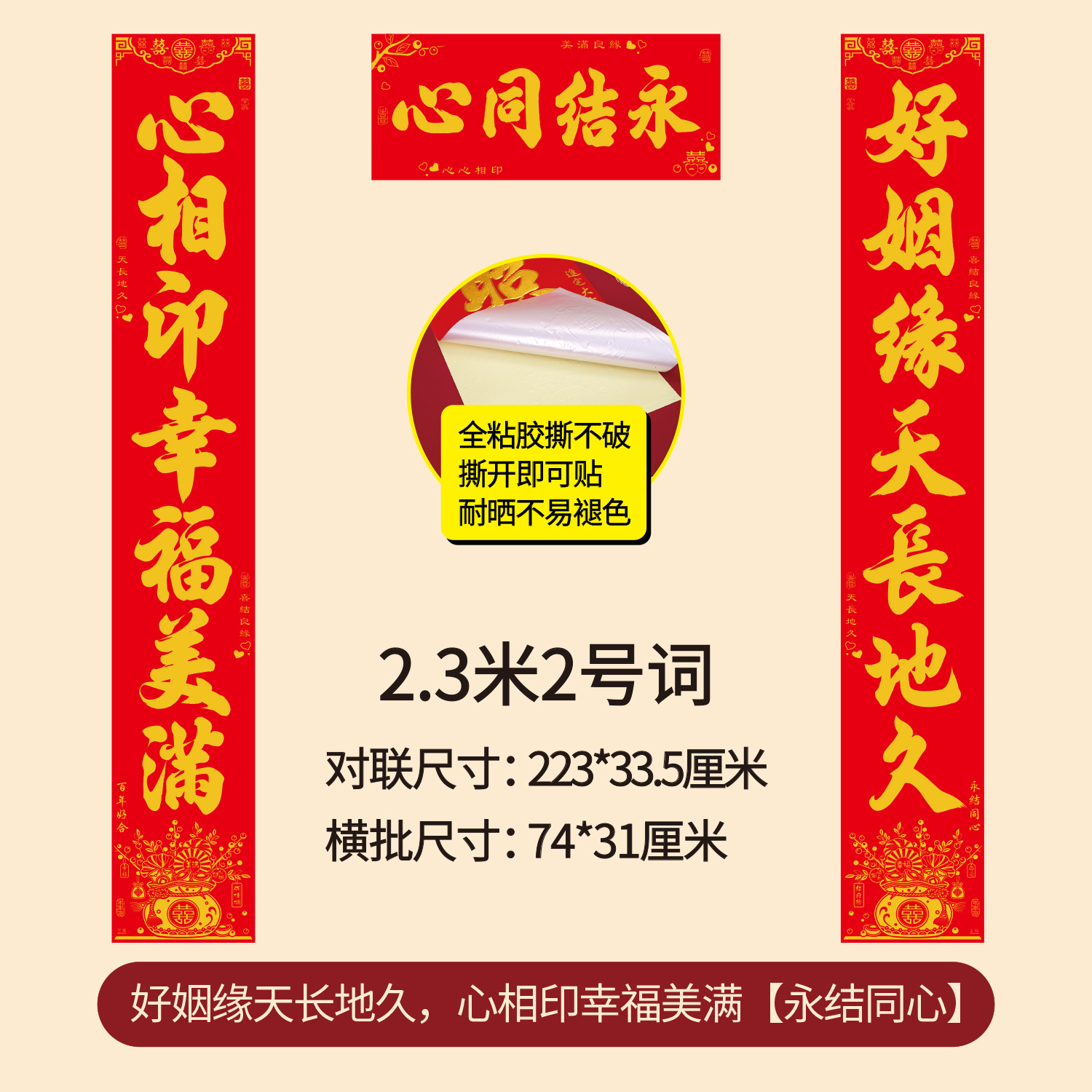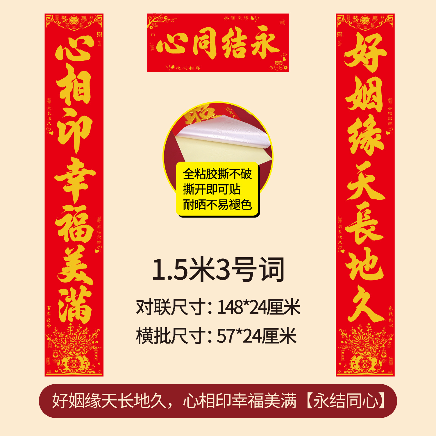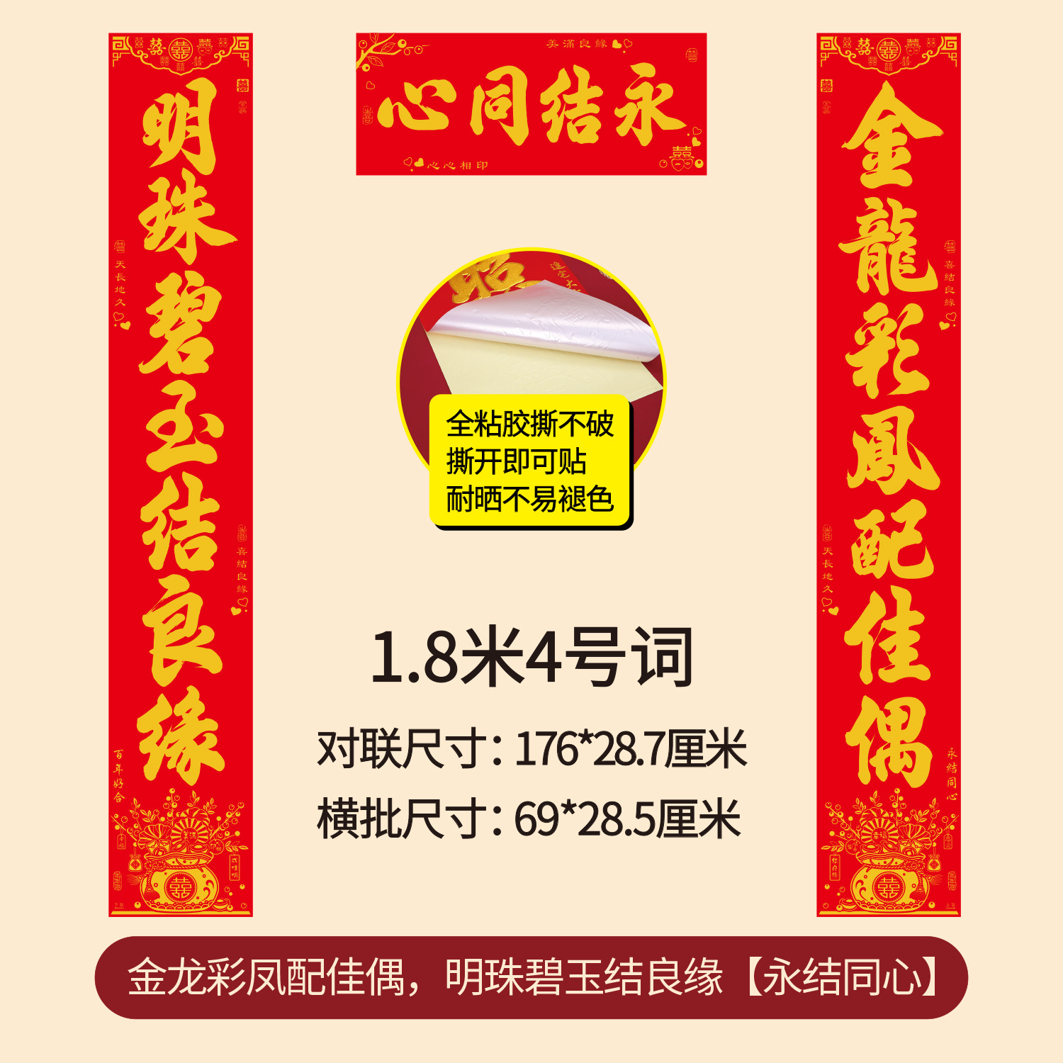 结婚对联 婚礼植绒丝绒烫金自带全背胶婚联婚庆男女方大门联新房
