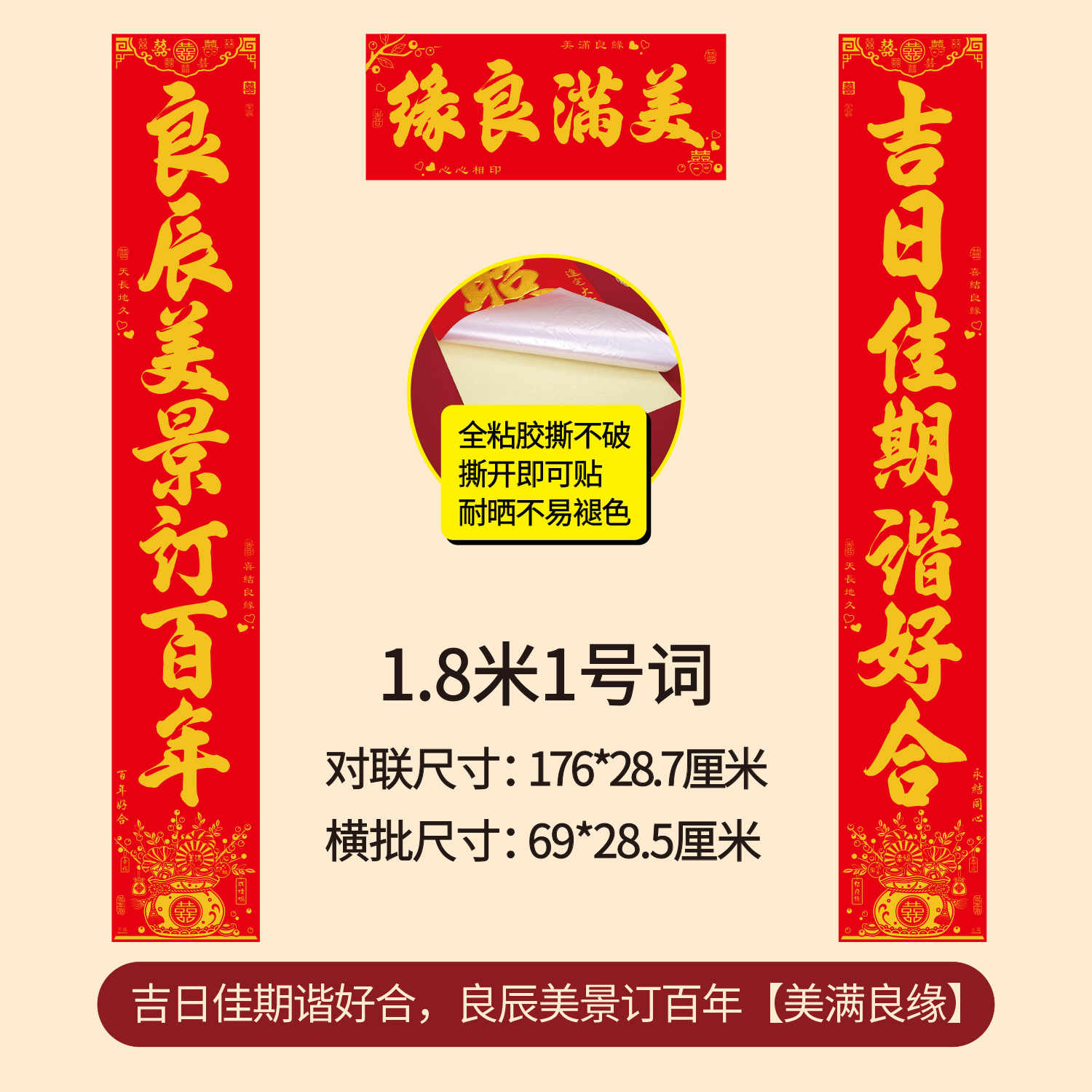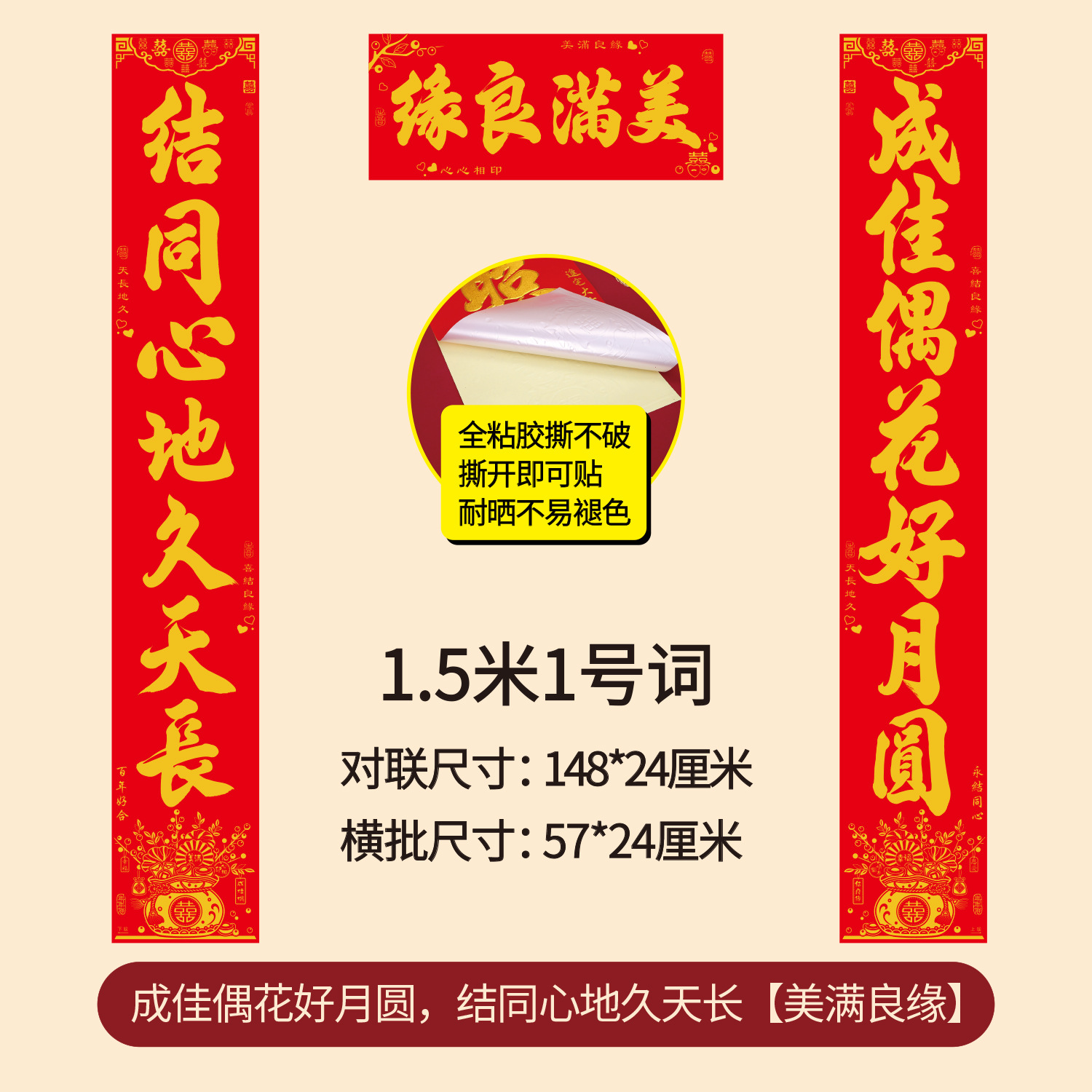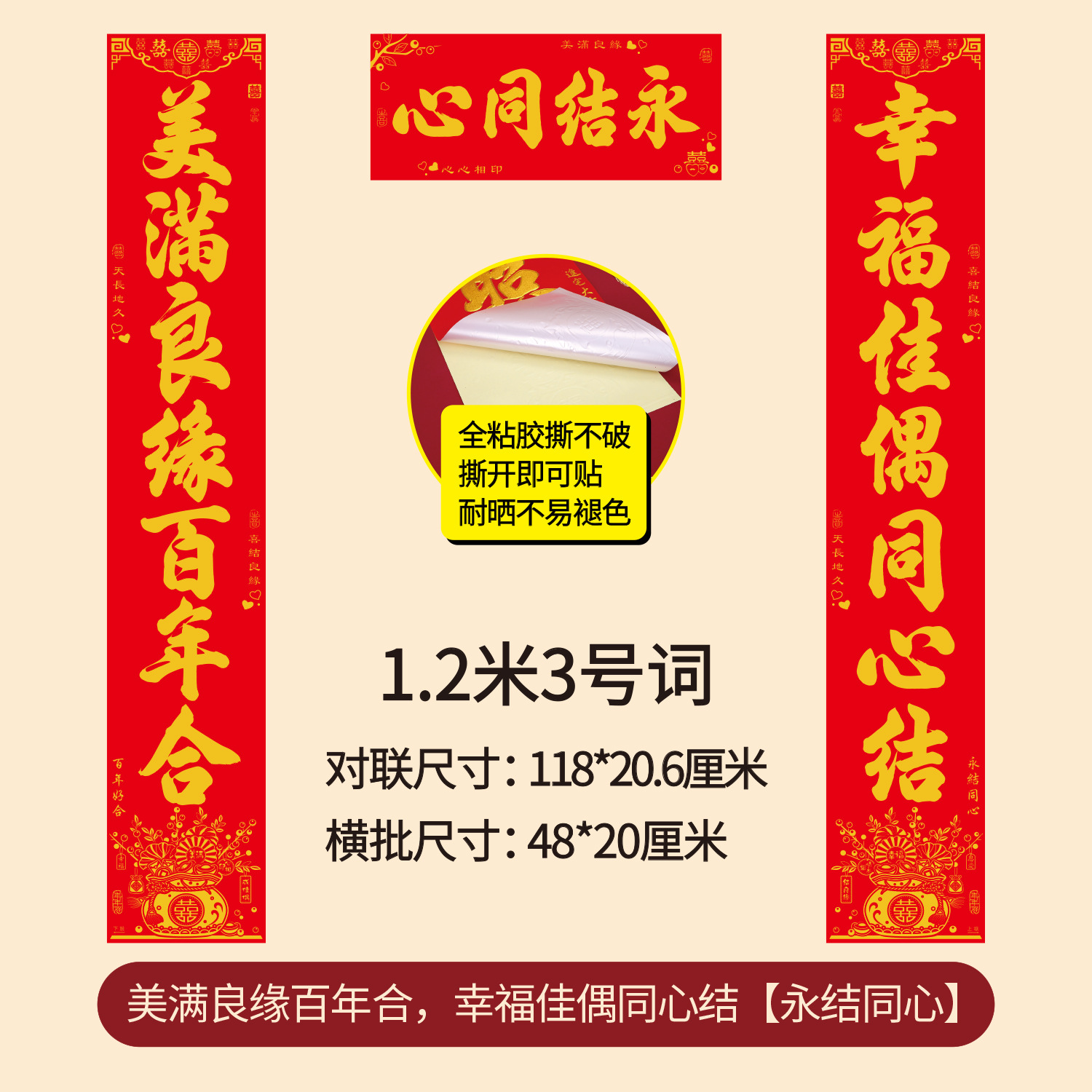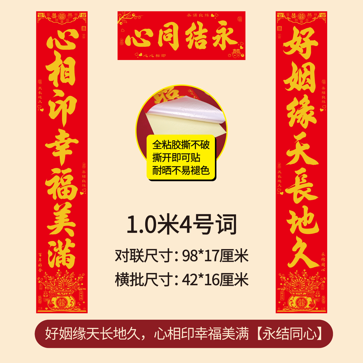 结婚对联 婚礼植绒丝绒烫金自带全背胶婚联婚庆男女方大门联新房