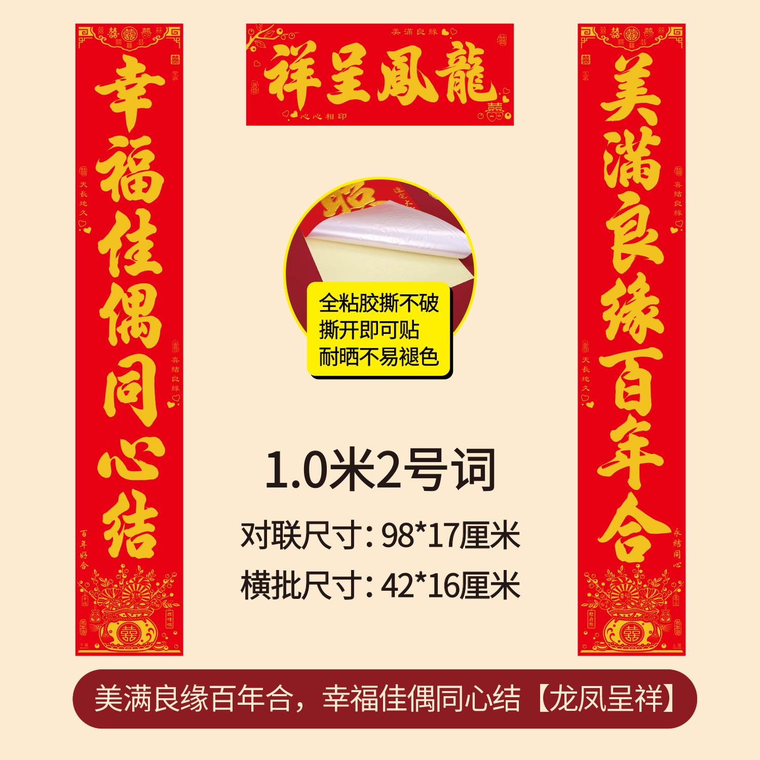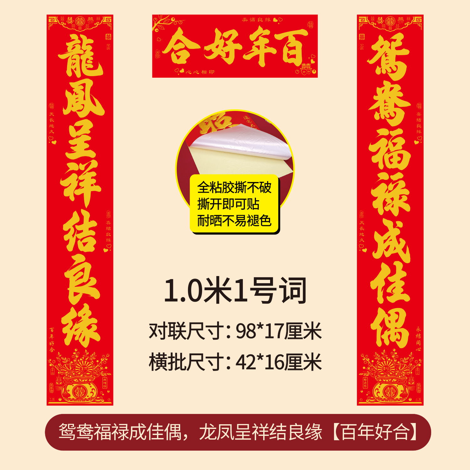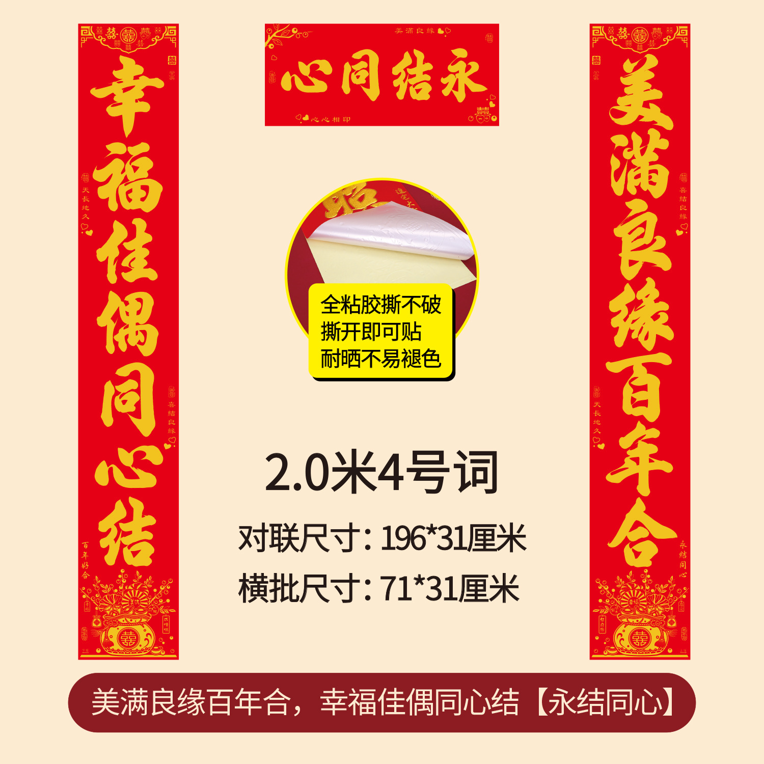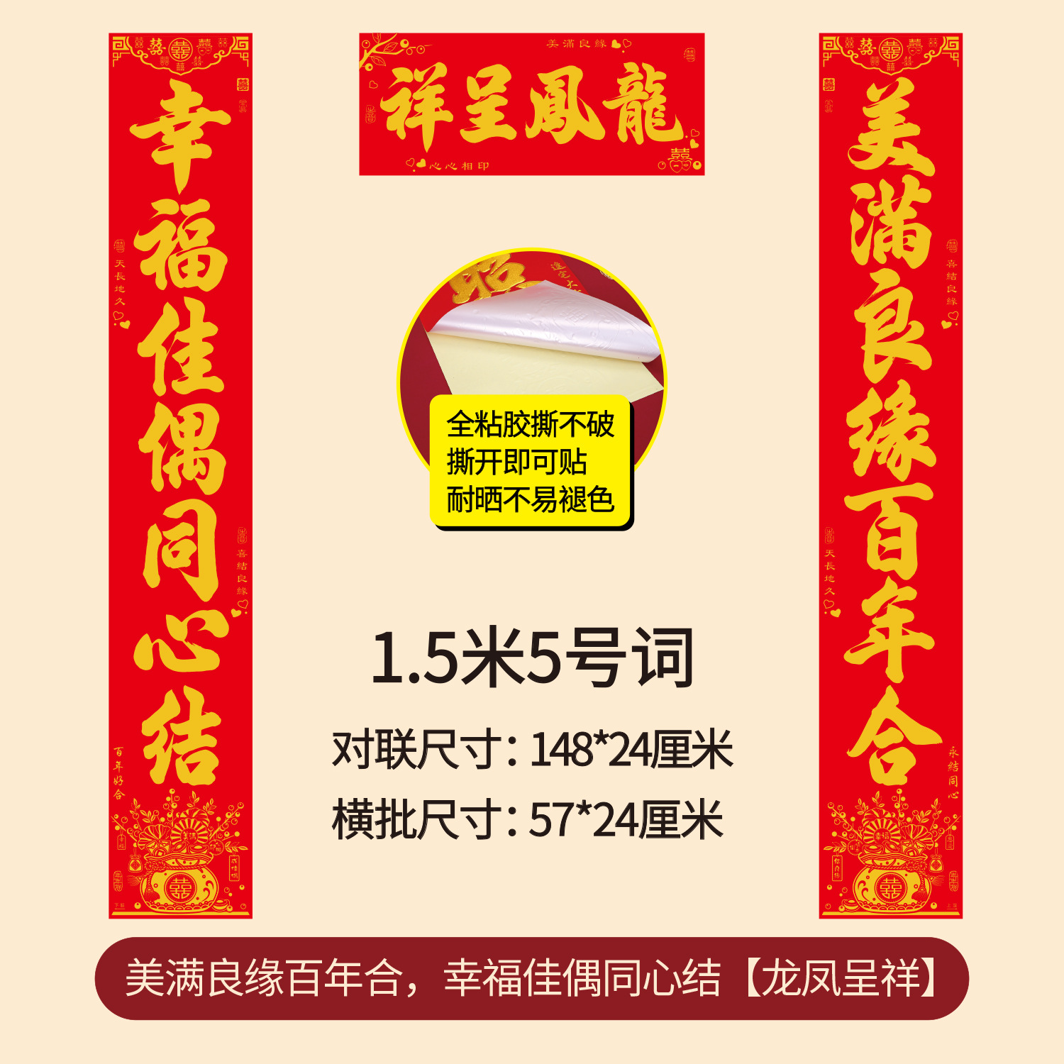 结婚对联 婚礼植绒丝绒烫金自带全背胶婚联婚庆男女方大门联新房