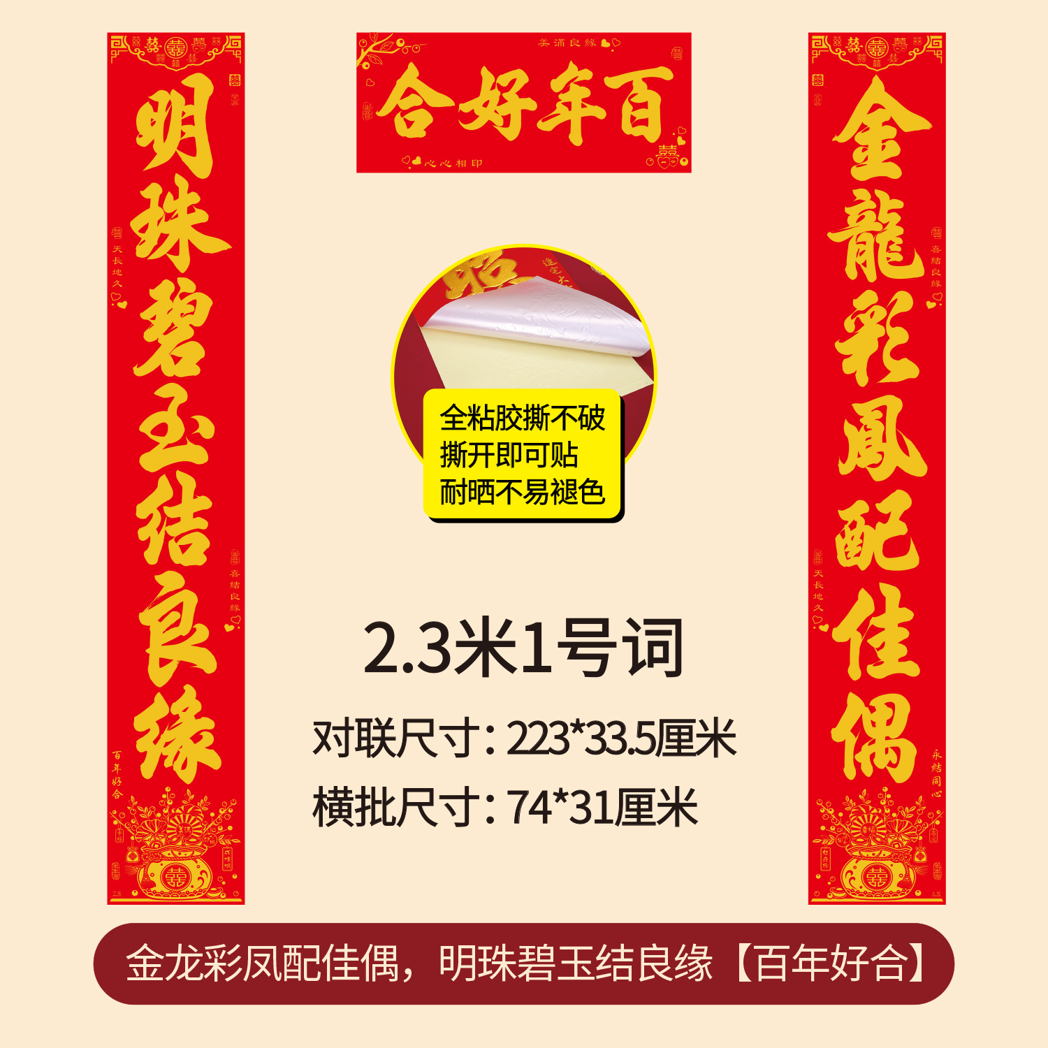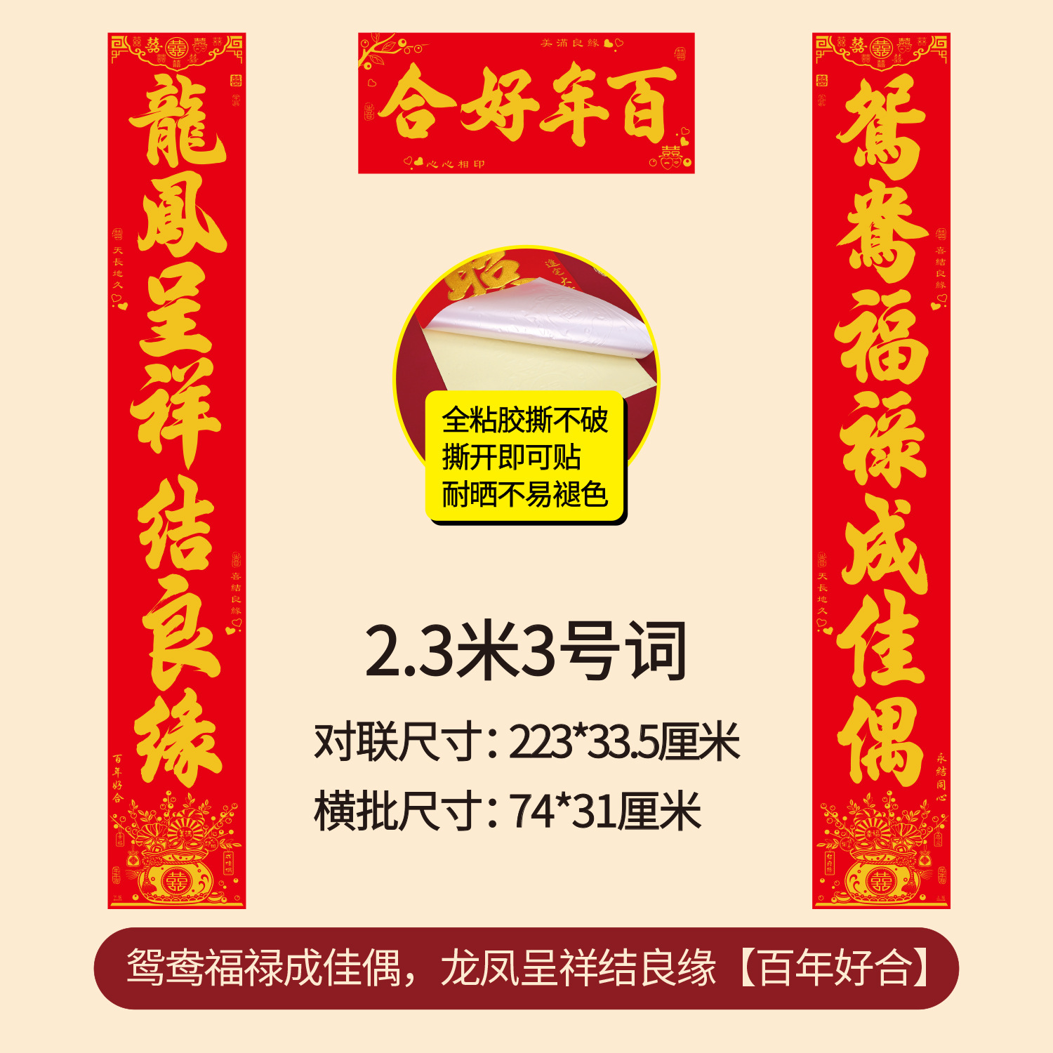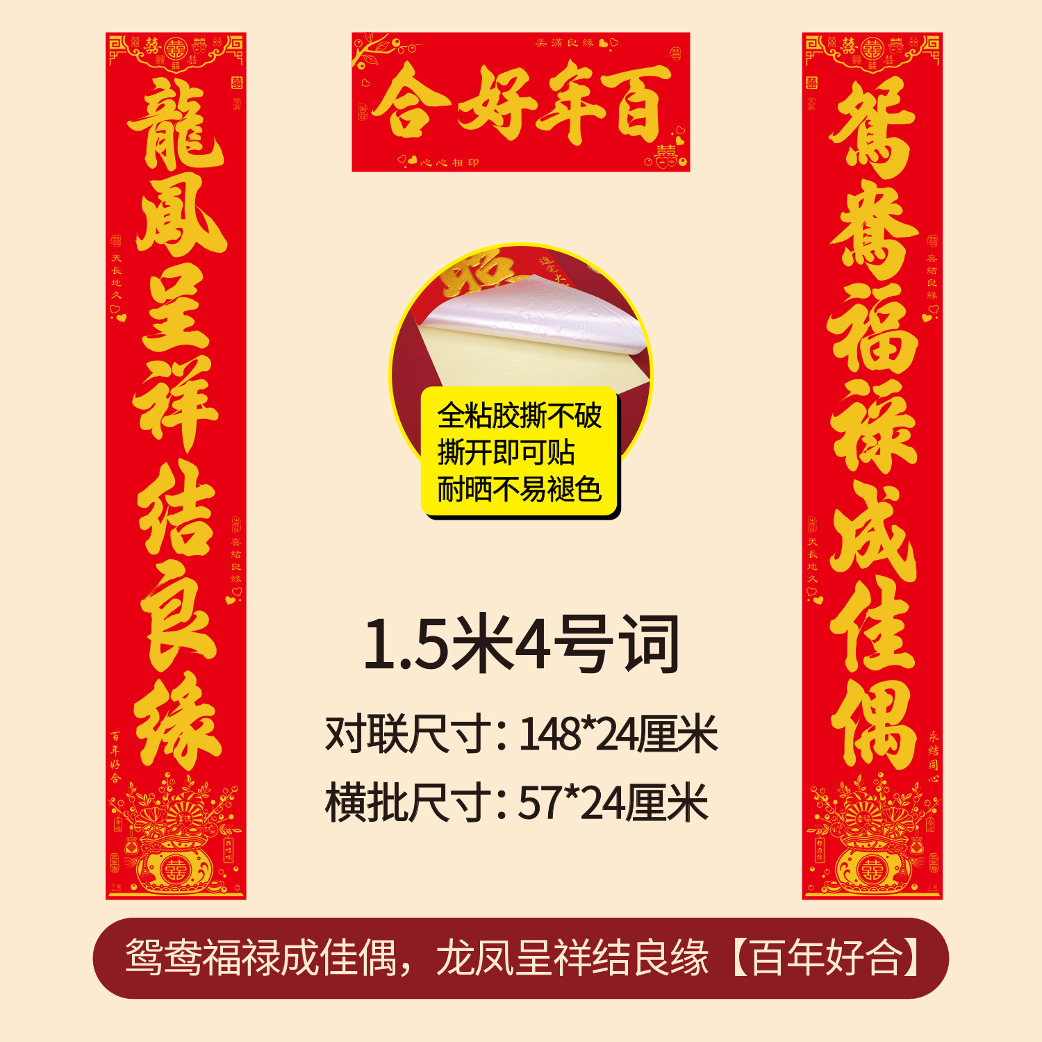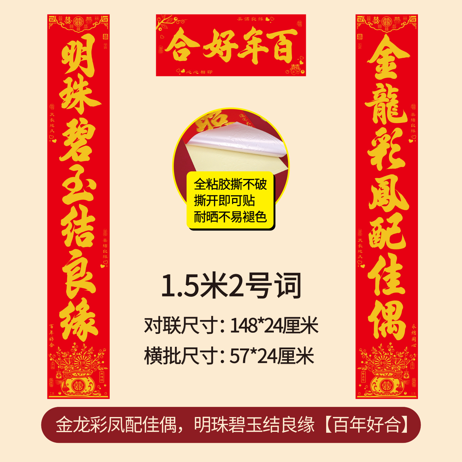 结婚对联 婚礼植绒丝绒烫金自带全背胶婚联婚庆男女方大门联新房