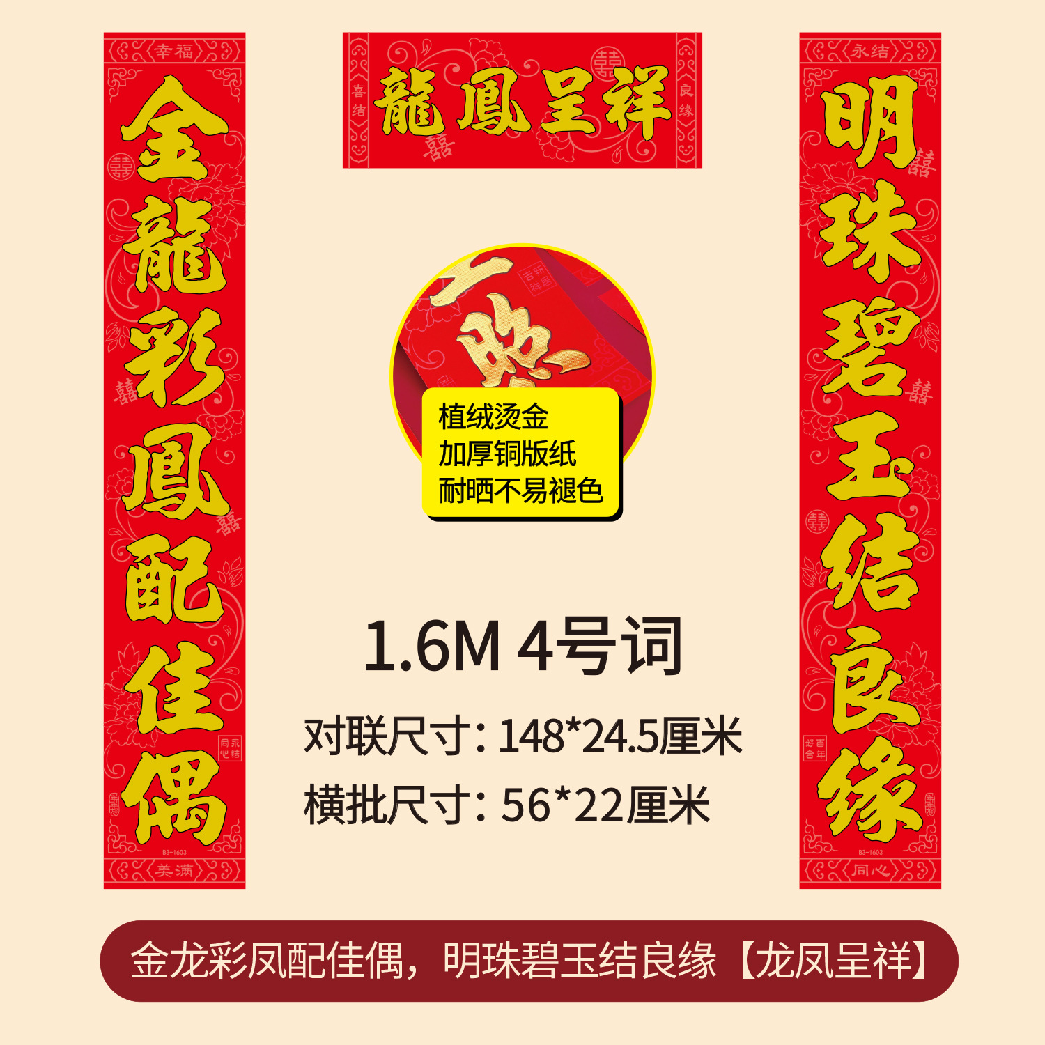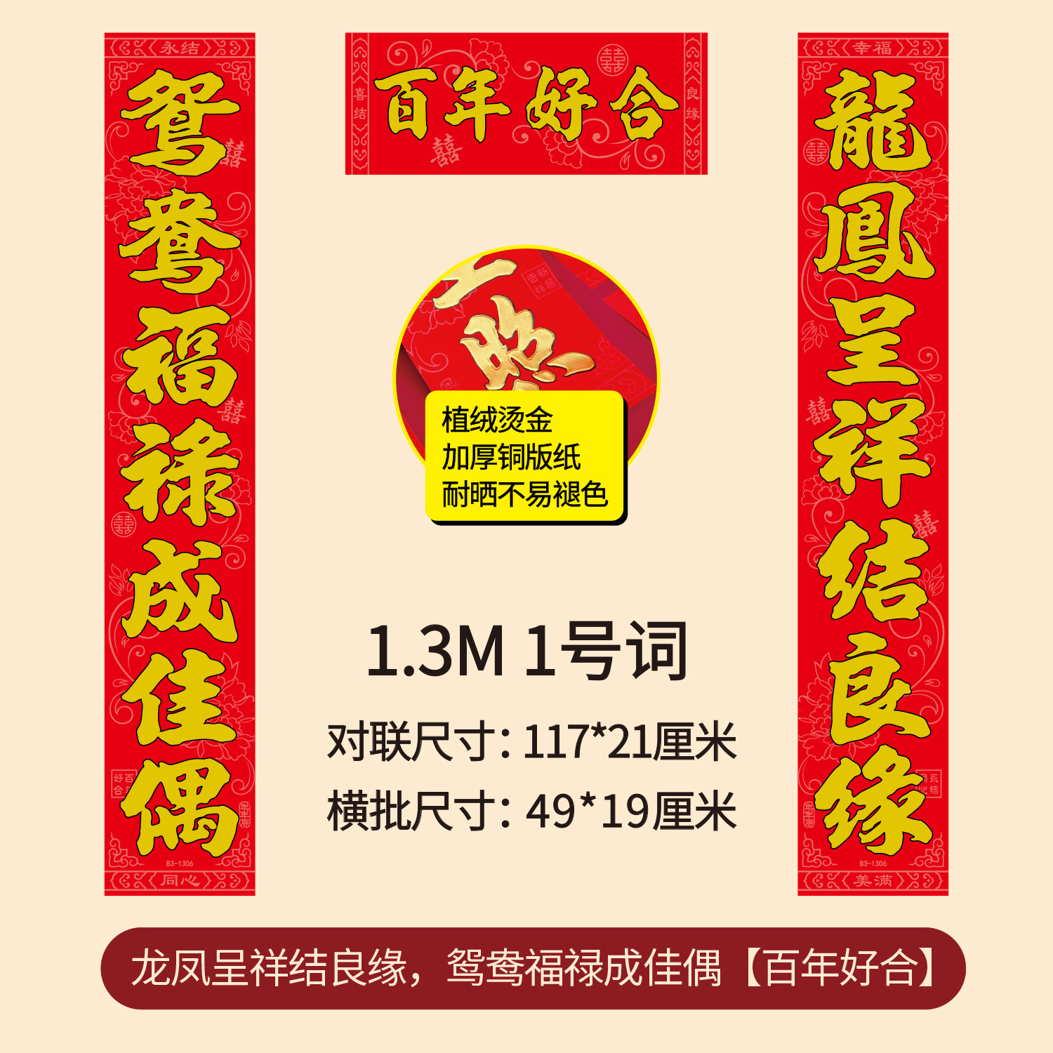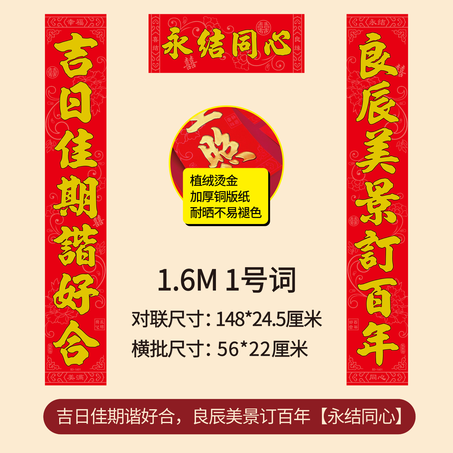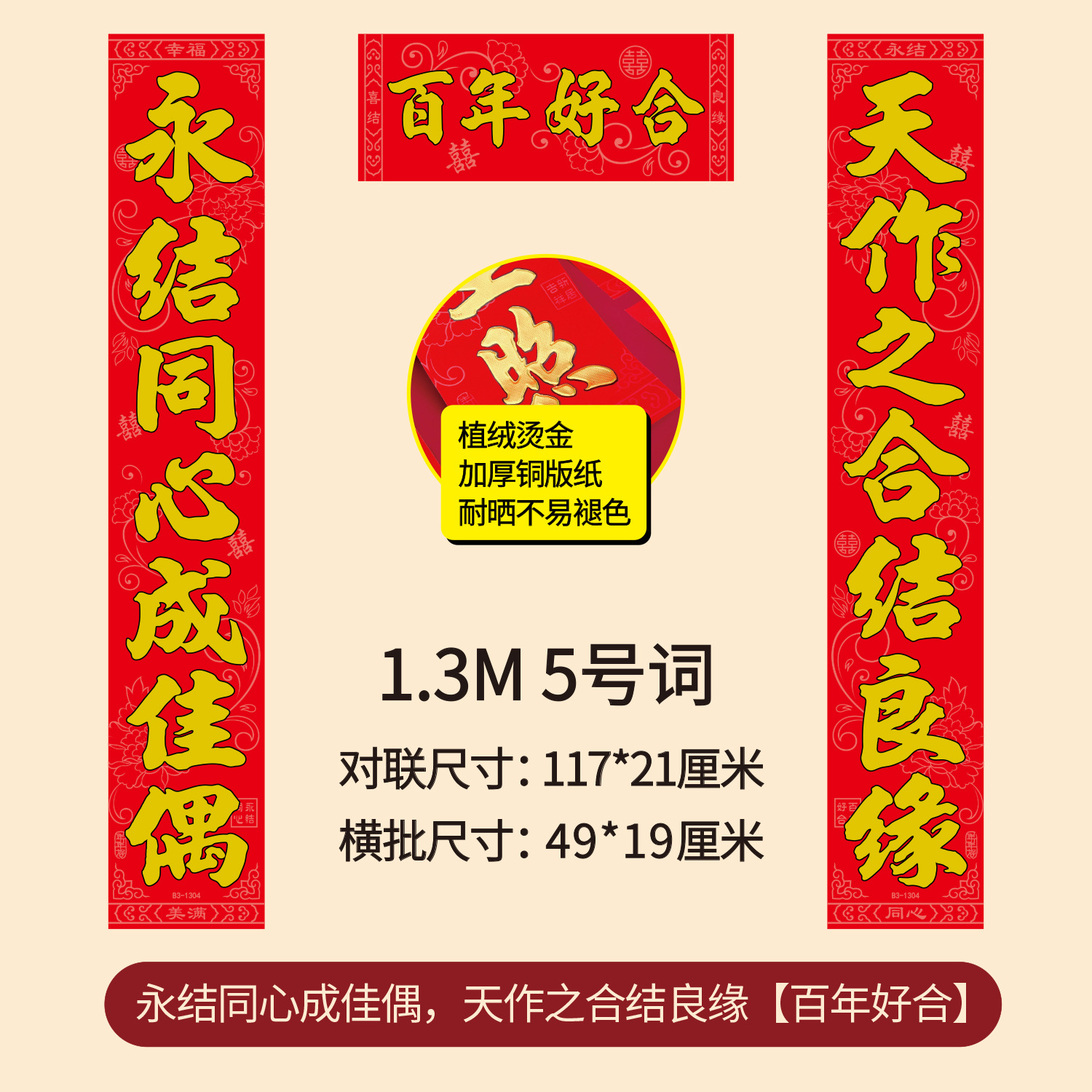 2026新款红卡加厚植绒烫金结婚对联新婚大门装饰喜字婚庆盒装喜联