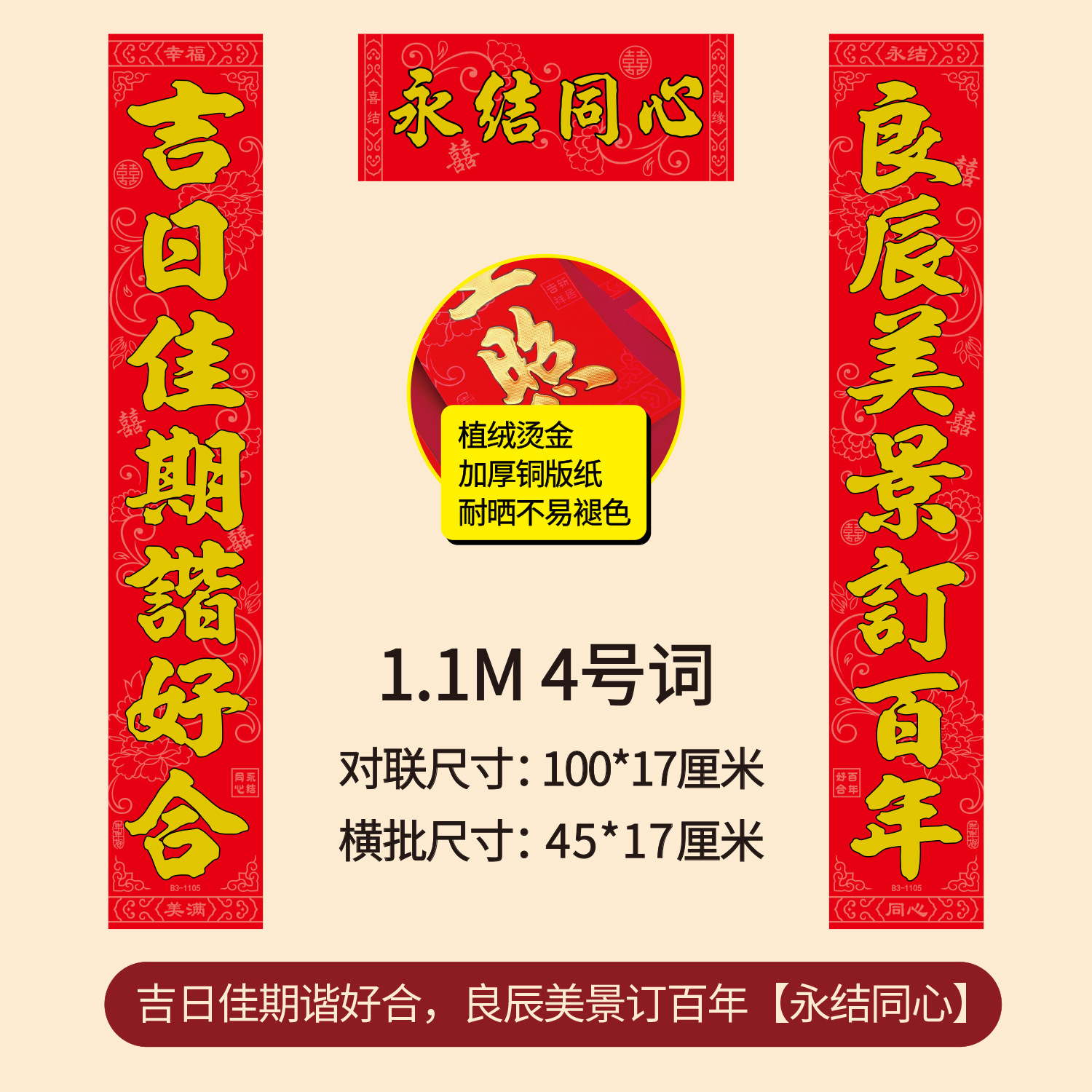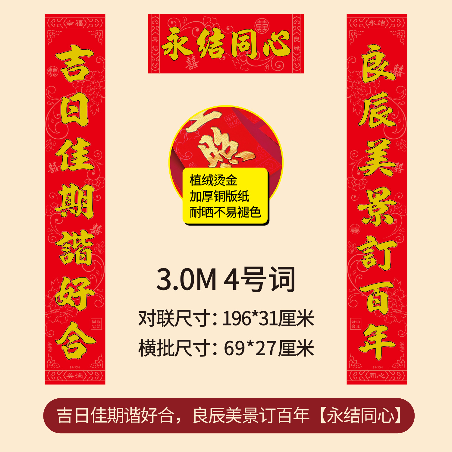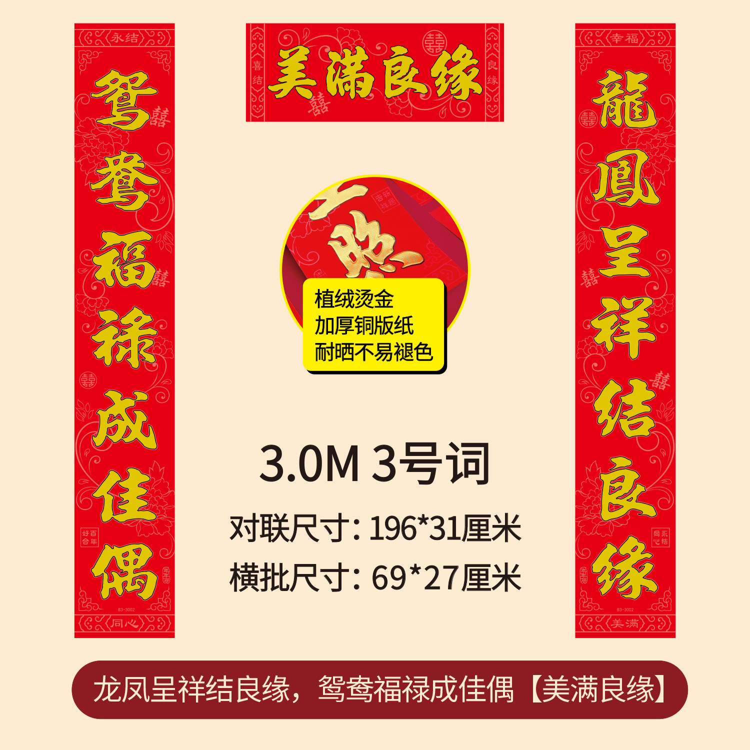 2026新款红卡加厚植绒烫金结婚对联新婚大门装饰喜字婚庆盒装喜联