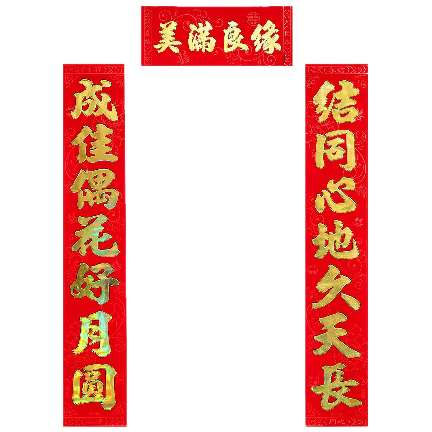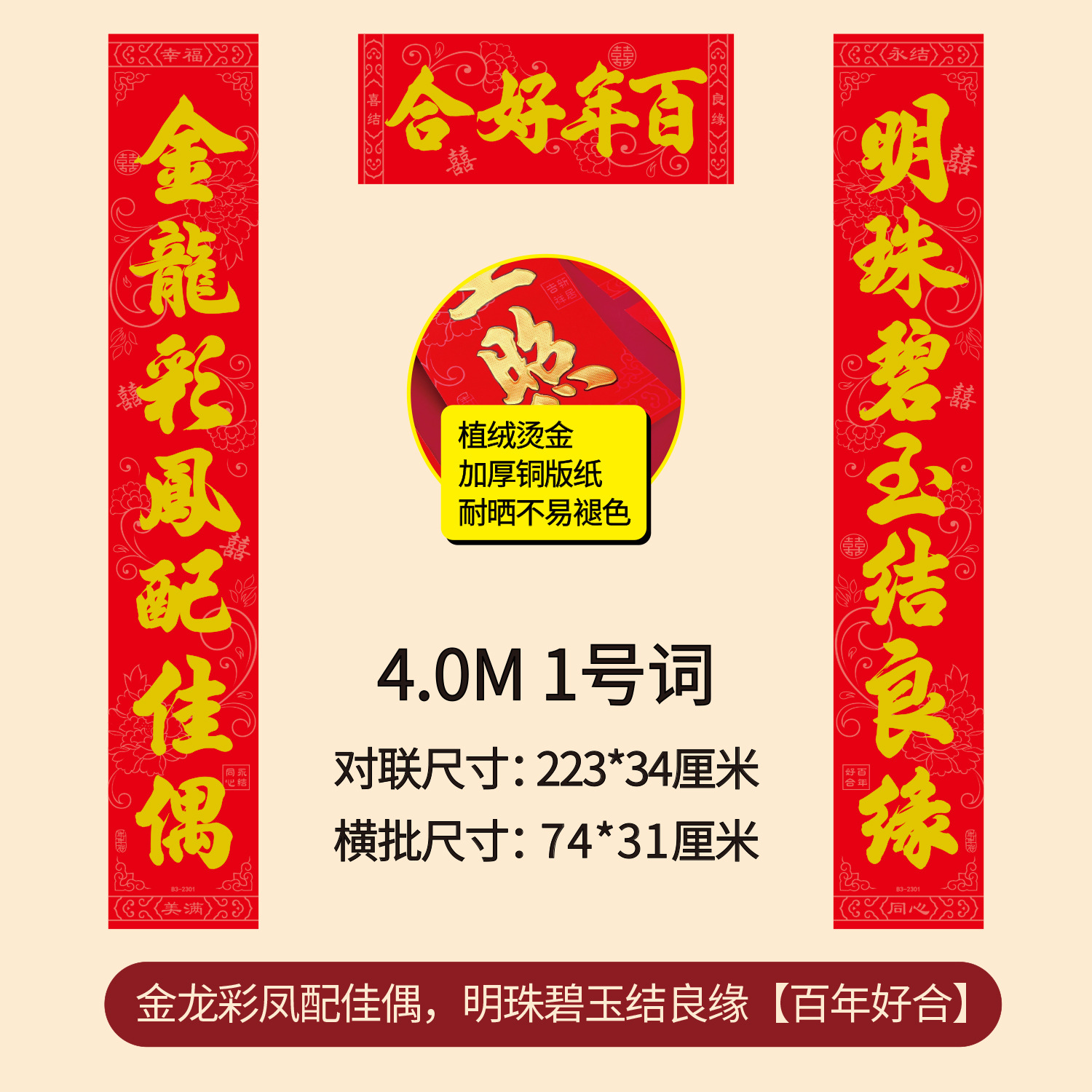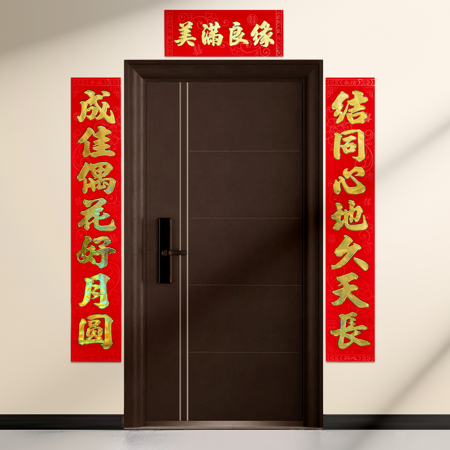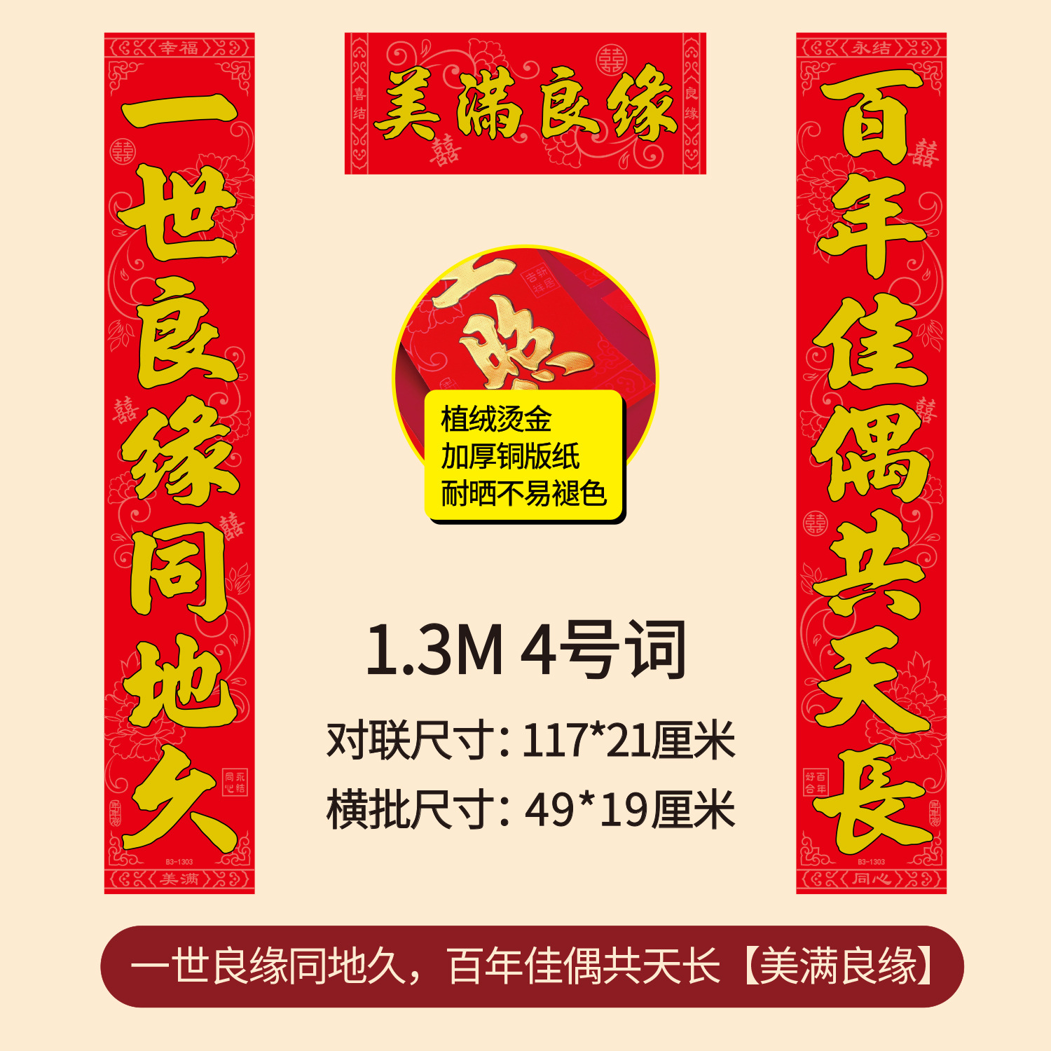 2026新款红卡加厚植绒烫金结婚对联新婚大门装饰喜字婚庆盒装喜联
