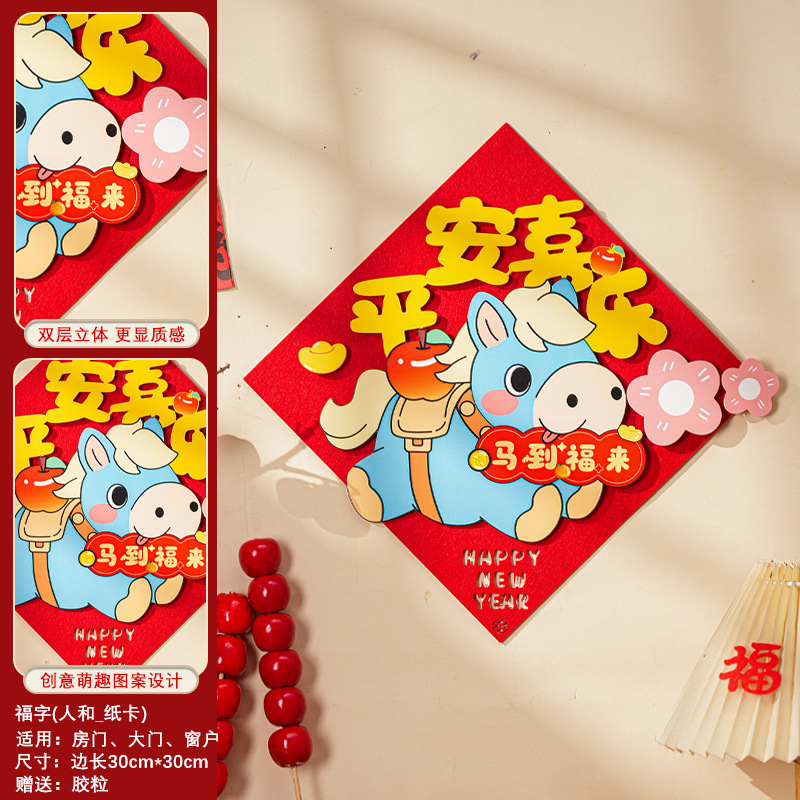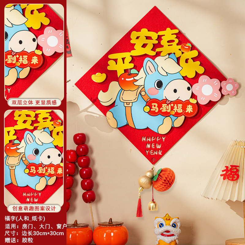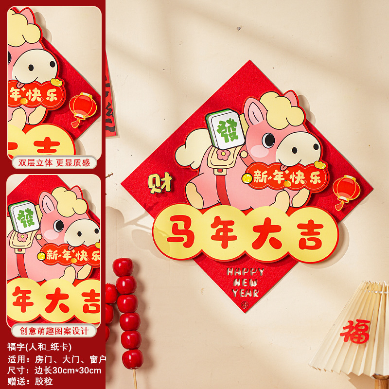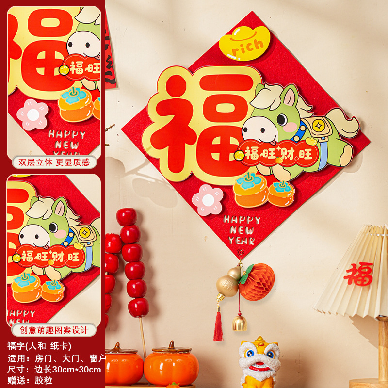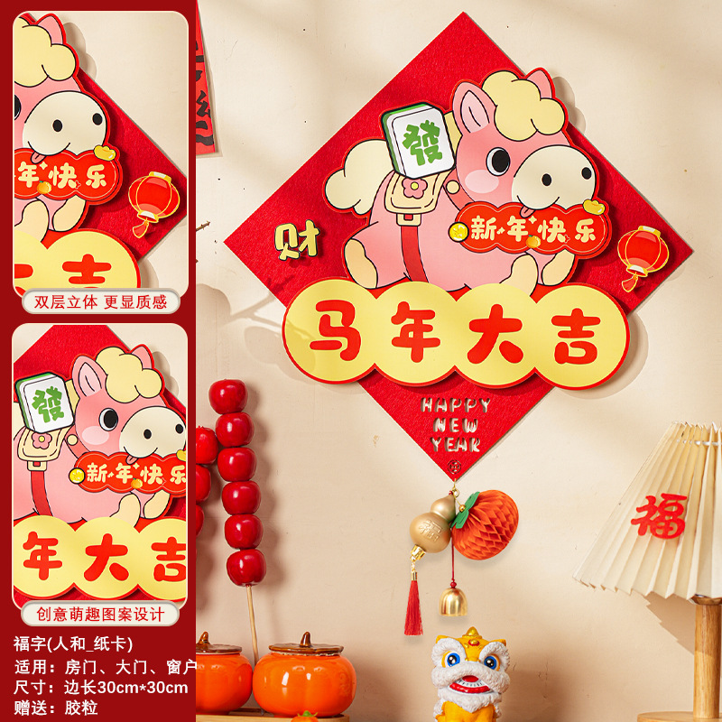 2026马年福字门贴立体春节过年客厅布置用品入户大门窗花新年装饰