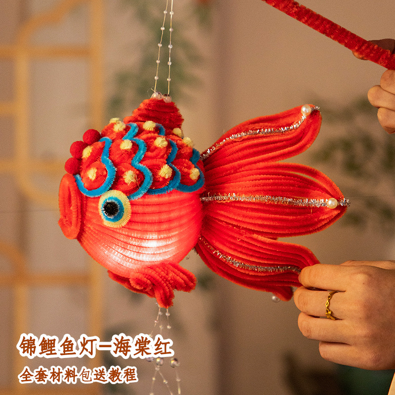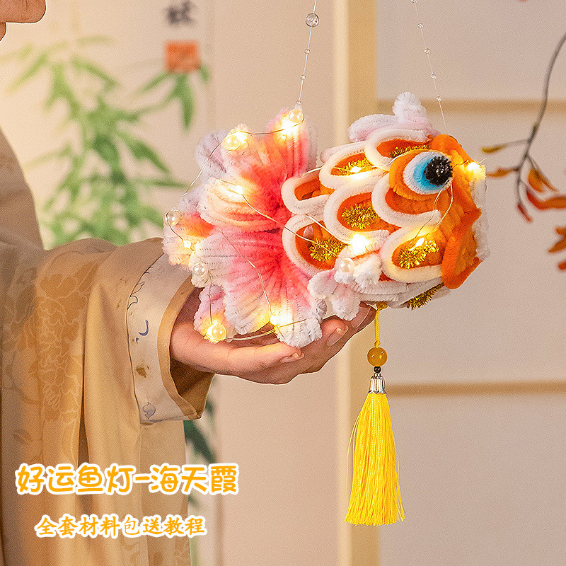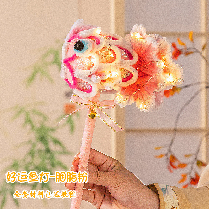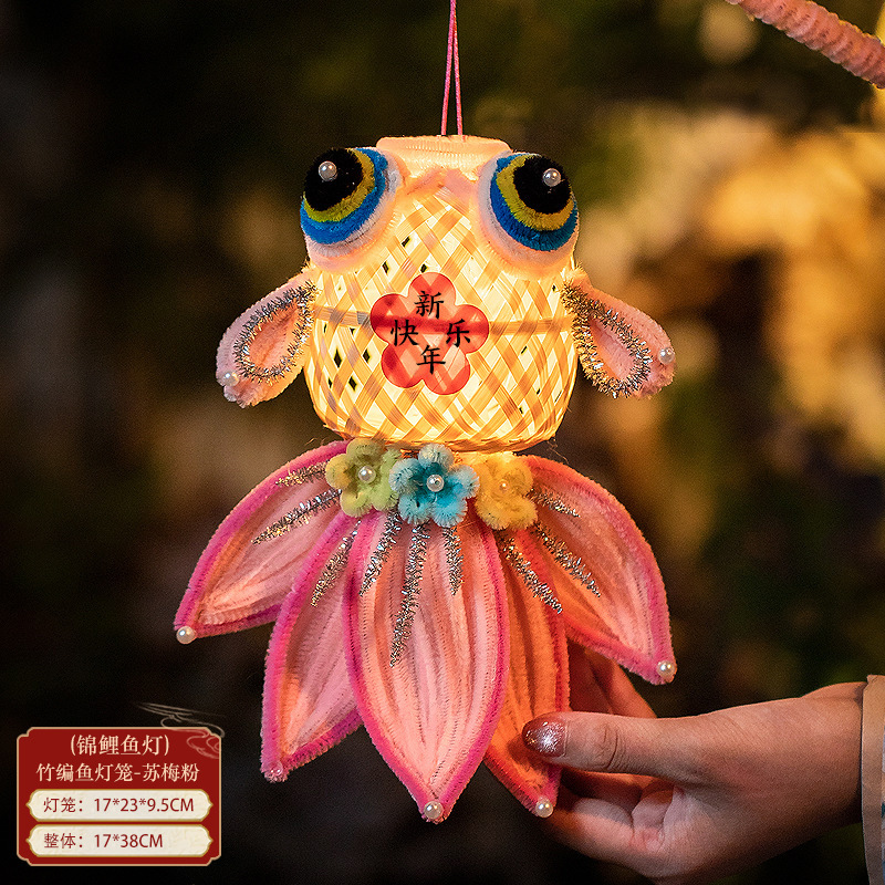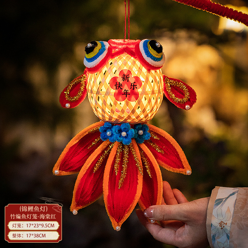 新年竹编锦鲤灯笼扭扭棒儿童手工diy材料马年手提发光花灯金鱼灯