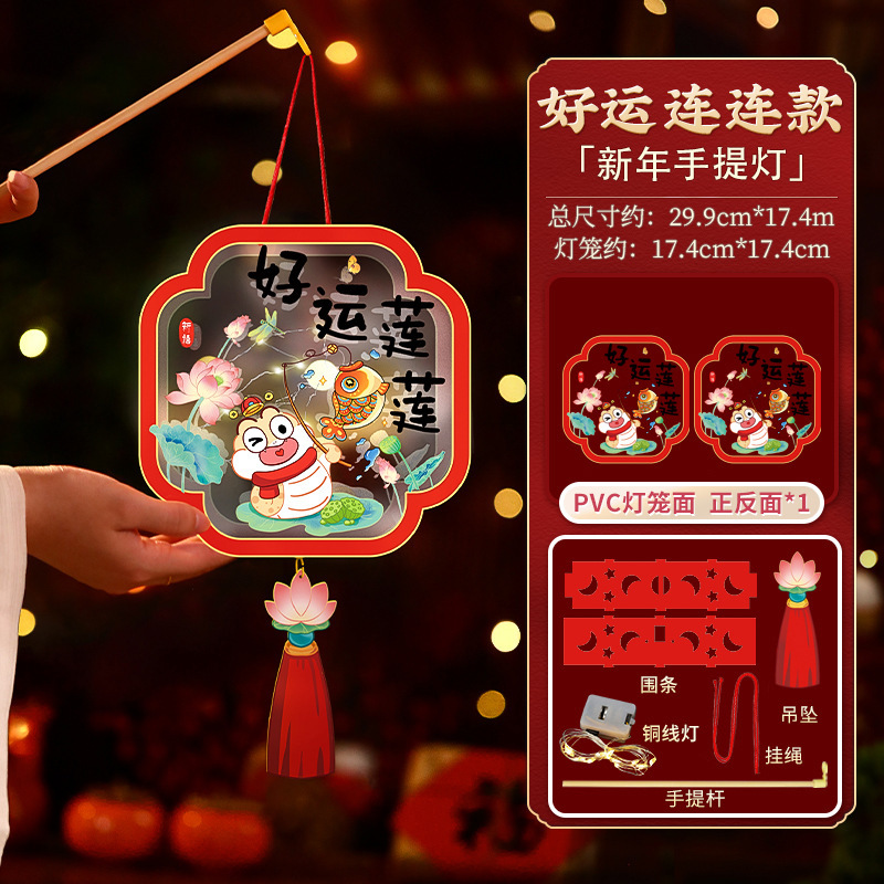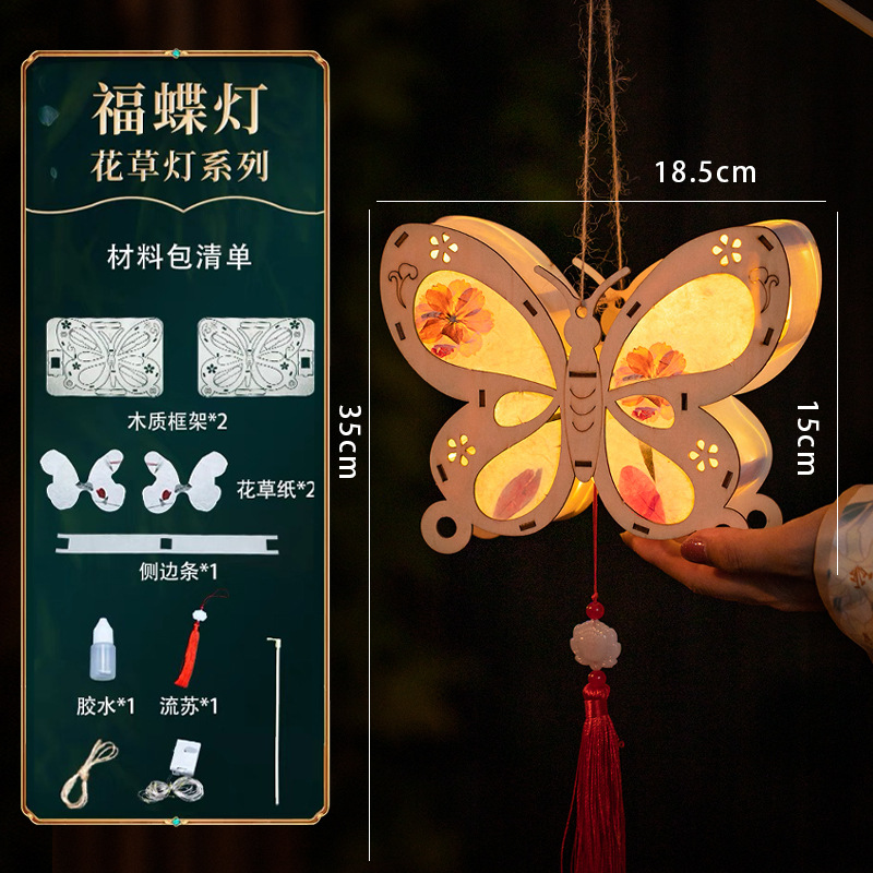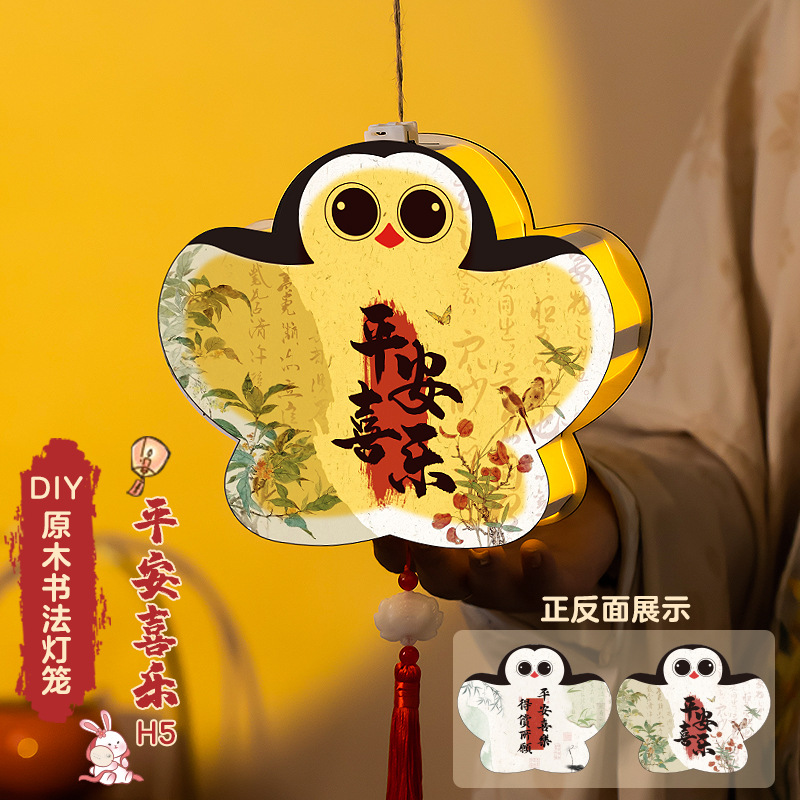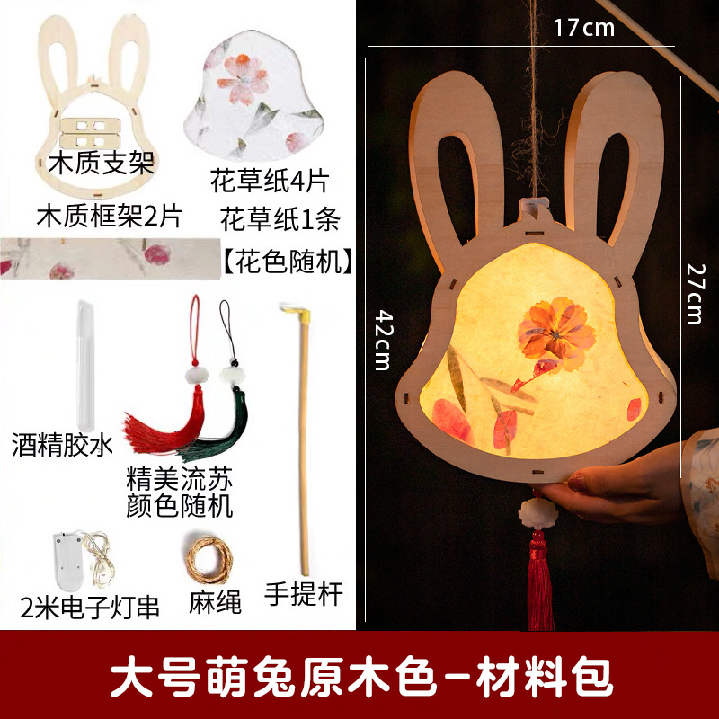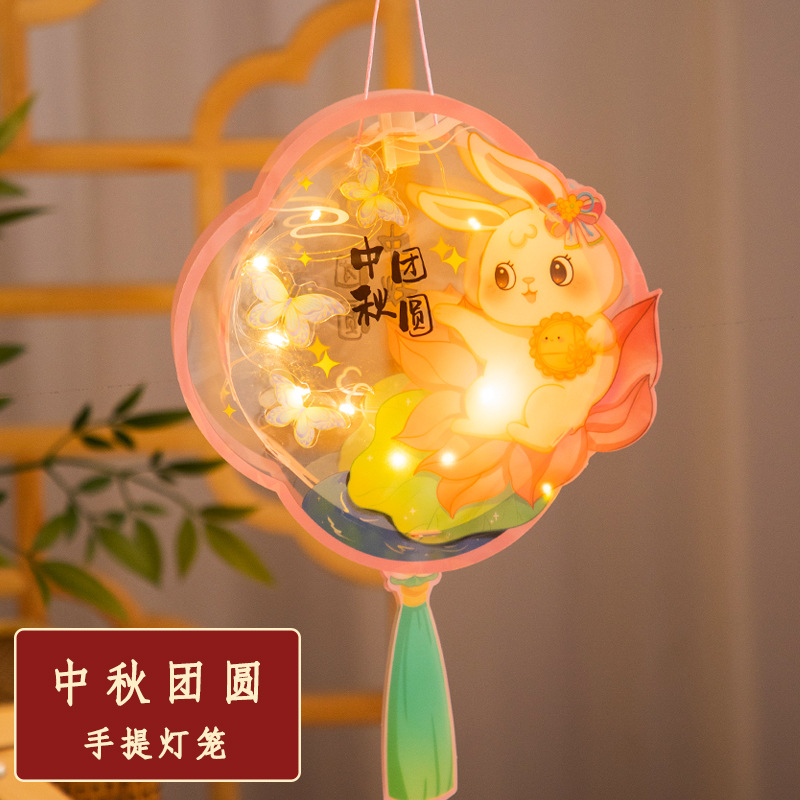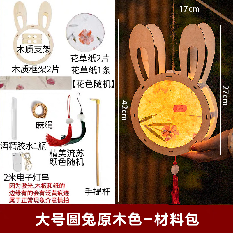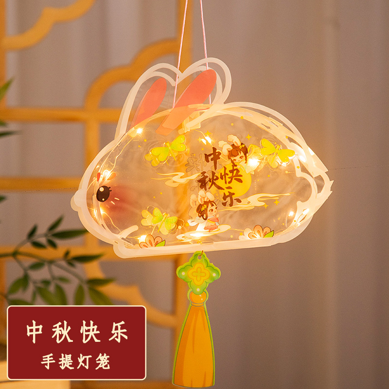 中秋节灯笼手提木质旋转花灯儿童手工diy材料小兔子发光宫灯批发