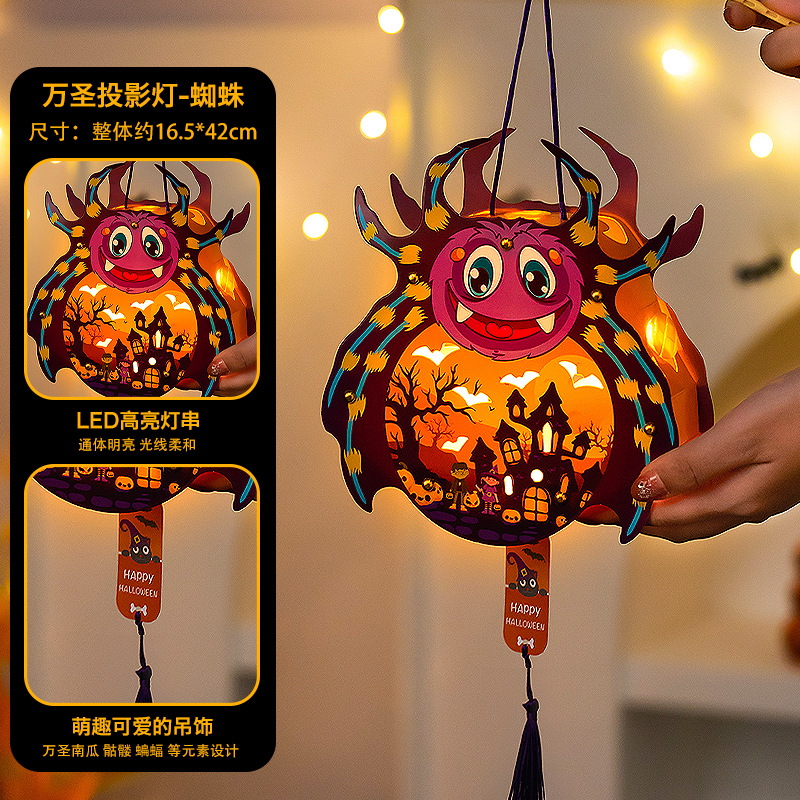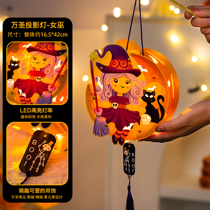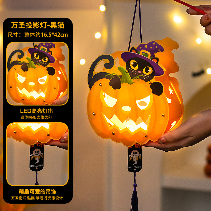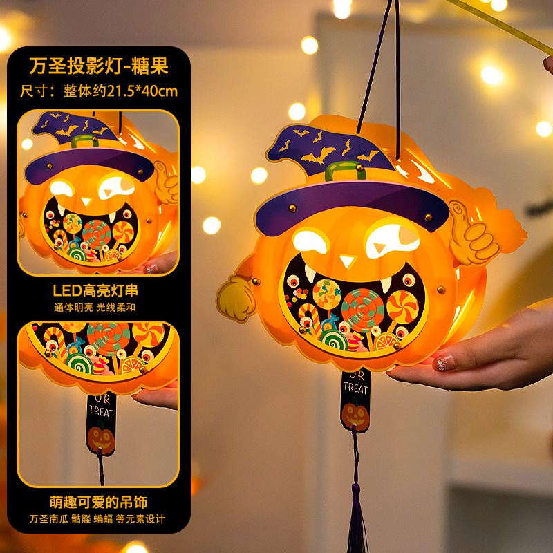 万圣节南瓜灯儿童手提发光投影灯笼手工diy材料包幼儿园活动道具