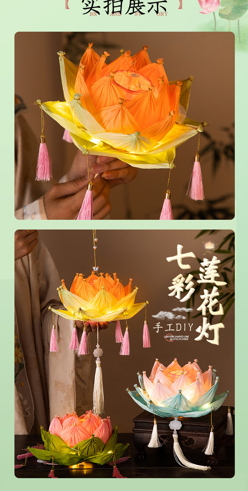 中秋节灯笼莲花灯荷花灯diy材料手工提发光古风纸灯宫笼批发摆摊