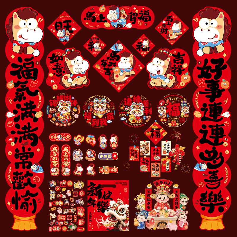 对联春联批货2026马年对联大礼包新年元旦福字贴过年装饰大门布置
