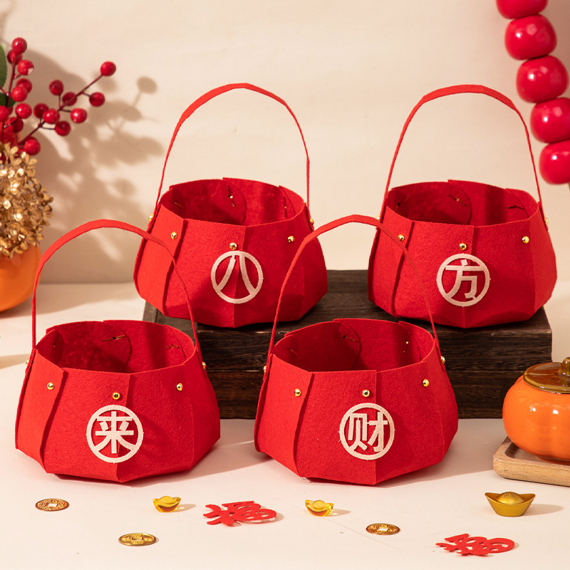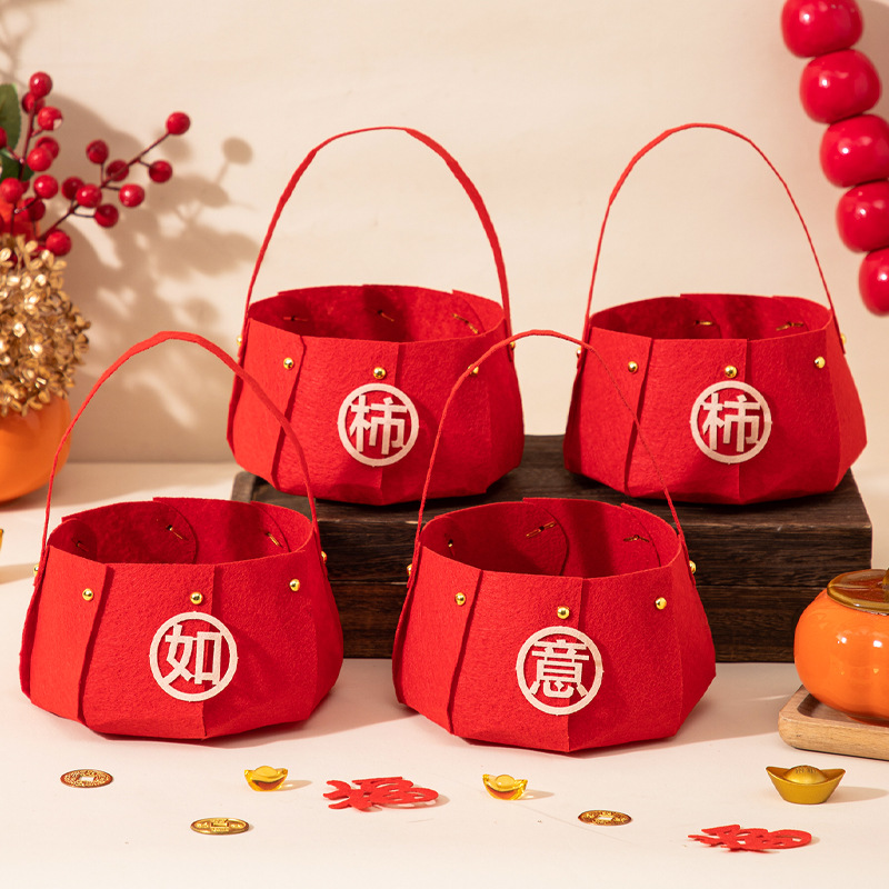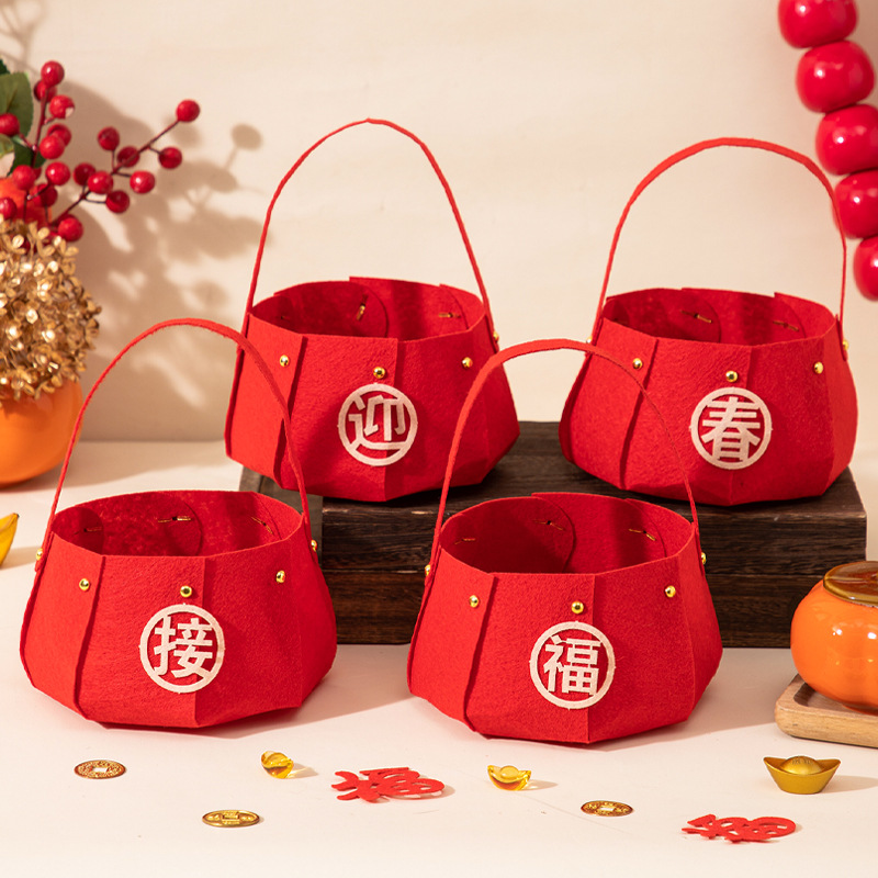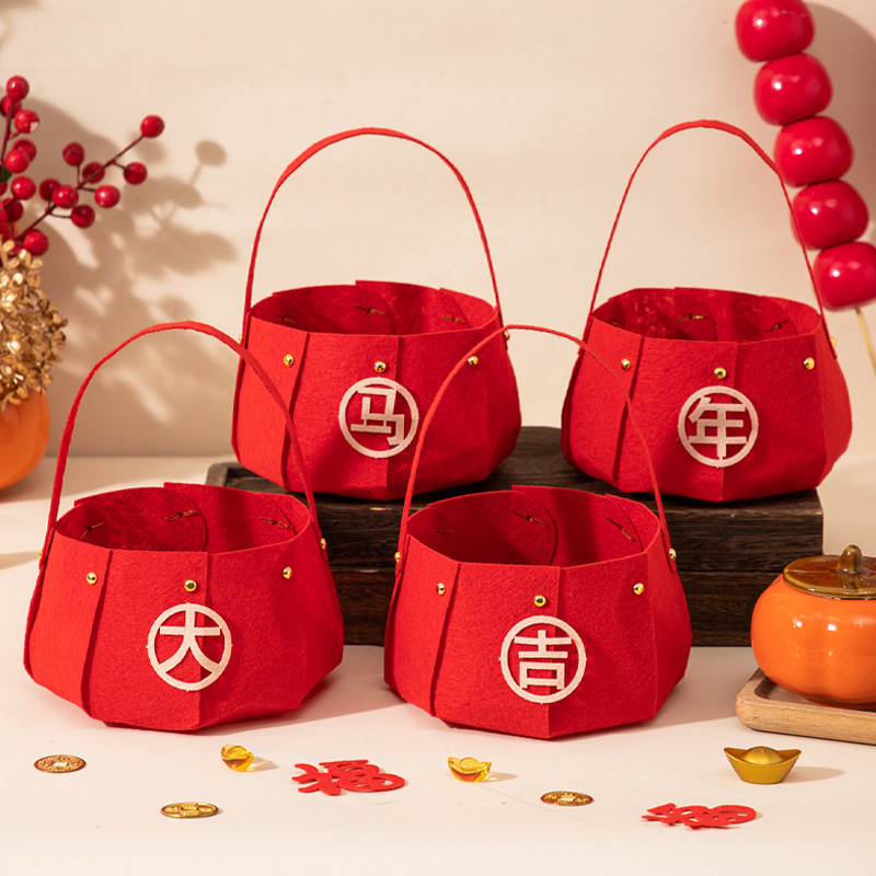过年喜庆摆件2026马年新年手提果篮家用果盘过年客厅氛围布置用品