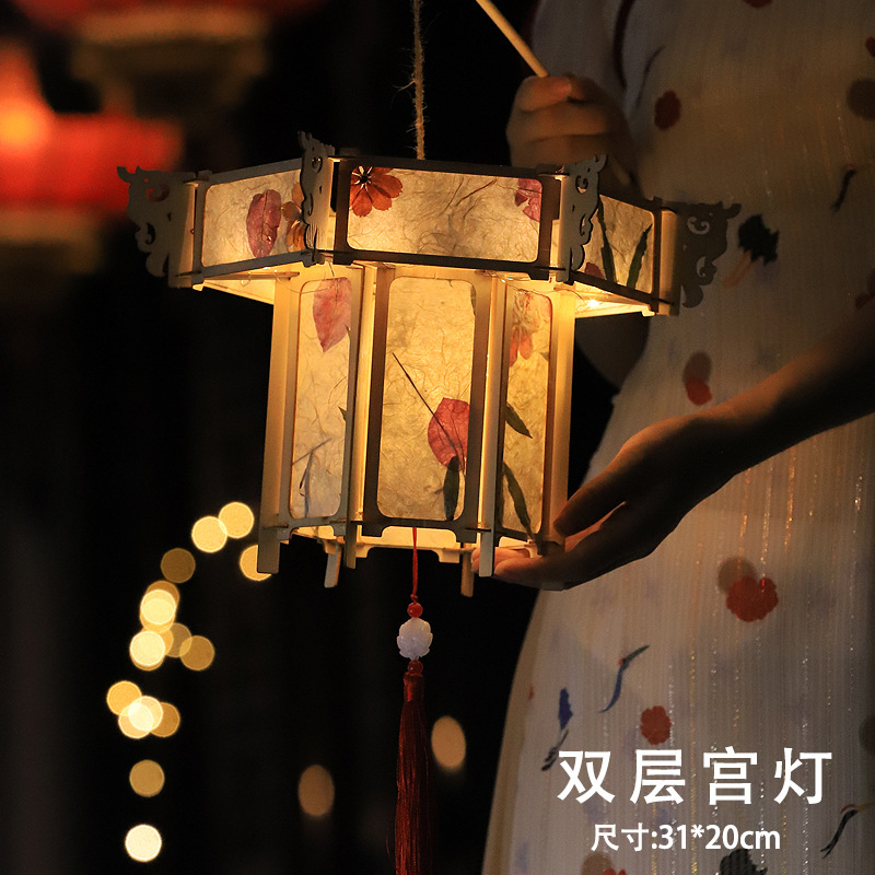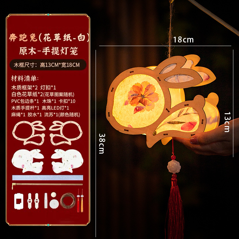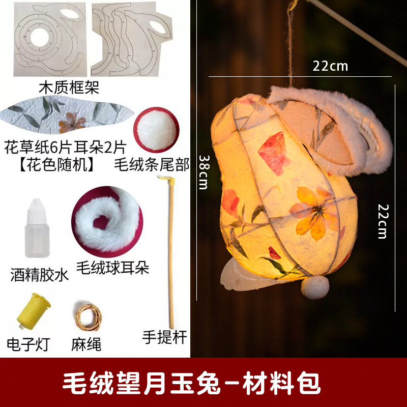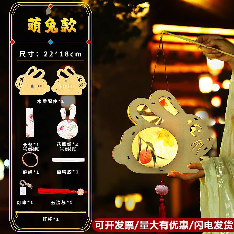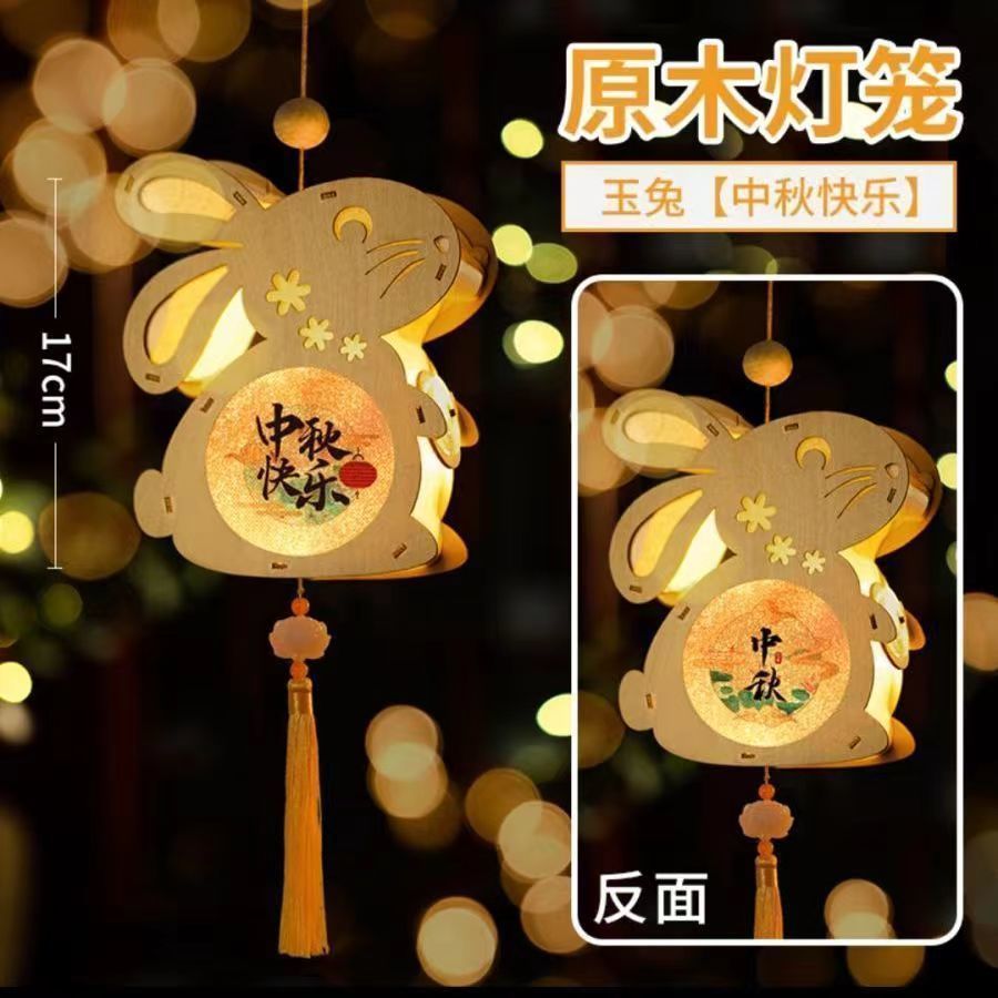 中秋节手提灯笼发光古风花灯儿童手工diy材料小兔子宫灯摆摊批发