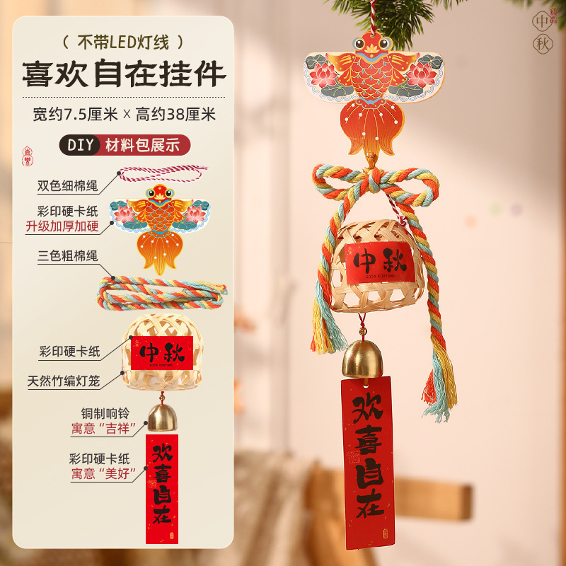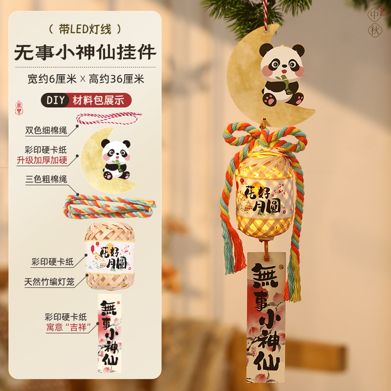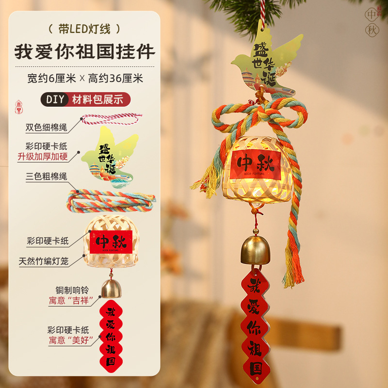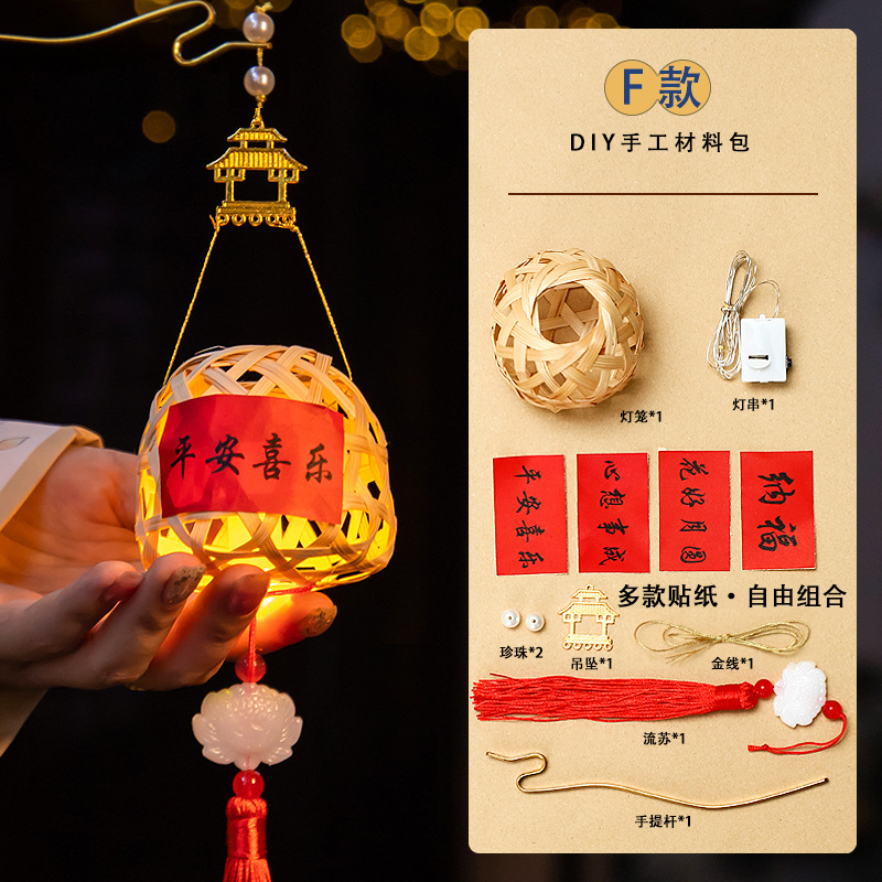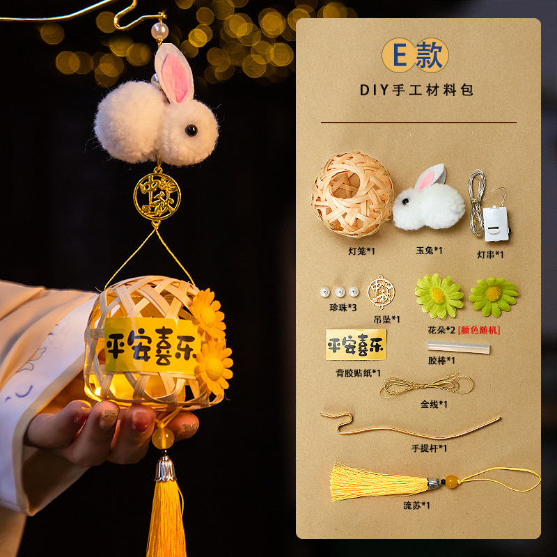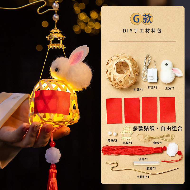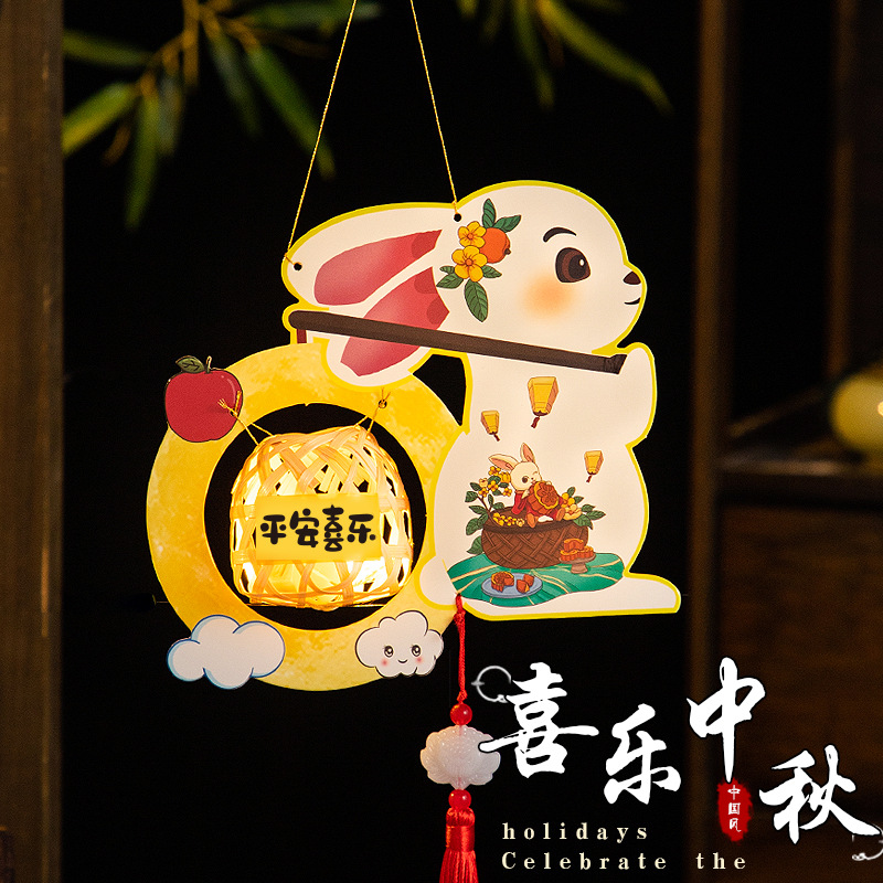 中秋节竹编灯笼花灯手提发光小兔子灯笼diy手工材料古风灯笼摆摊