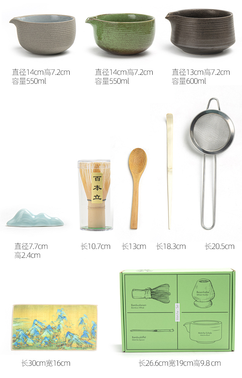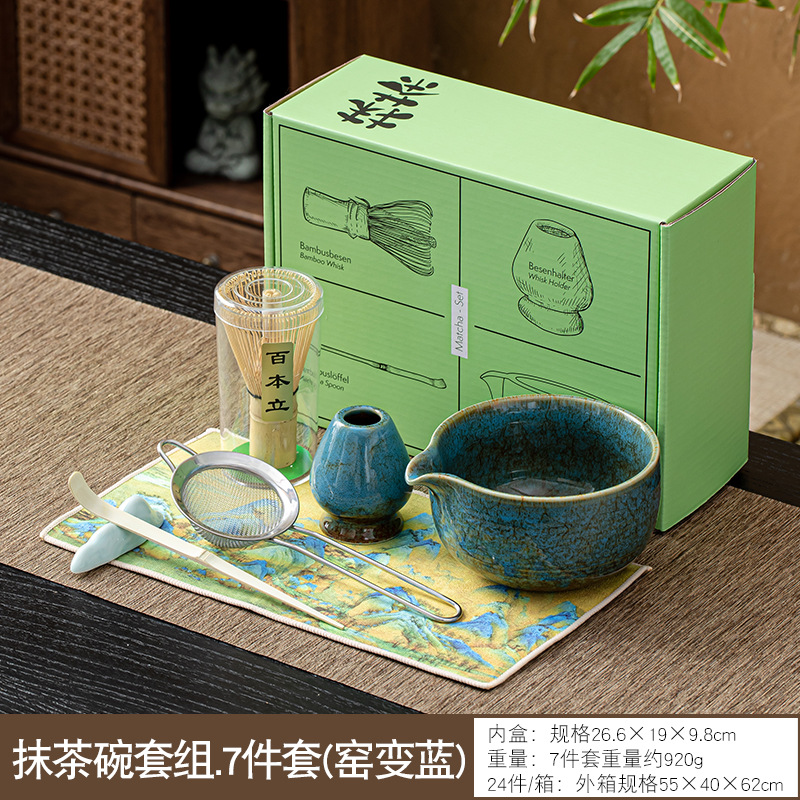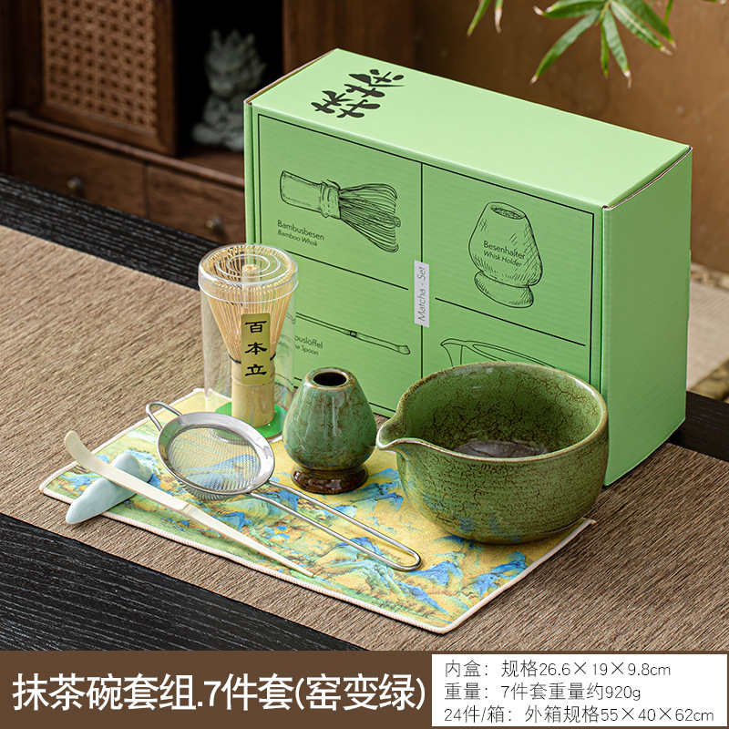跨境新款抹茶套装日式打茶工具点茶百本立打茶器陶瓷茶筅立7件套