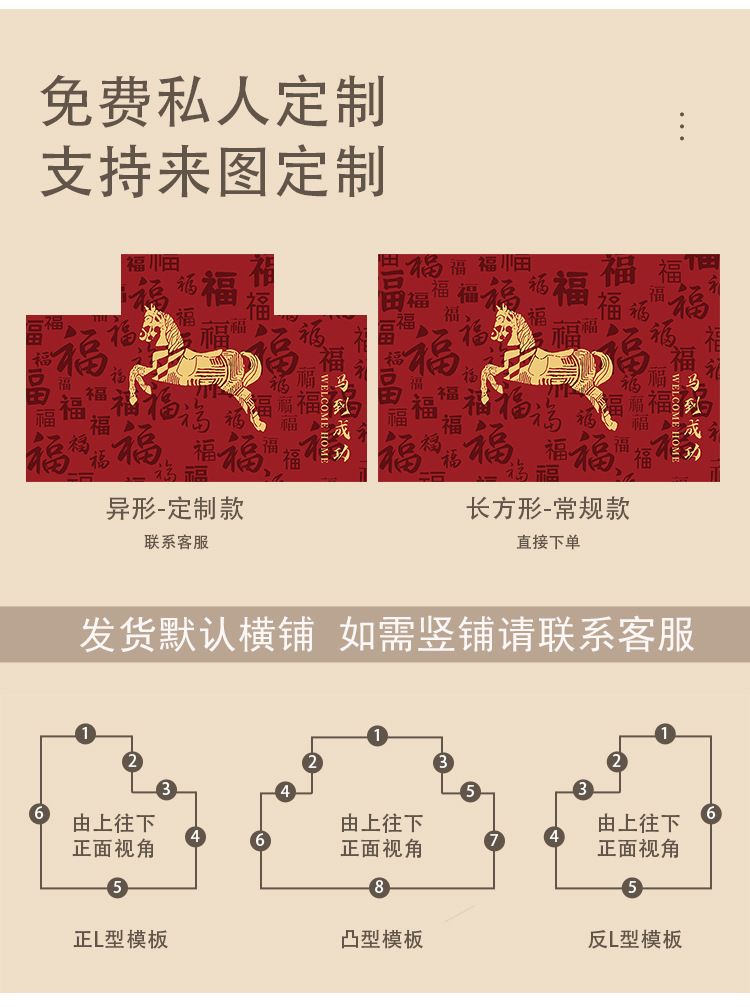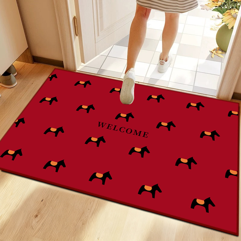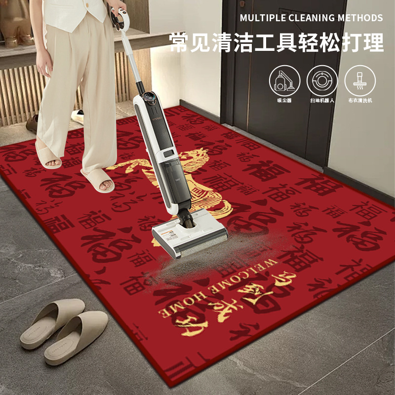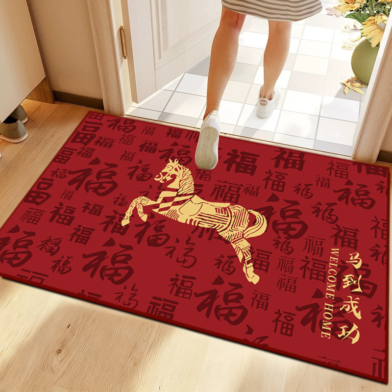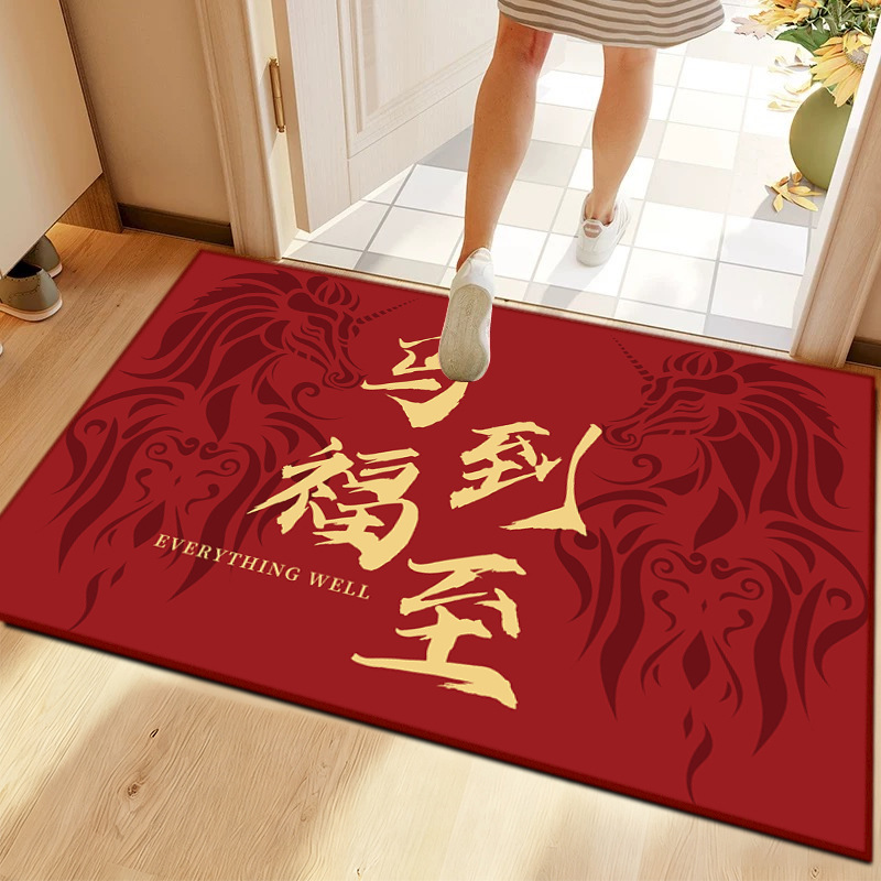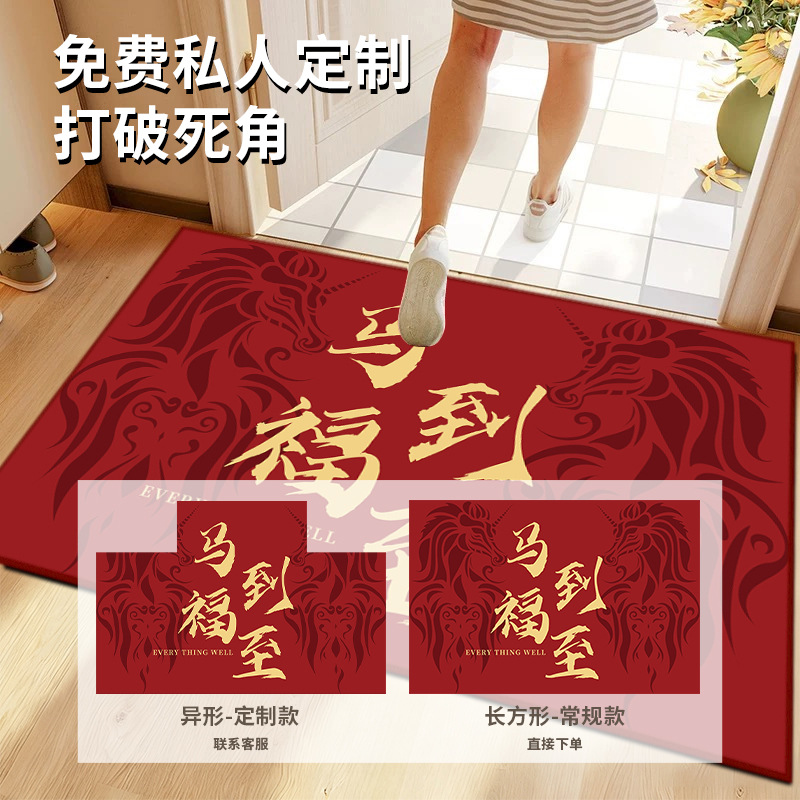马年红色入户门地垫喜庆除尘耐磨脚垫地板玄关大门口地毯圈绒