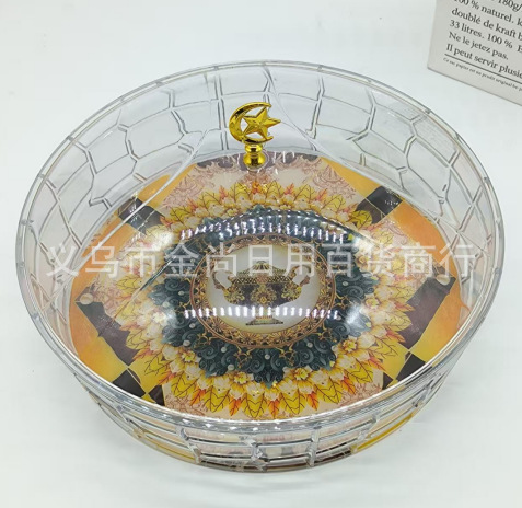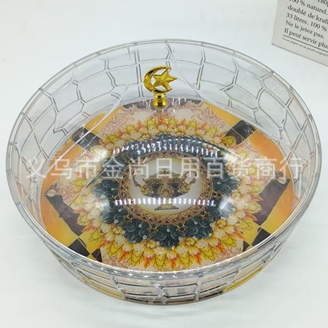 新款花瓶图案带盖小大号水果盘客厅高颜值果盘透明简约时尚果糖盘