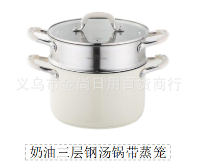 家用奶白色汤锅不锈钢汤锅不锈钢加厚煲汤电磁炉燃气双耳蒸煮锅