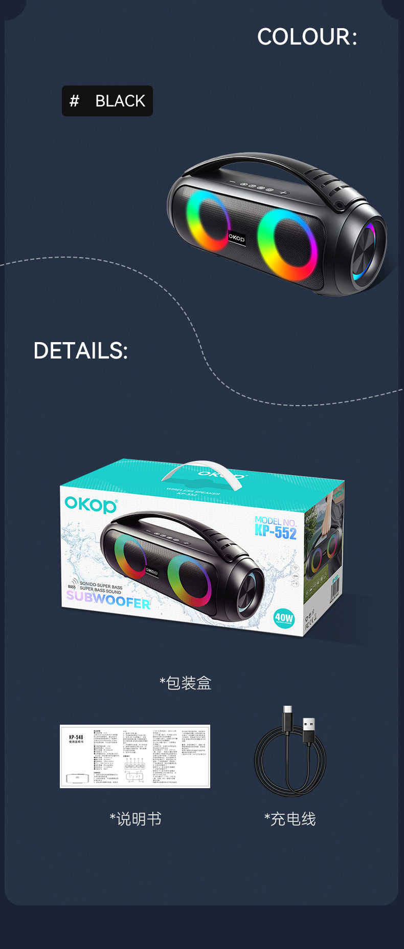 552蓝牙音便携提手40W大功率户外重低音炮广场舞超长续航跨境热销