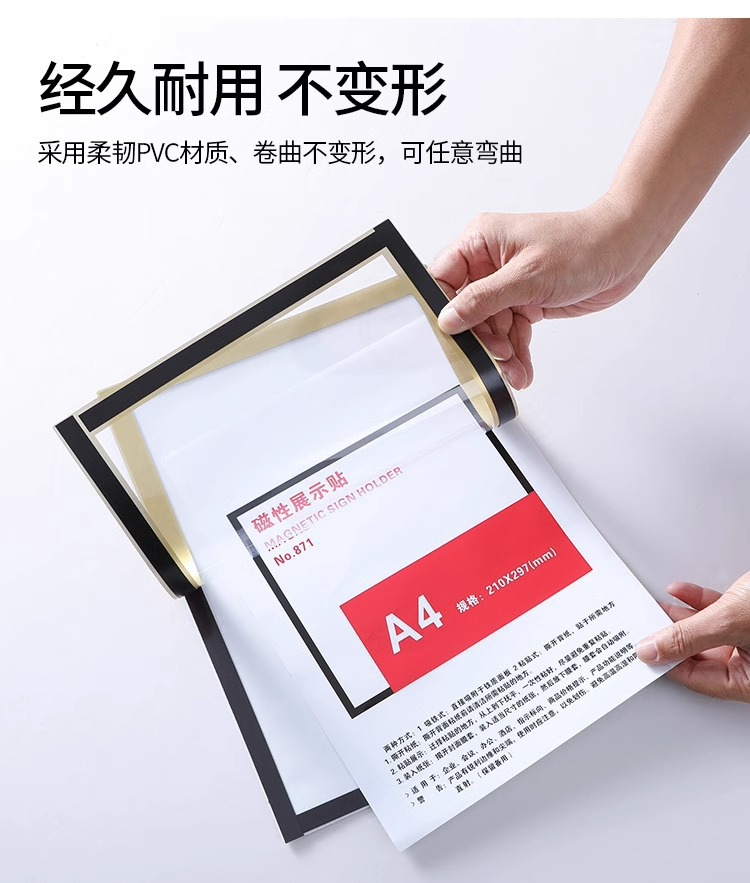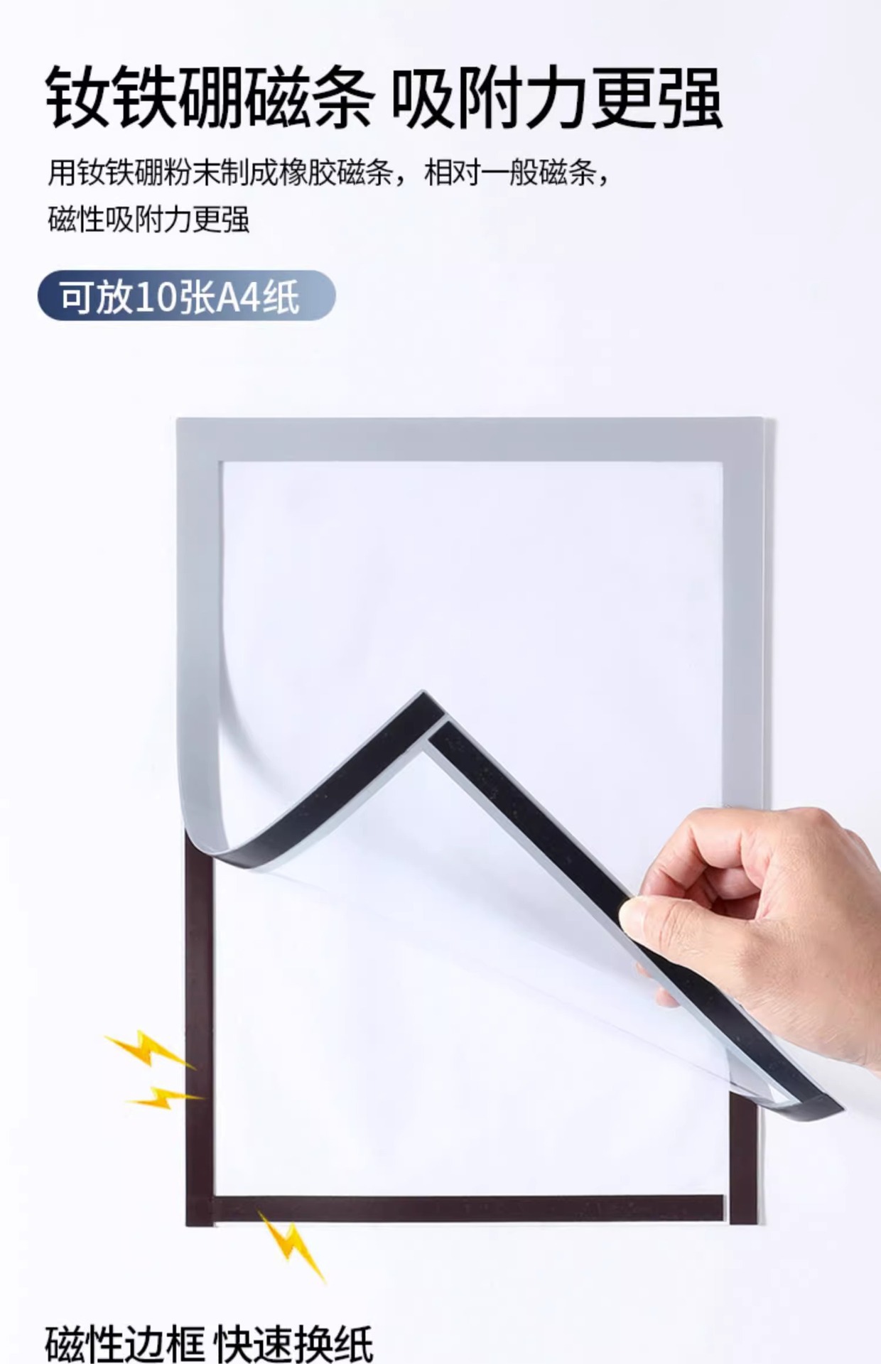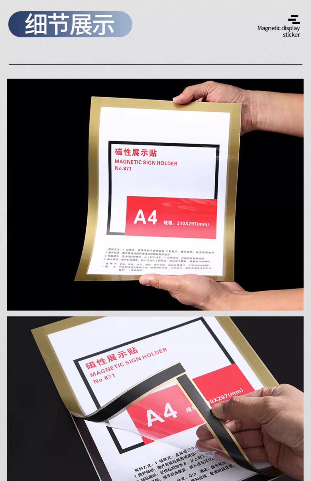 a4磁性展示贴磁吸相框保护套软磁贴A3奖状框海报8k广告框贴墙画框