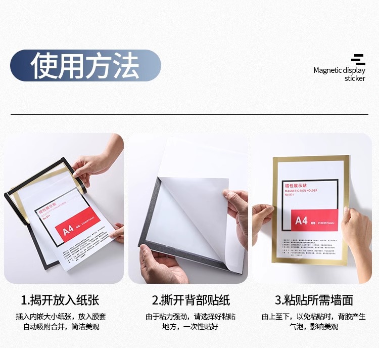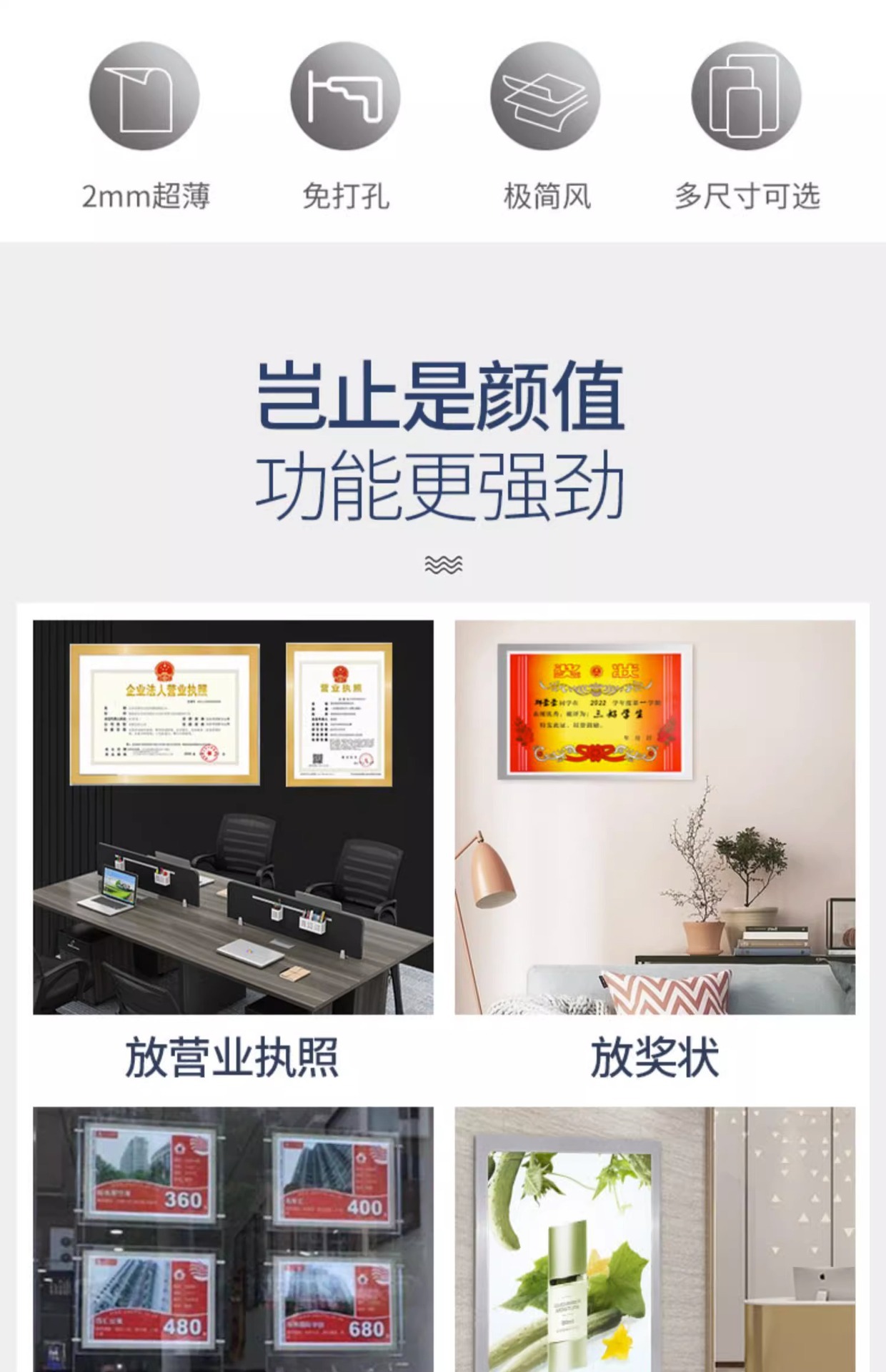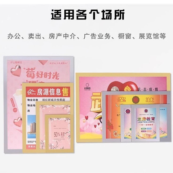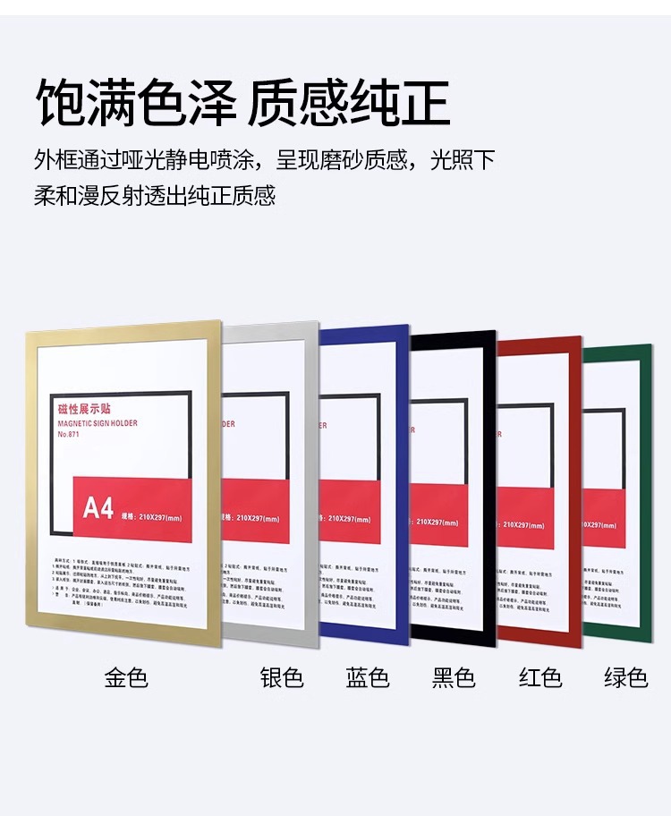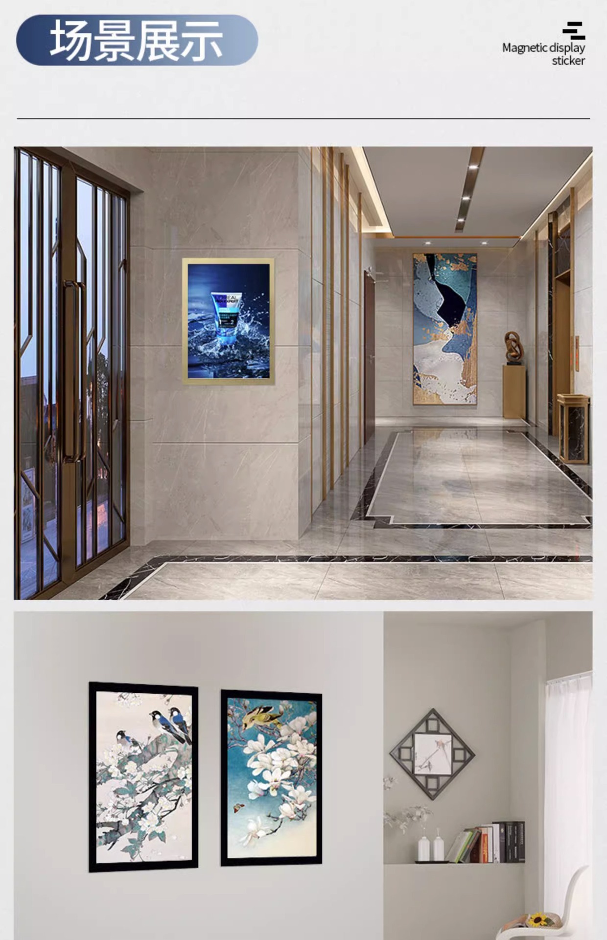 a4磁性展示贴磁吸相框保护套软磁贴A3奖状框海报8k广告框贴墙画框