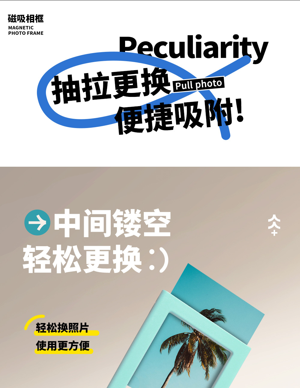 拍立得TEMU爆款拍立得相框3寸英寸DIY卡片冰箱贴磁吸相框网红INS