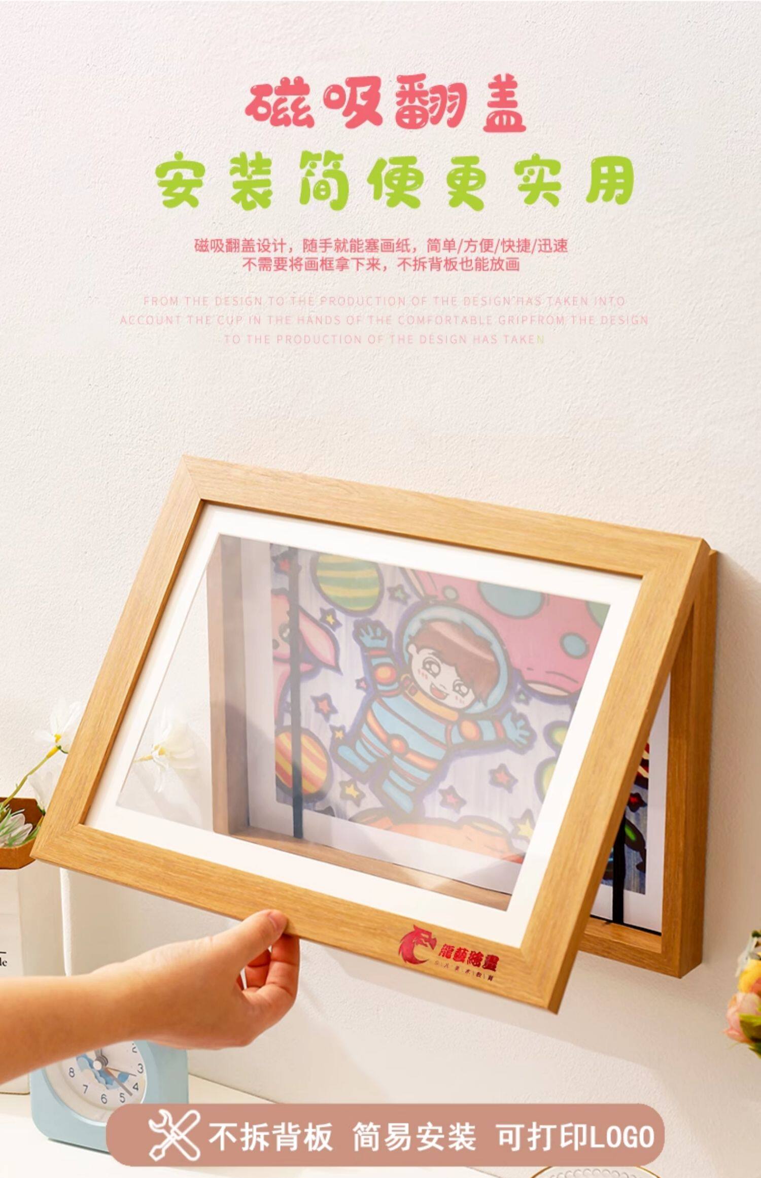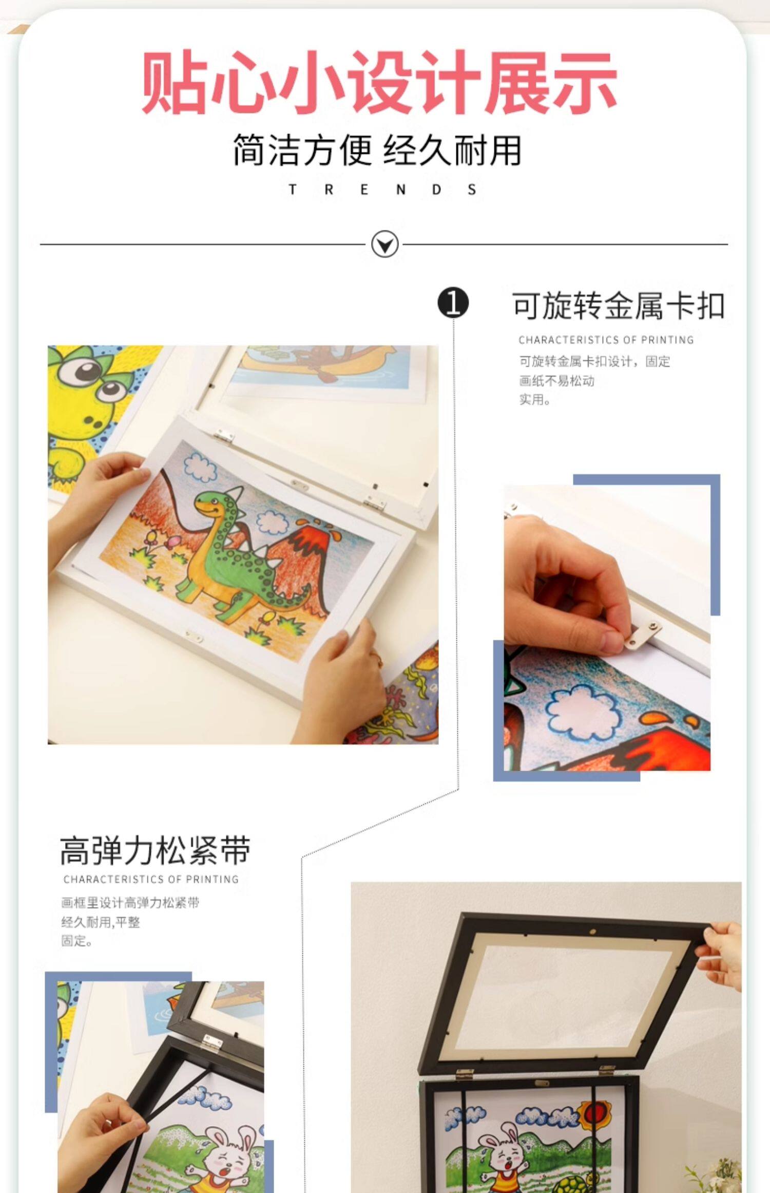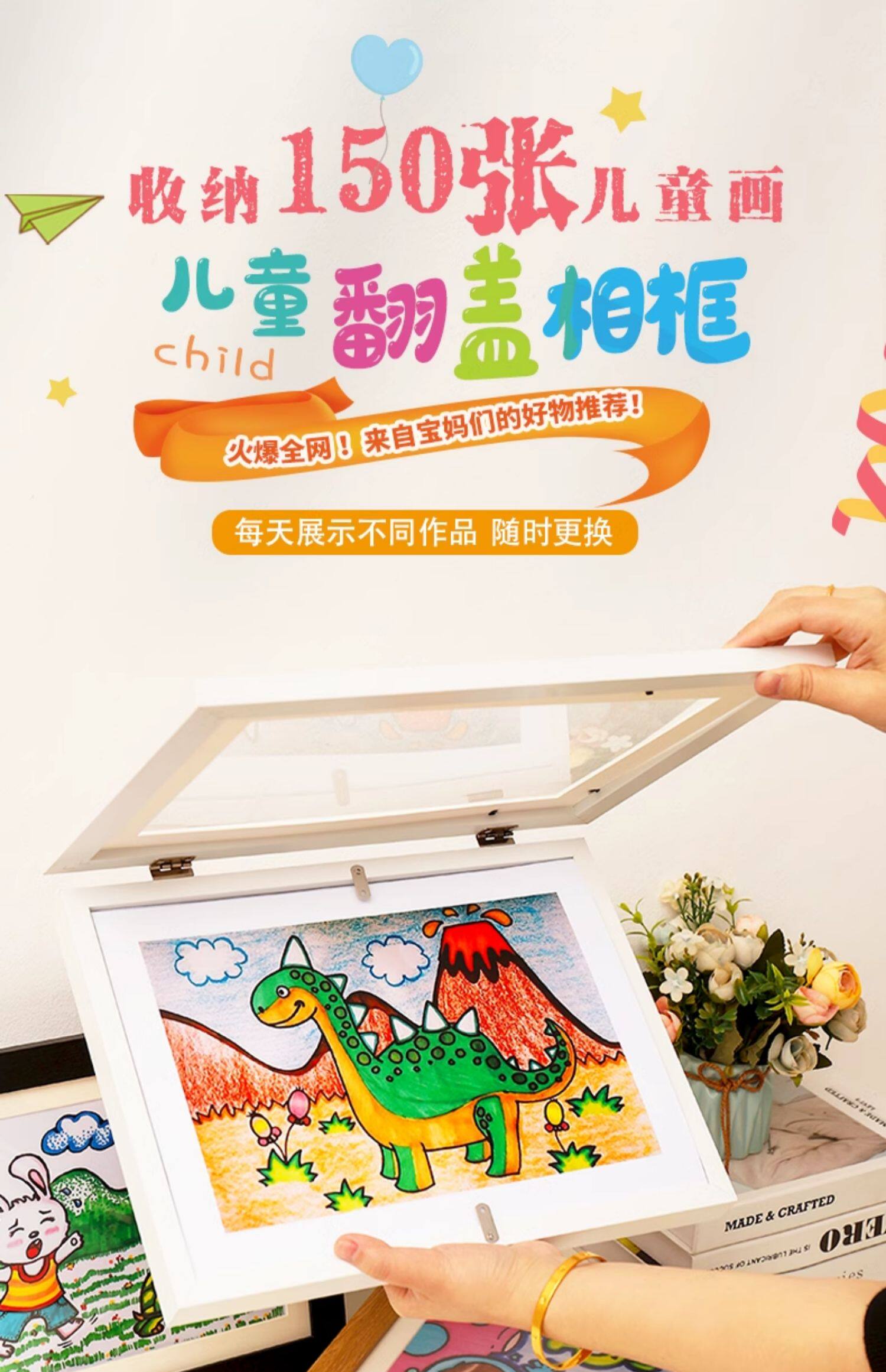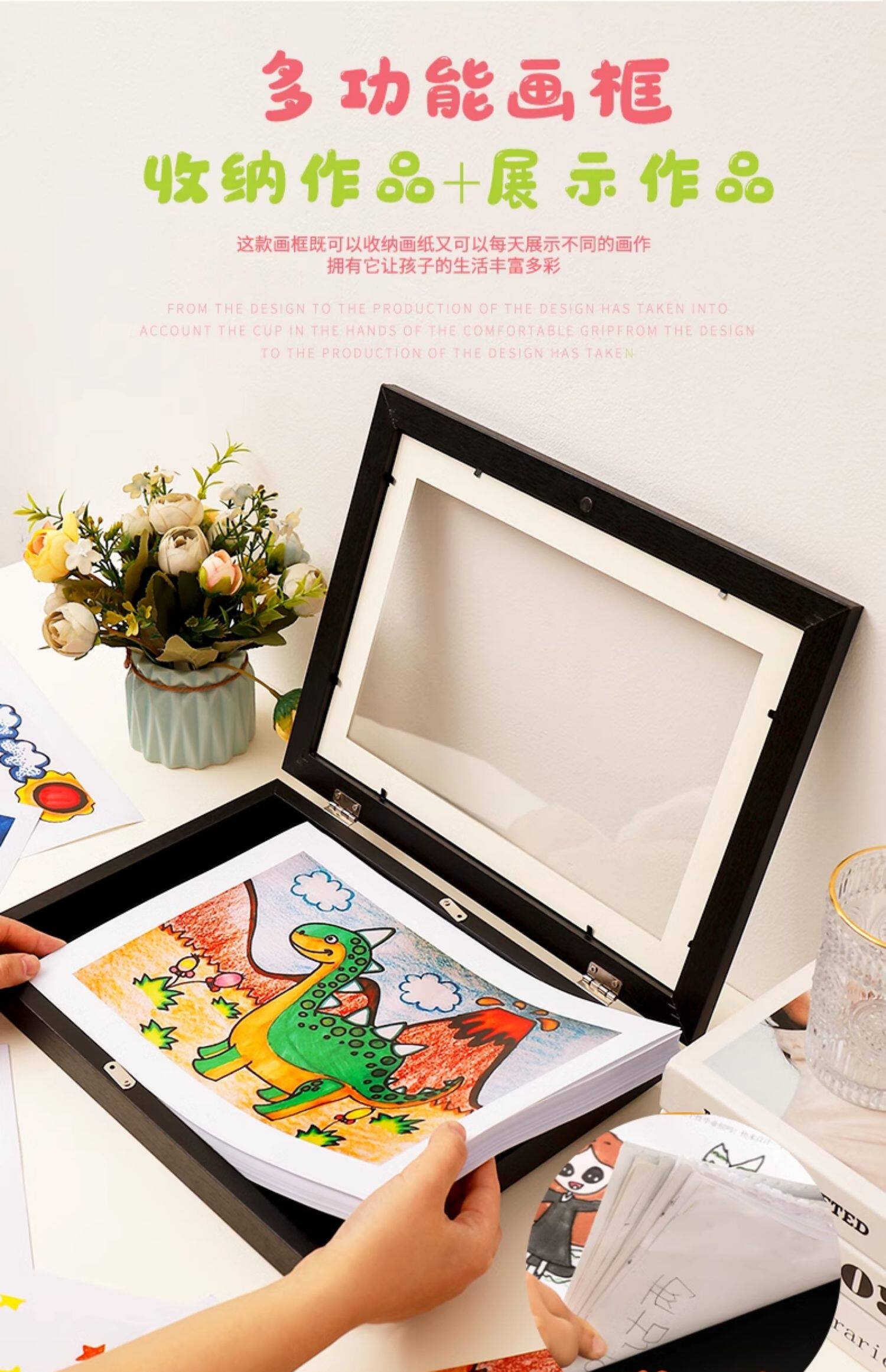 儿童艺术画收纳画框 幼儿园作品展示框 A4a3装裱画架磁吸翻盖相框