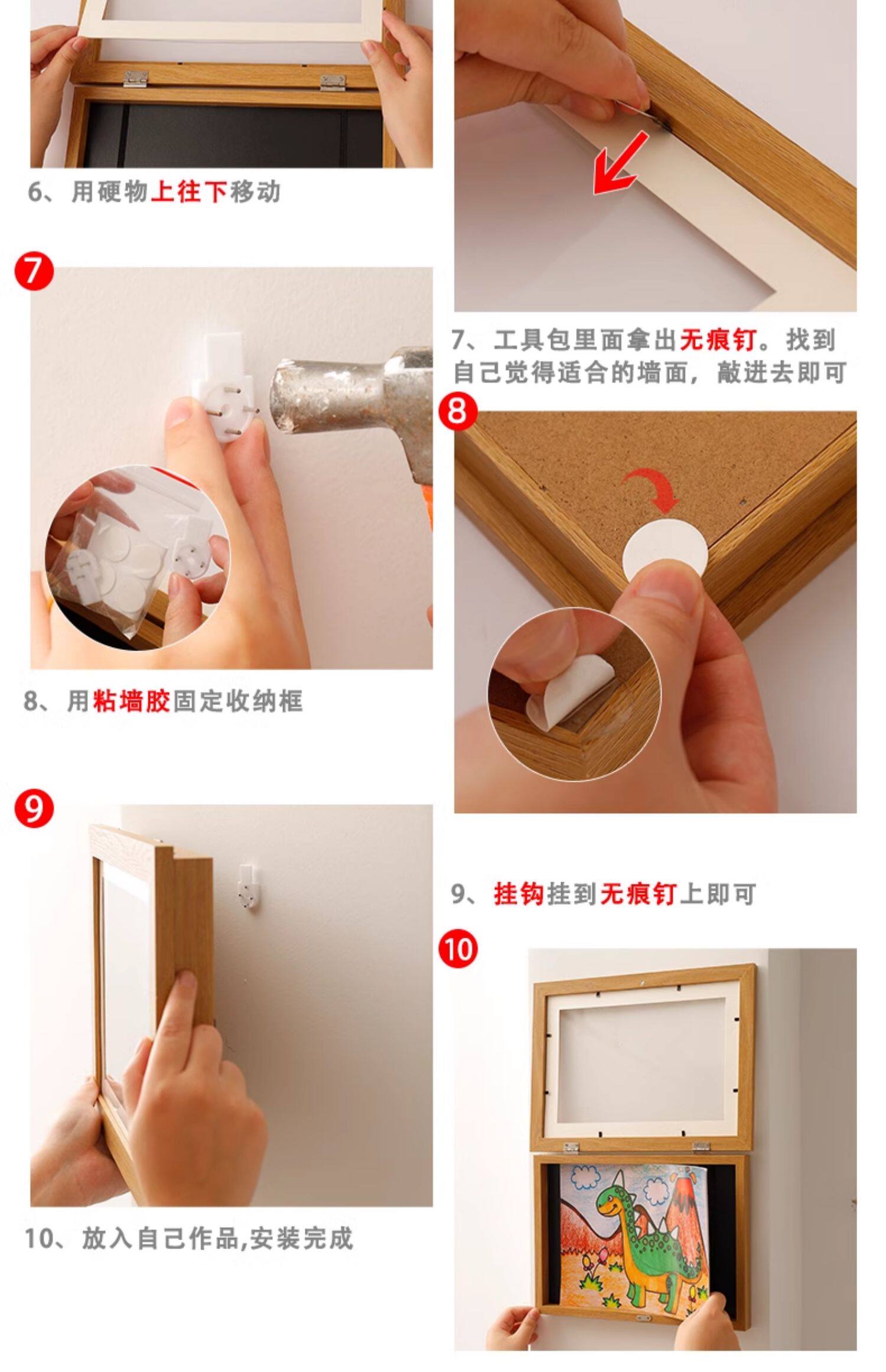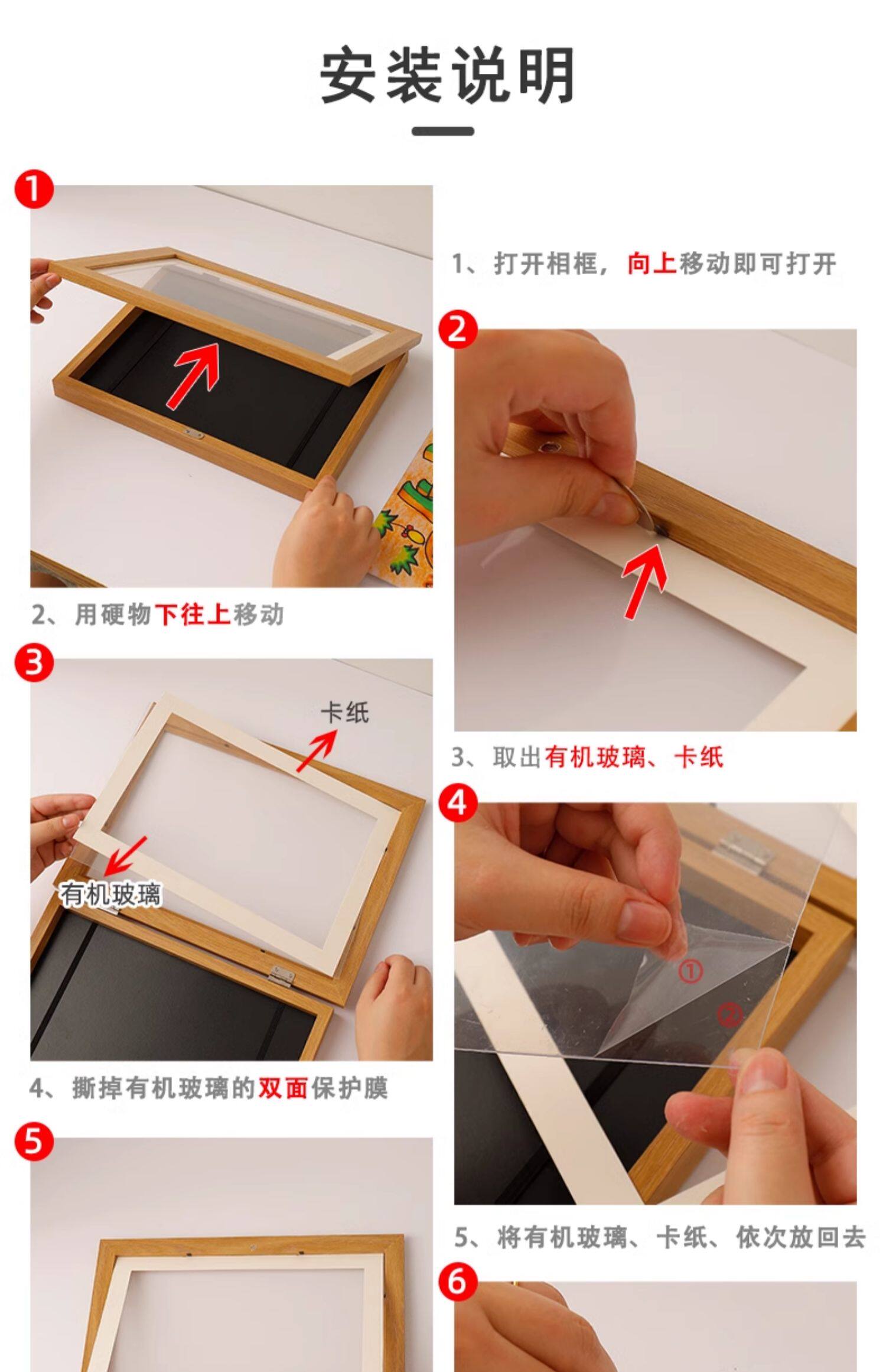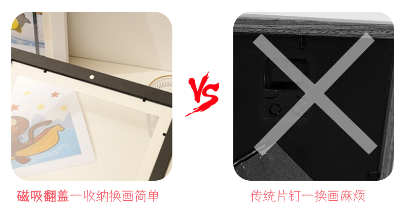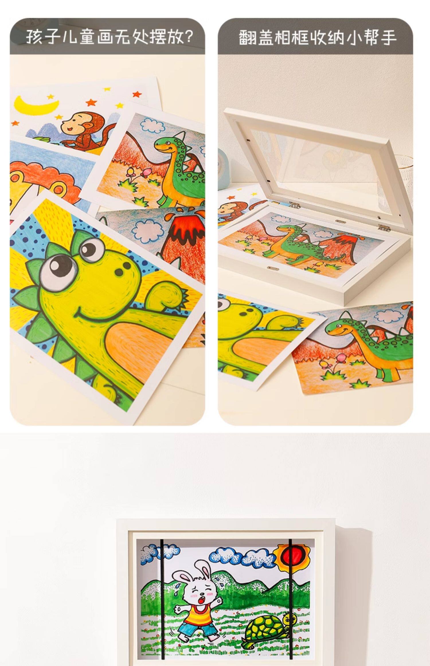 儿童艺术画收纳画框 幼儿园作品展示框 A4a3装裱画架磁吸翻盖相框