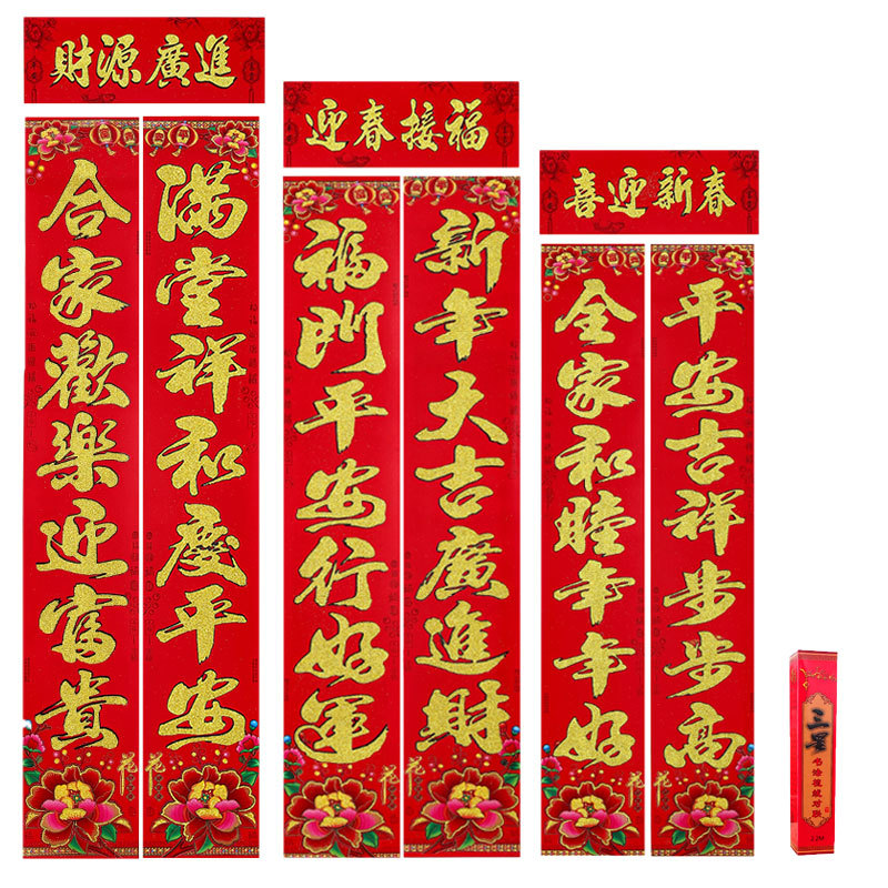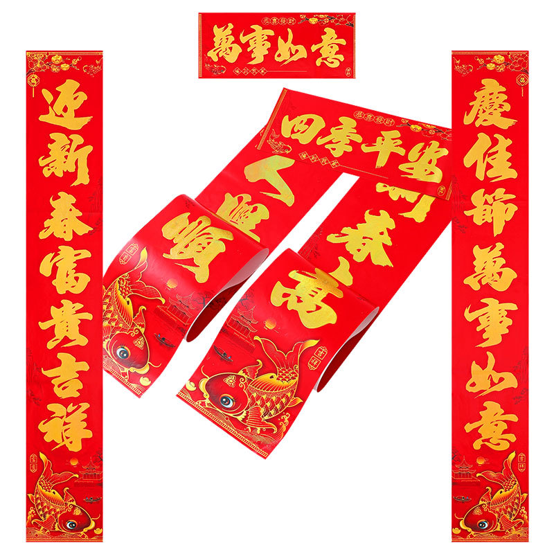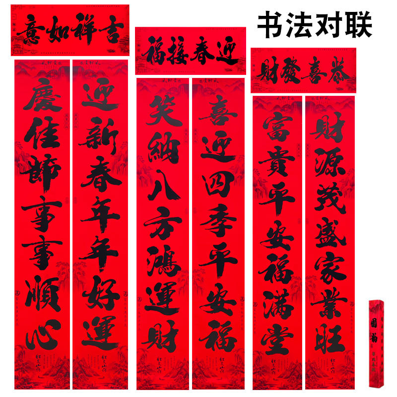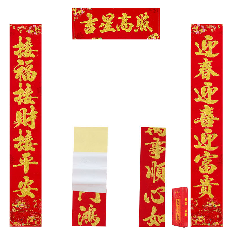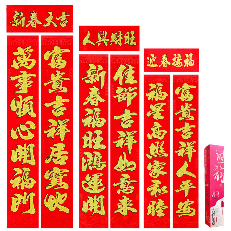 新款全背胶植绒满烫金撒金对联撕不破春联春节过新年门贴条胶对联