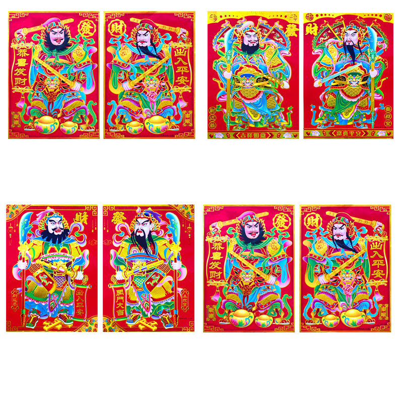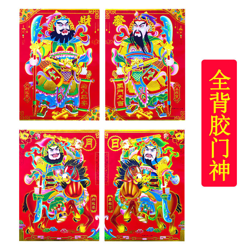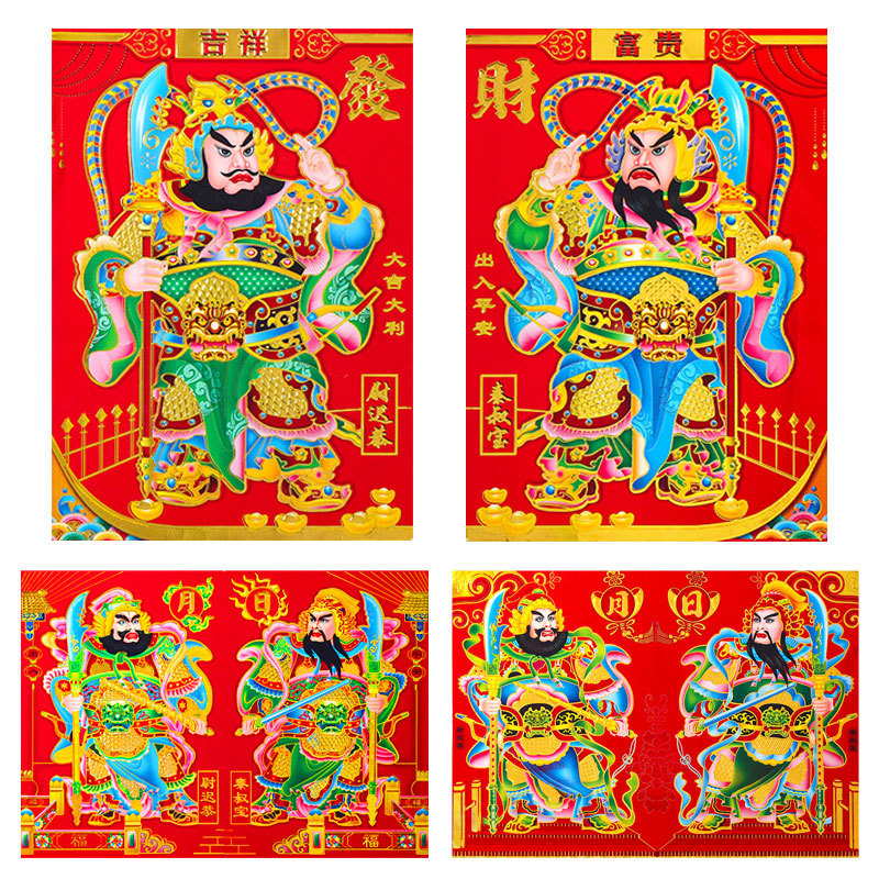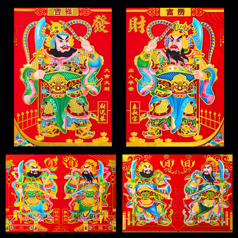 2026马年新款满烫金门神日月发财铜版纸大门门神批货厂家年画批发