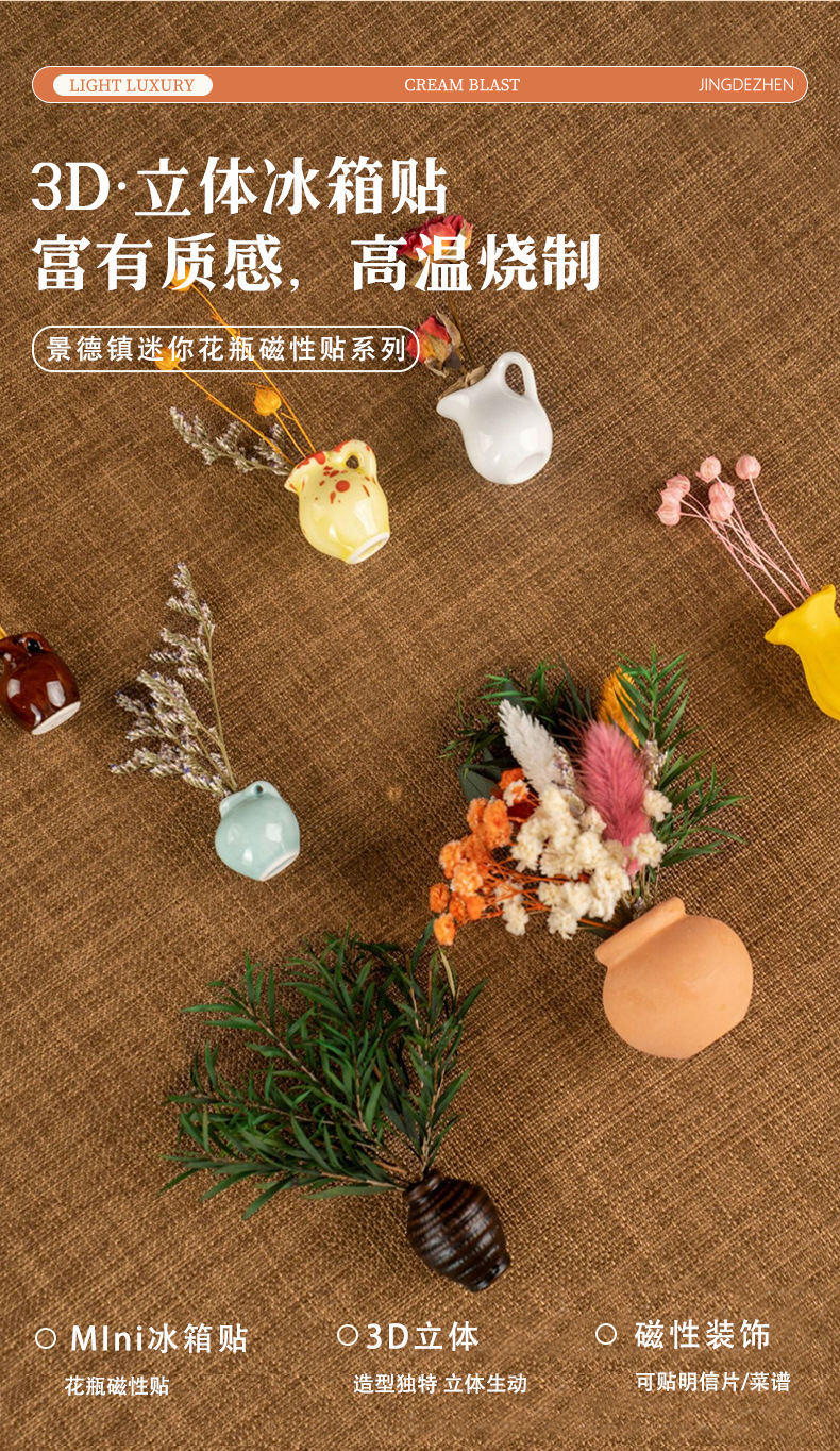 景德镇陶瓷迷你花瓶冰箱贴磁吸插花装饰物件指尖DIY冰箱装饰摆件