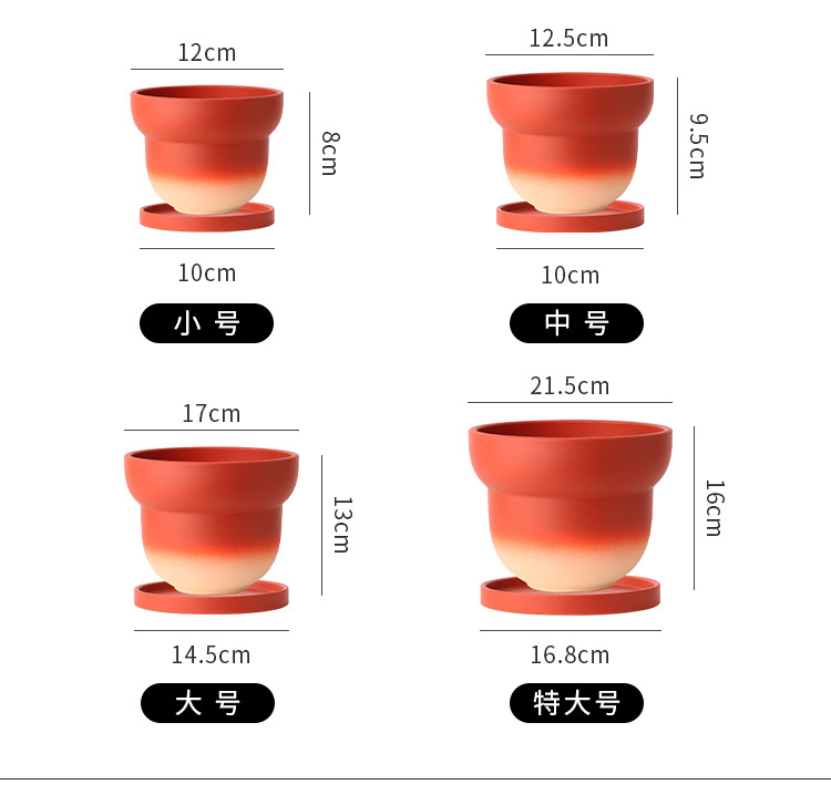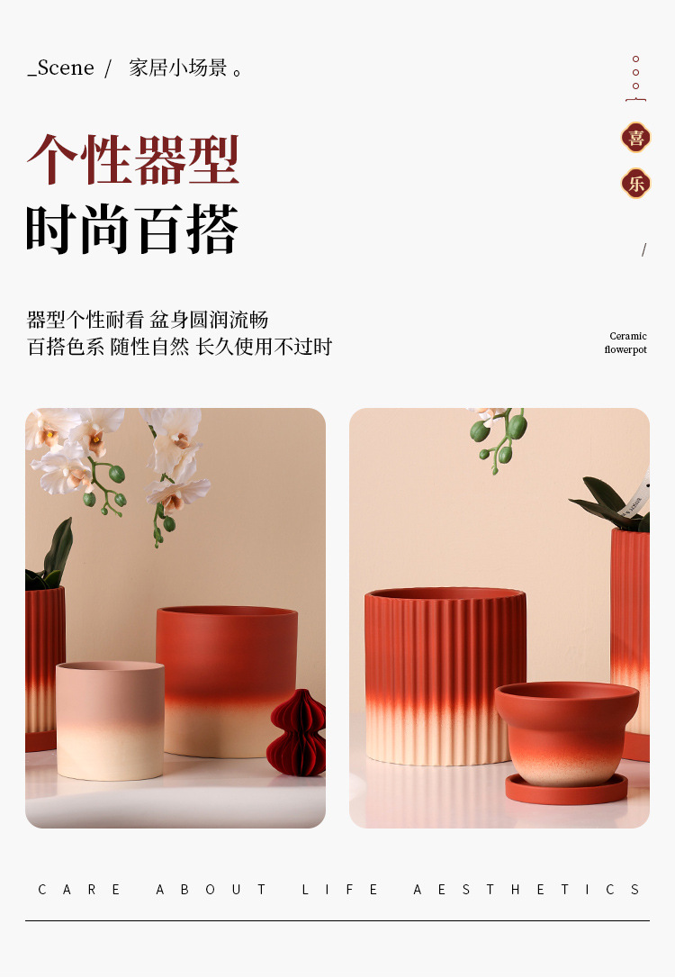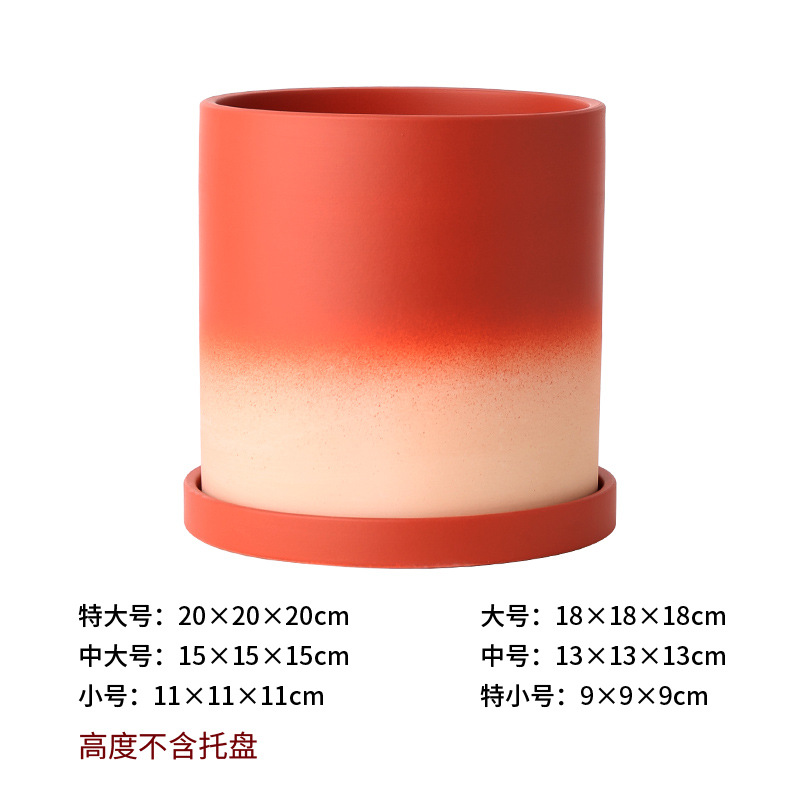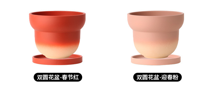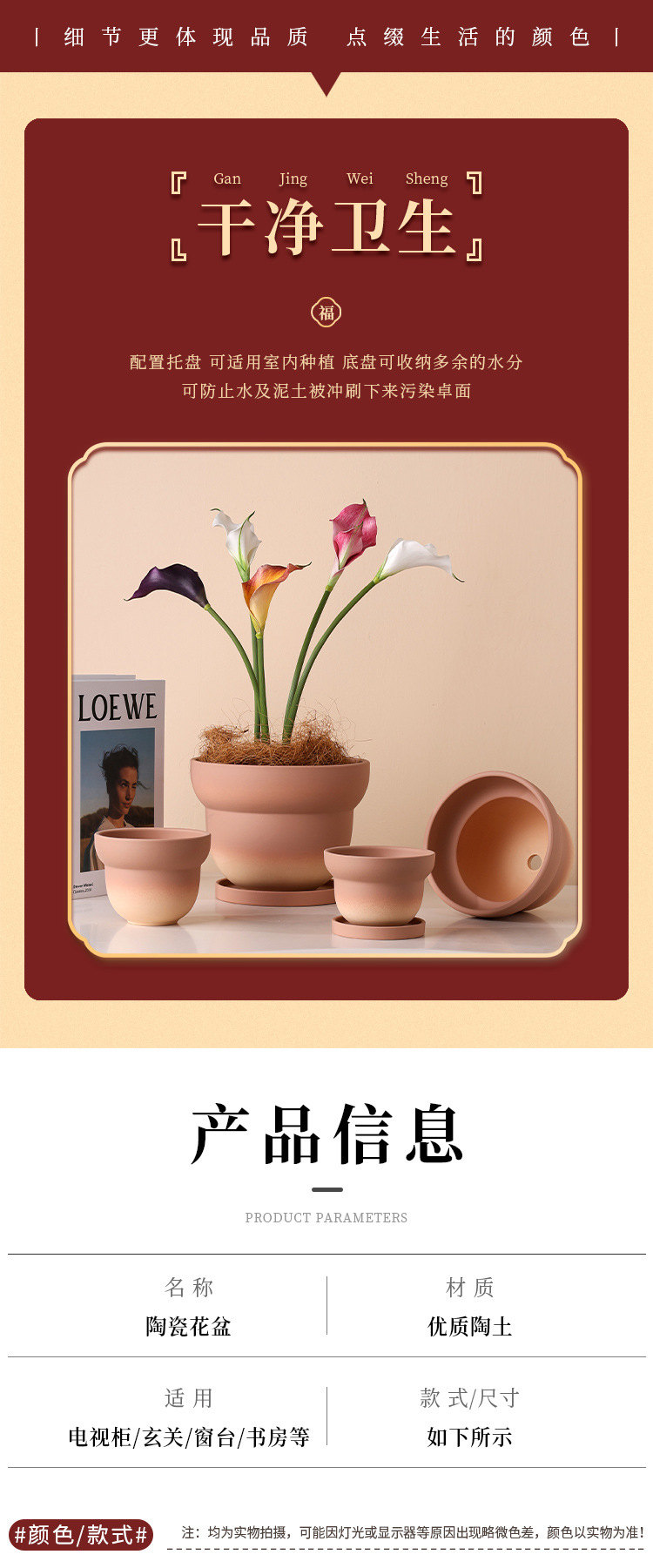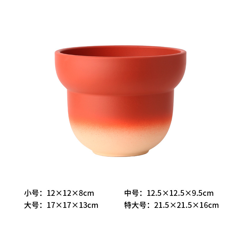 蝴蝶兰 花盆 新年福桶渐变迎春素烧红色花盆有孔带托盘仿真花发财