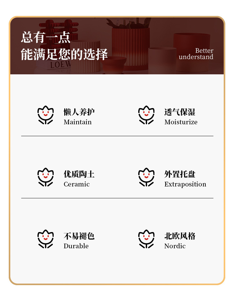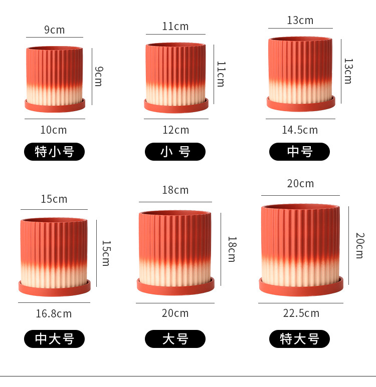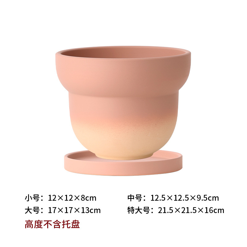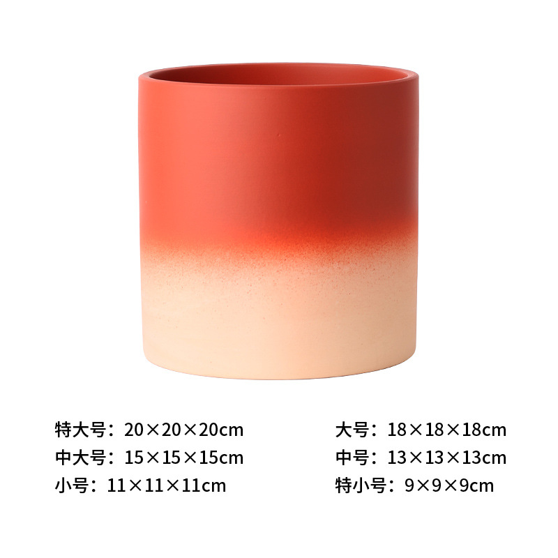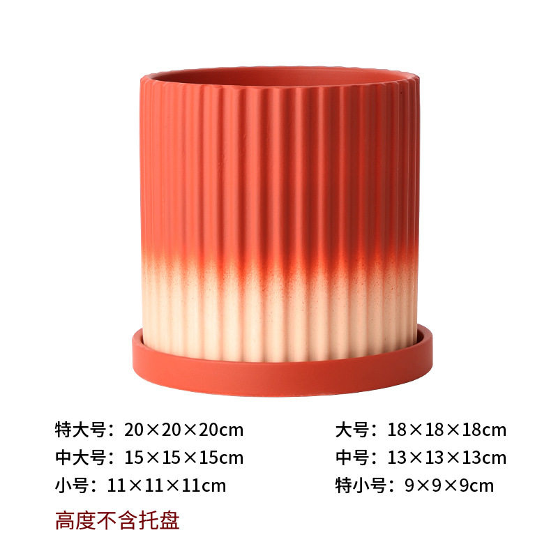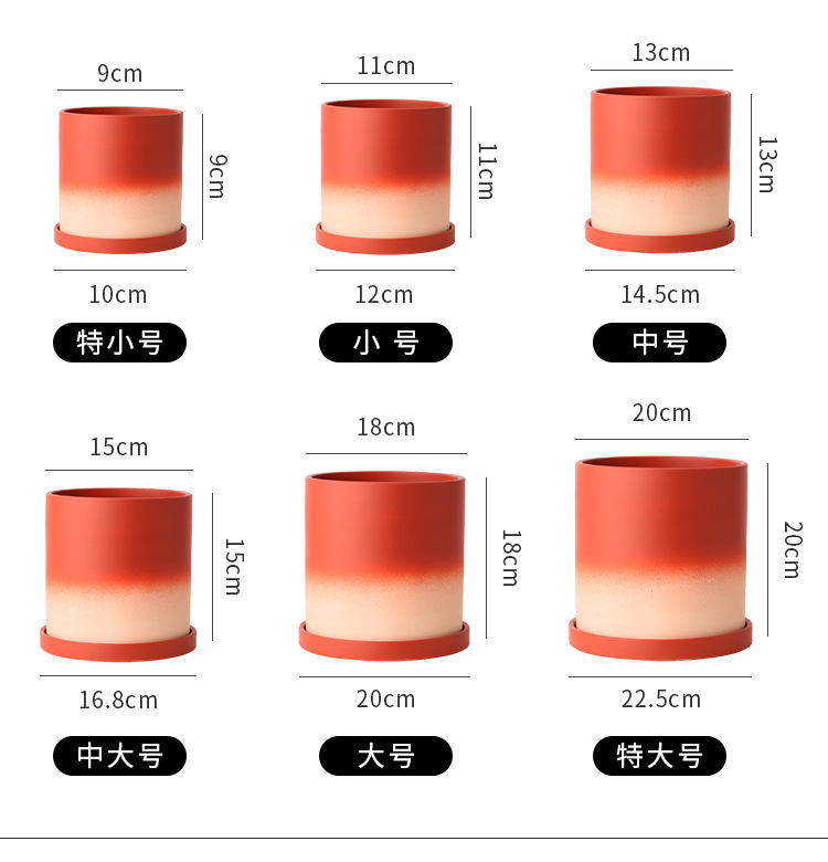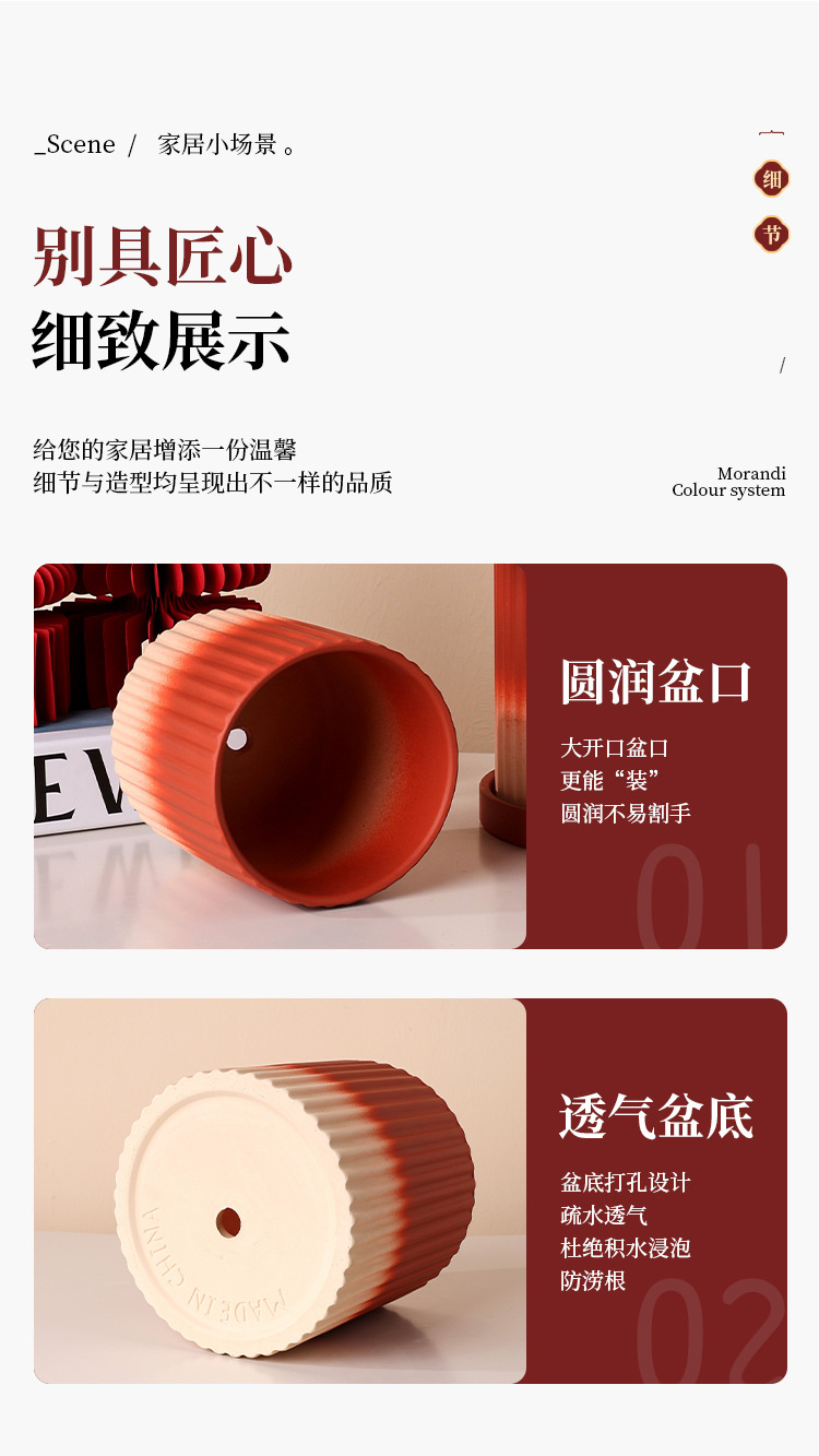 蝴蝶兰 花盆 新年福桶渐变迎春素烧红色花盆有孔带托盘仿真花发财