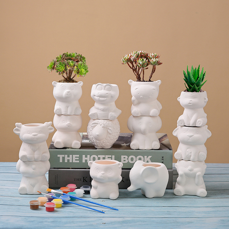 简约素烧卡通动物多肉花盆 可DIY跨境亚马逊家庭园艺陶瓷多肉盆栽
