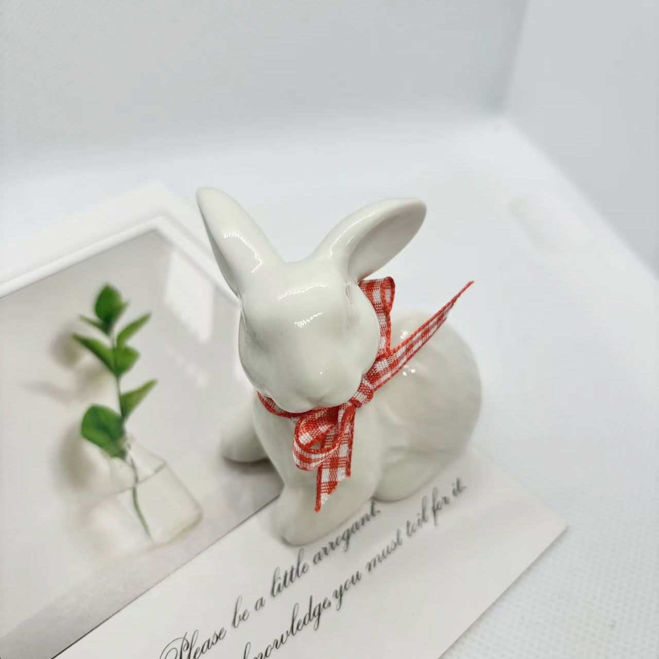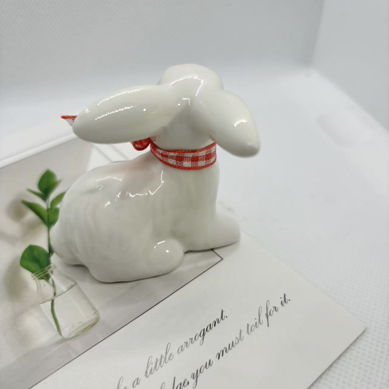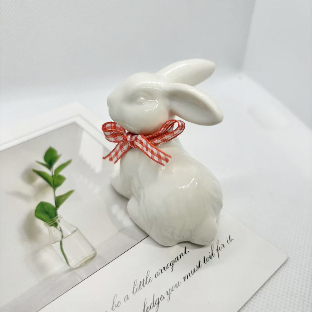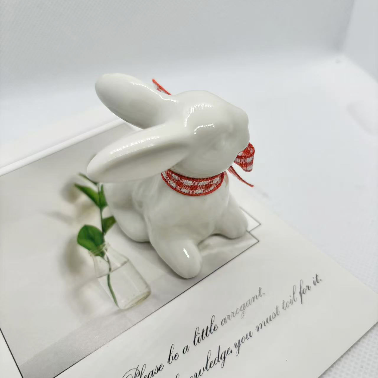 ins陶瓷创意兔子小摆件简约家居客厅玄关酒柜桌面陶瓷兔子装饰品