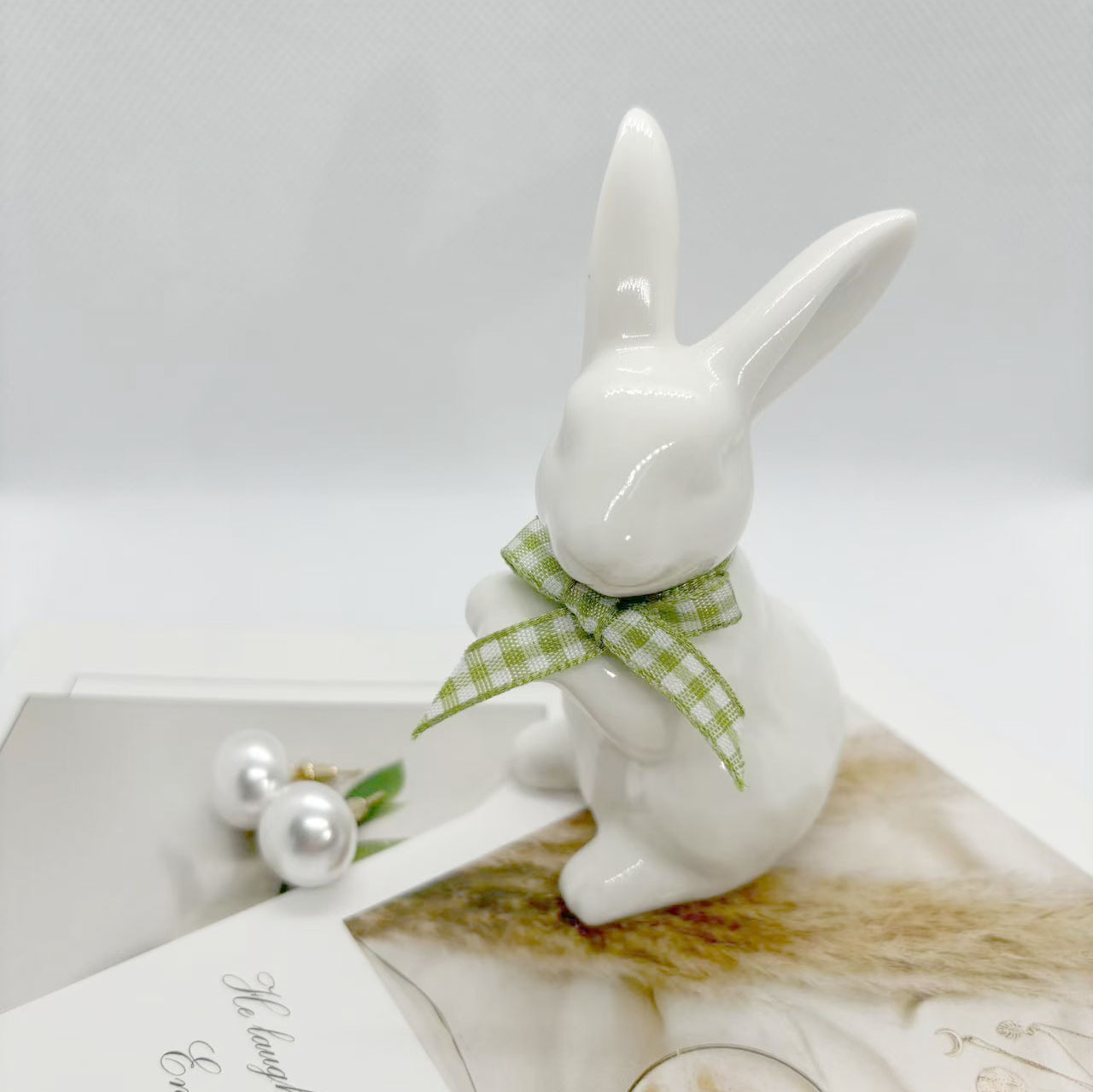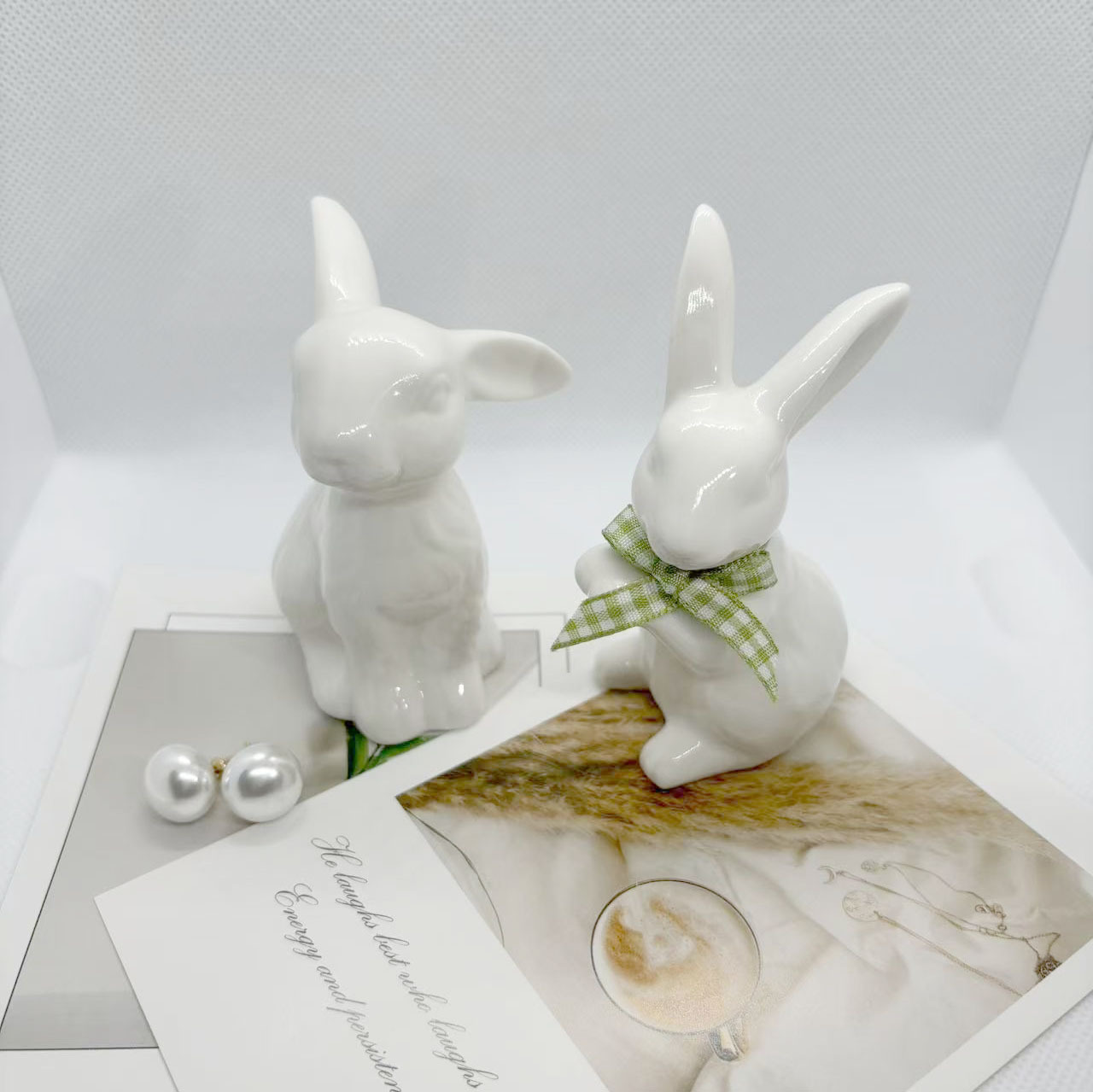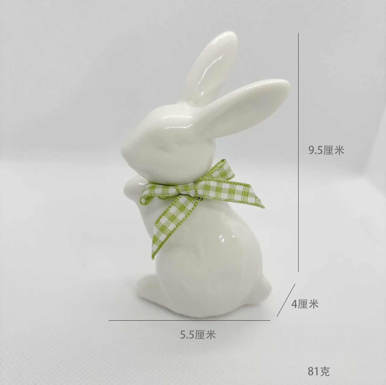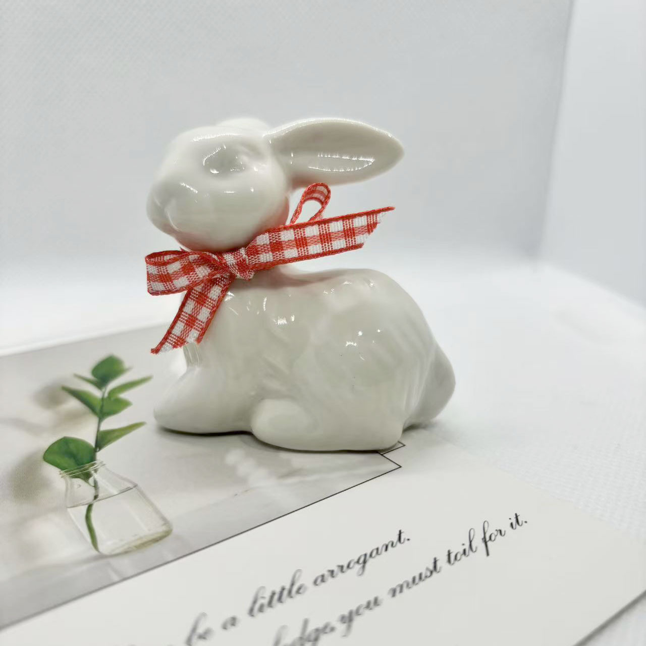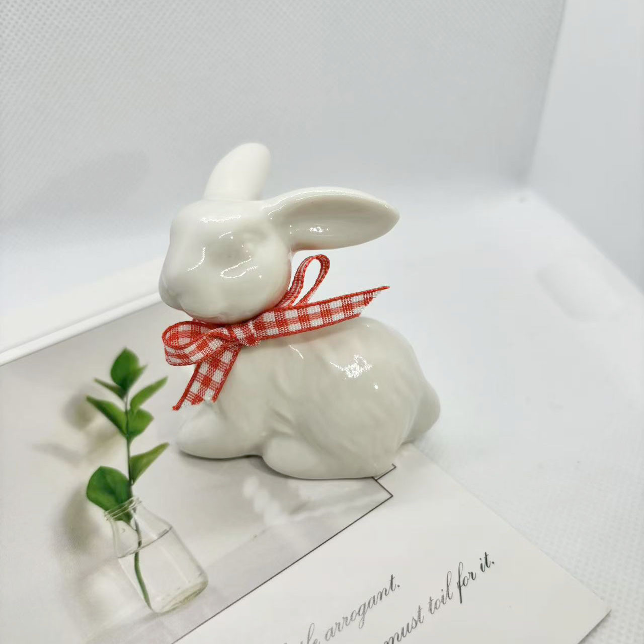 ins陶瓷创意兔子小摆件简约家居客厅玄关酒柜桌面陶瓷兔子装饰品