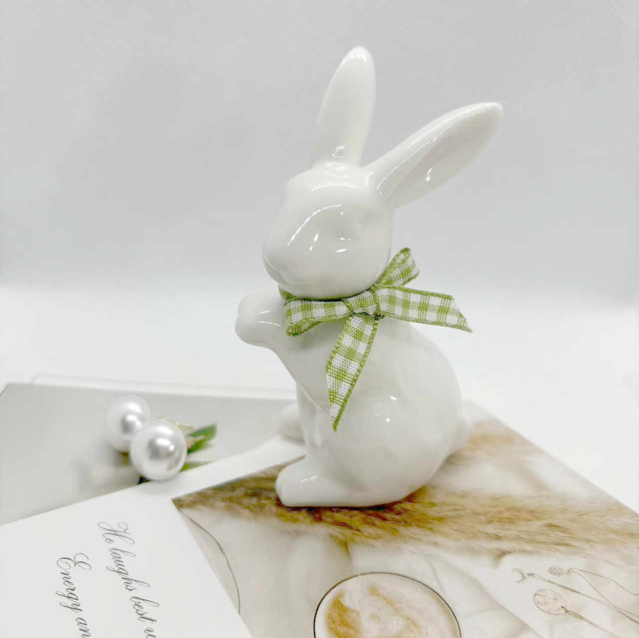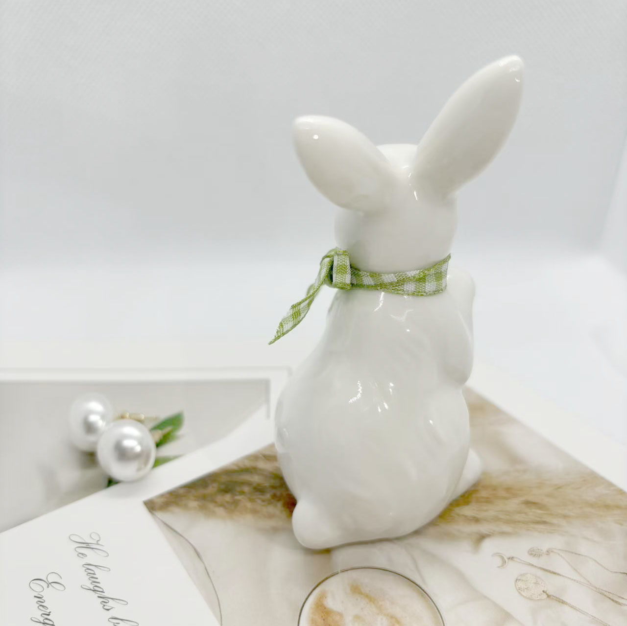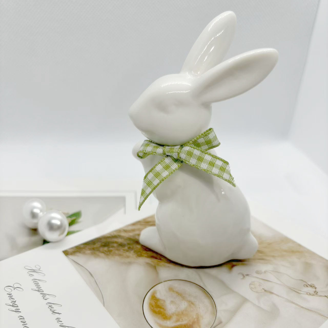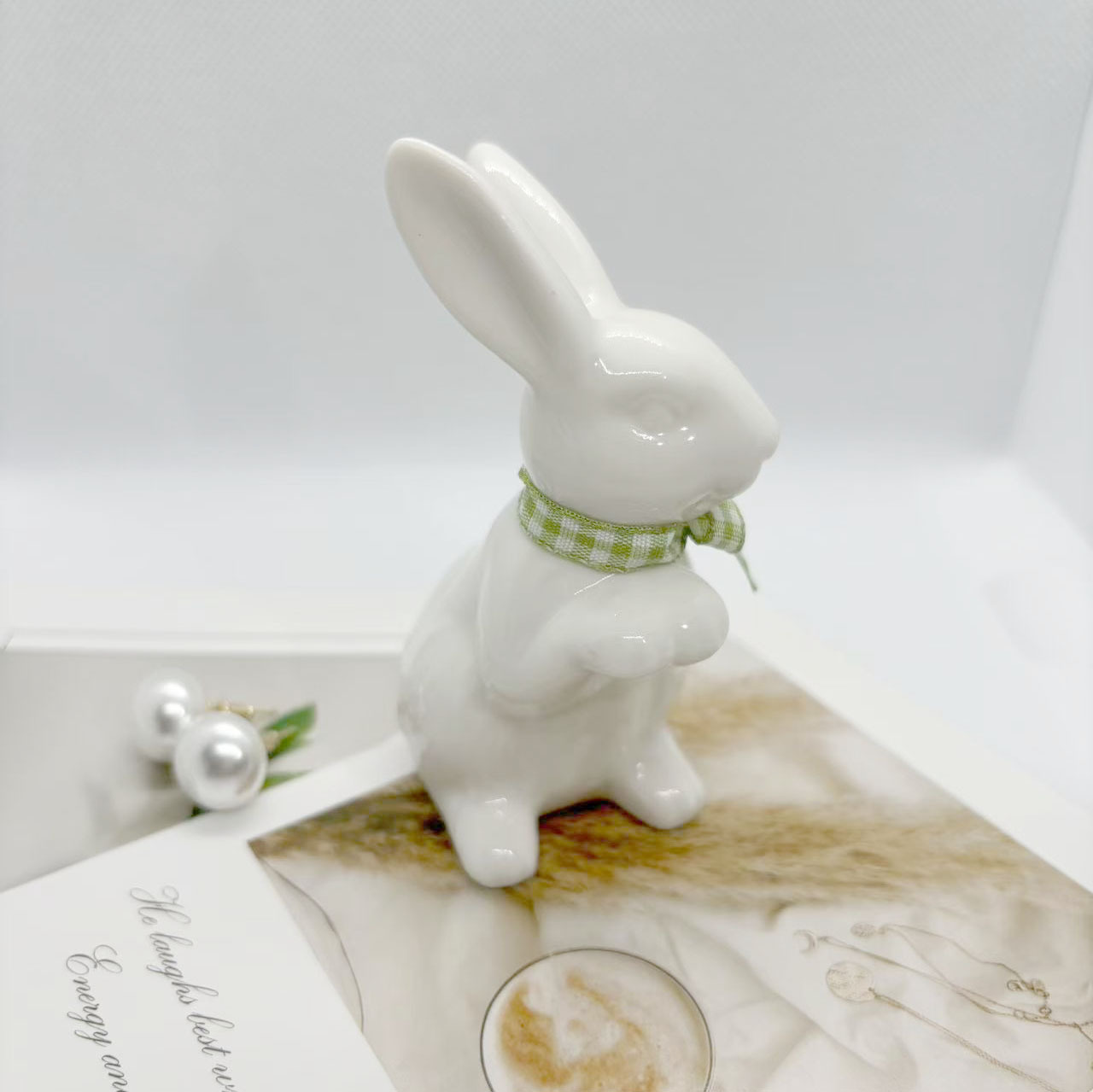 ins陶瓷创意兔子小摆件简约家居客厅玄关酒柜桌面陶瓷兔子装饰品