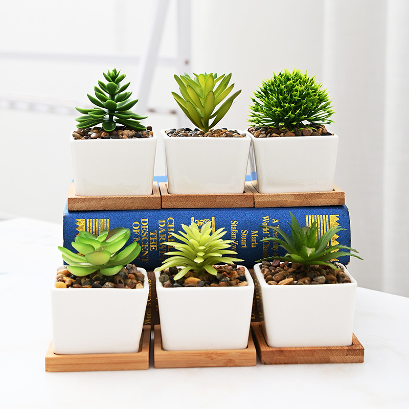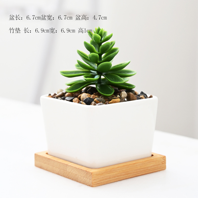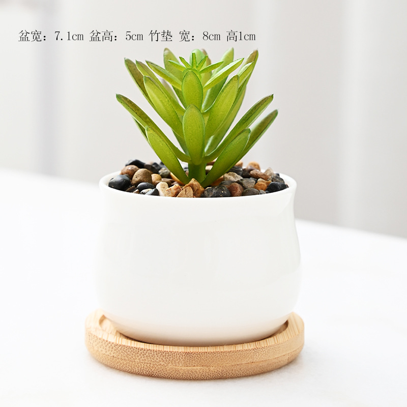 创意北欧陶瓷多肉花盆简约白瓷底托盘搭配组合盆栽迷你办公室花盆