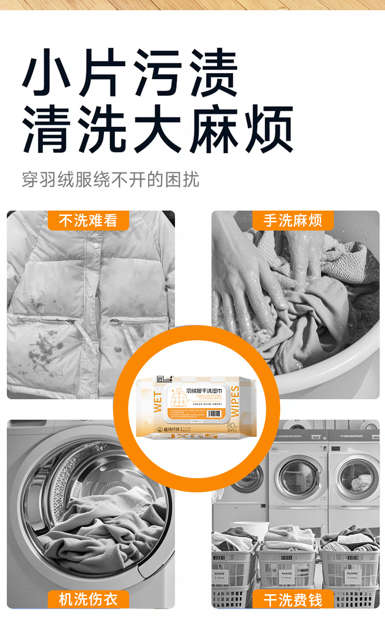 家用羽绒服清洁湿巾免洗擦拭衣服去污去渍干洗棉袄清洗湿纸巾