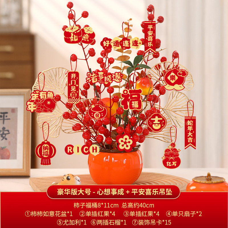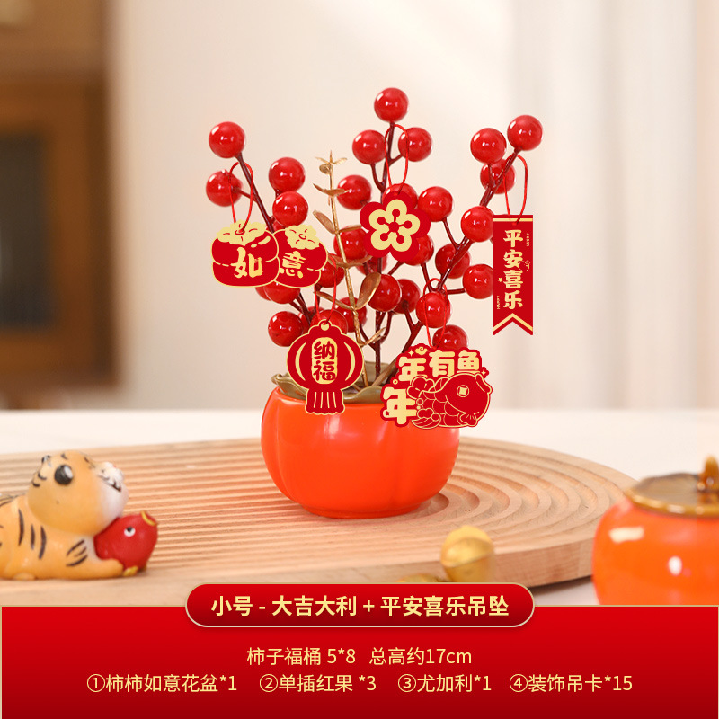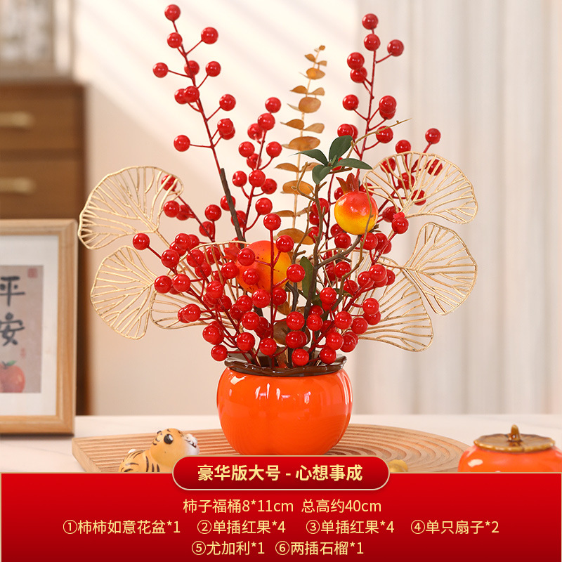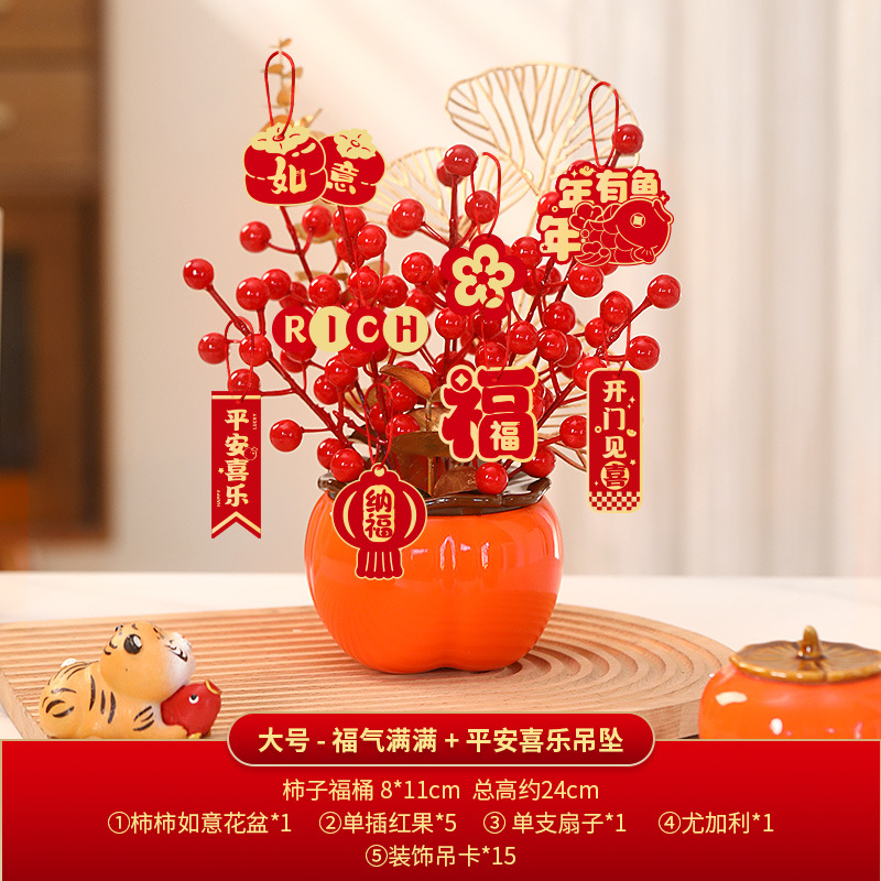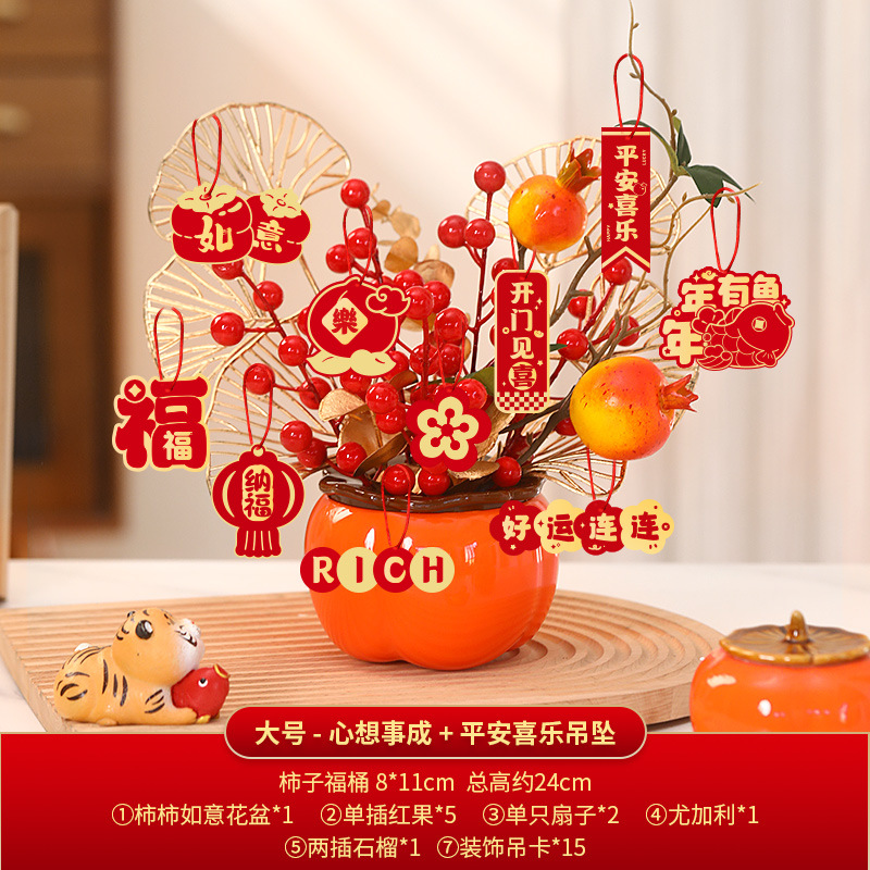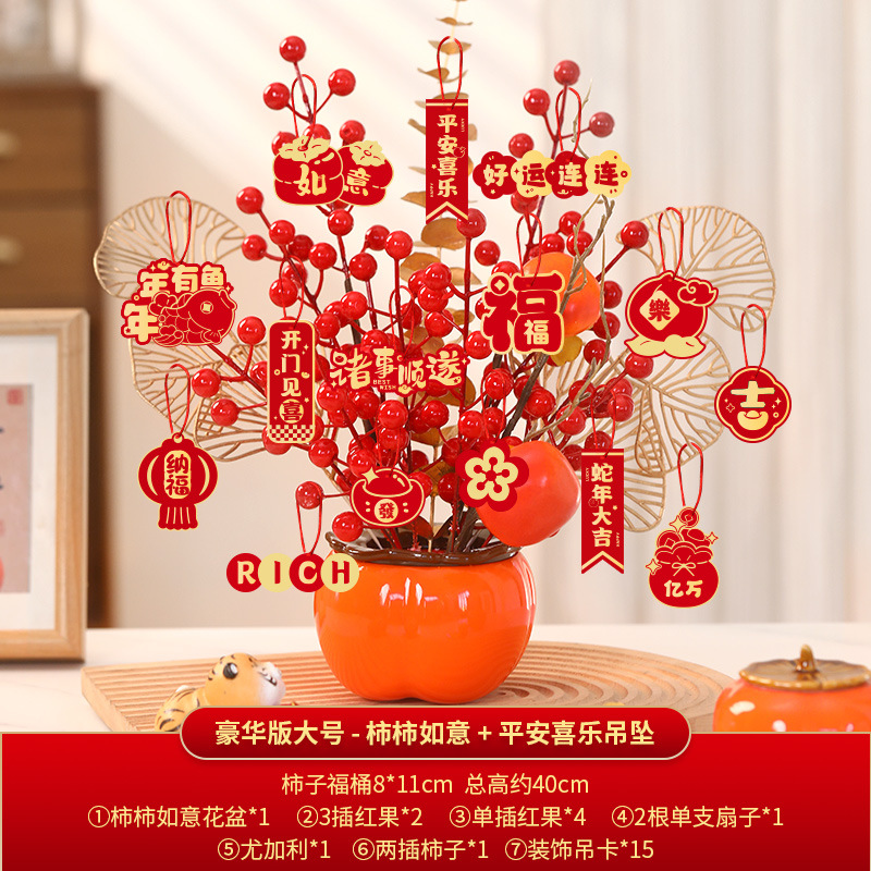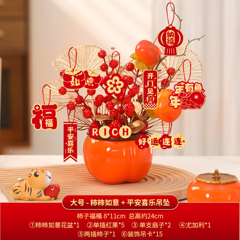 新年装饰品2026马年过年玄关客厅柿柿如意发财果摆件春节用品年货