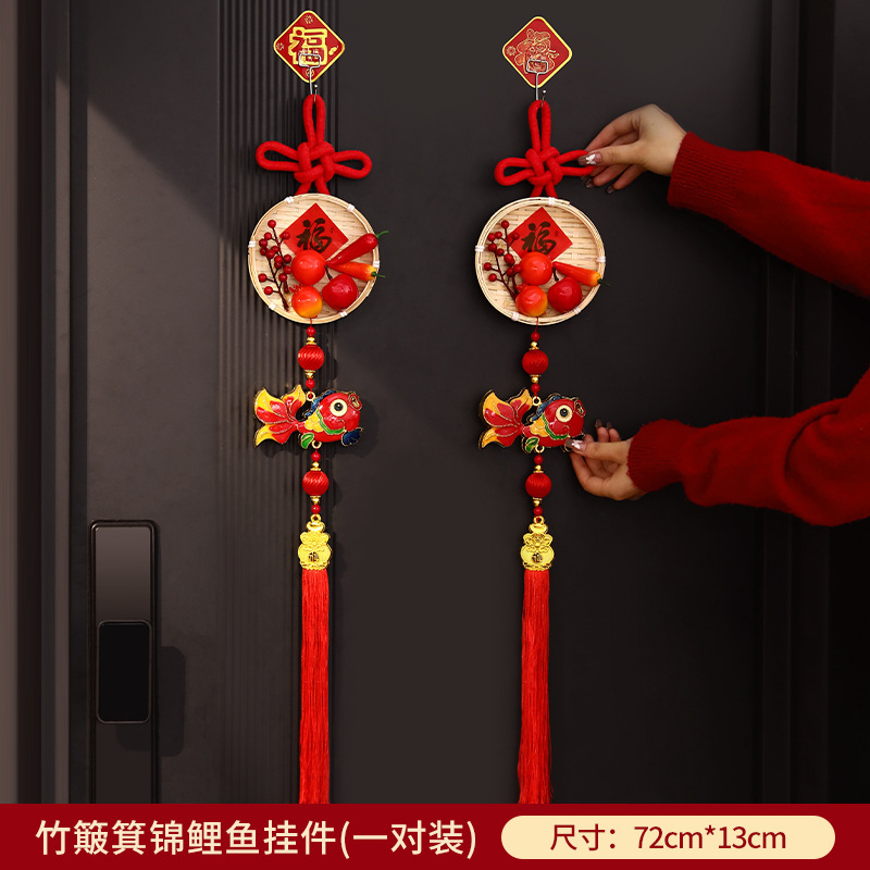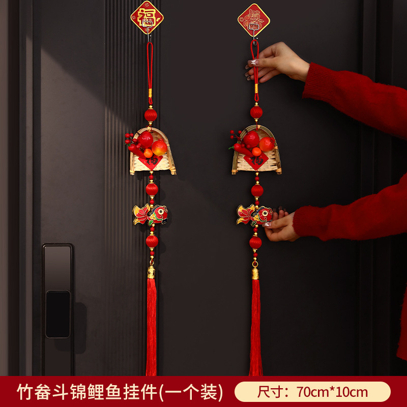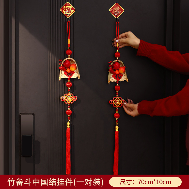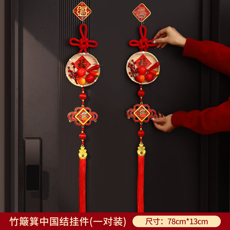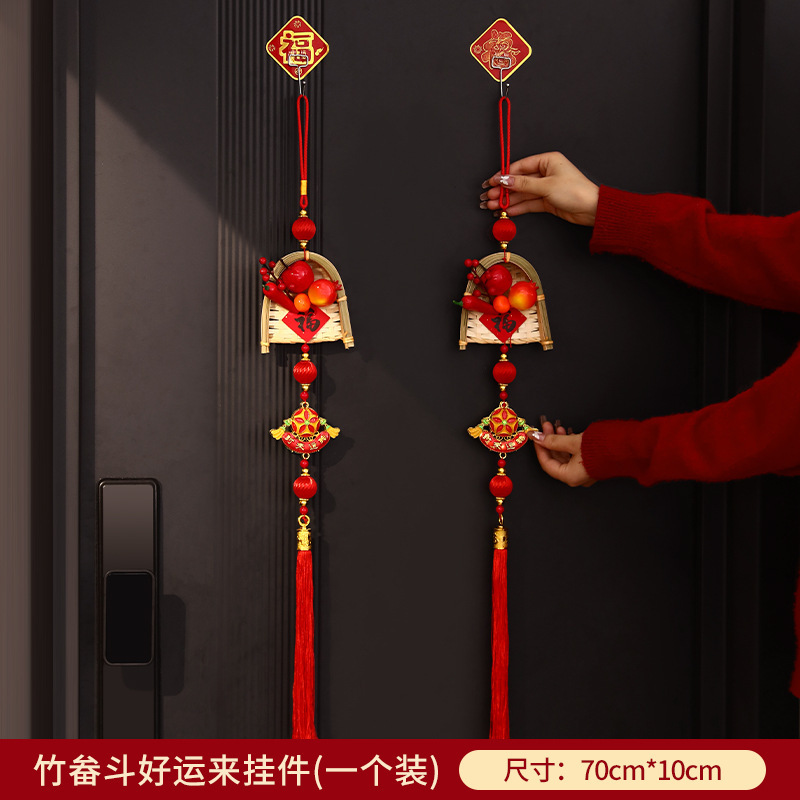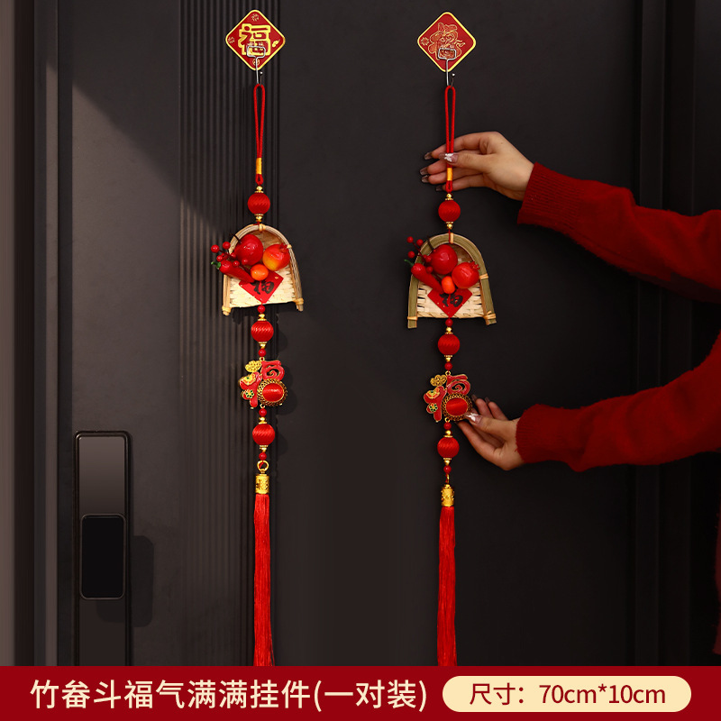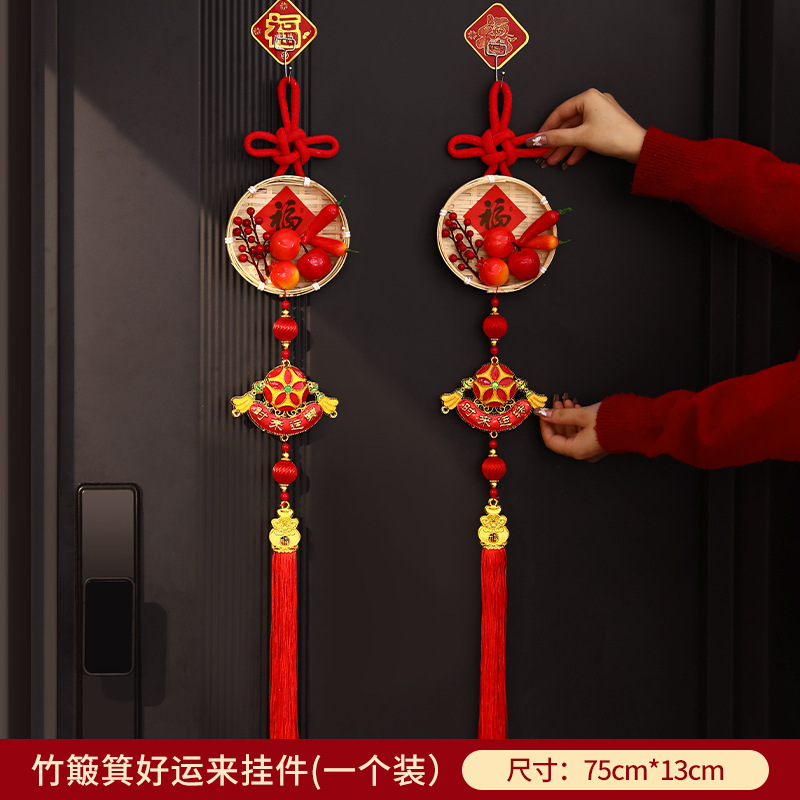 新年串串挂件2026马年春节客厅布置喜庆装饰过年簸箕柿子红果挂饰