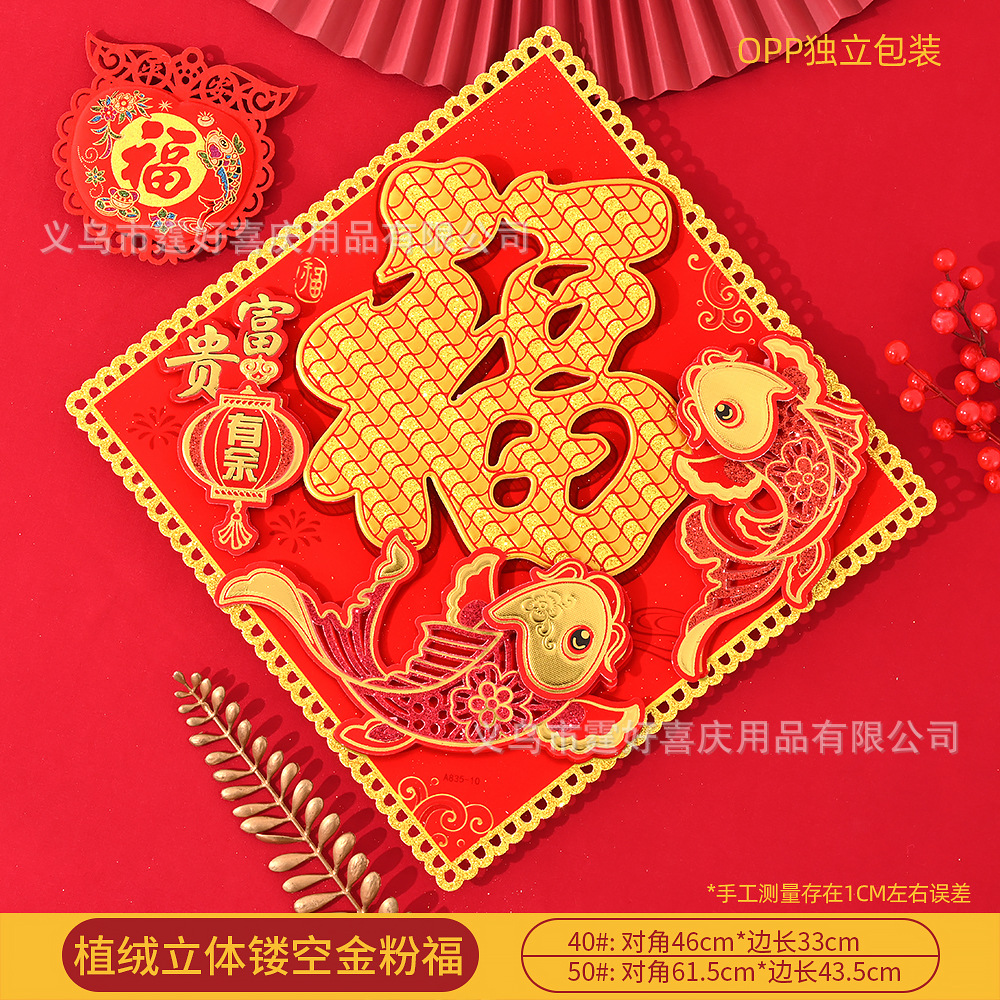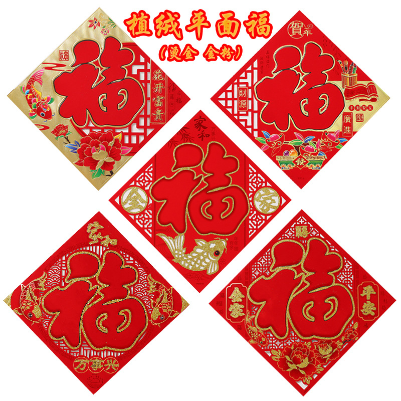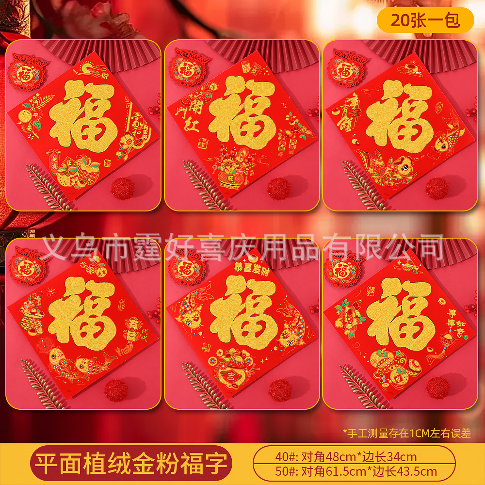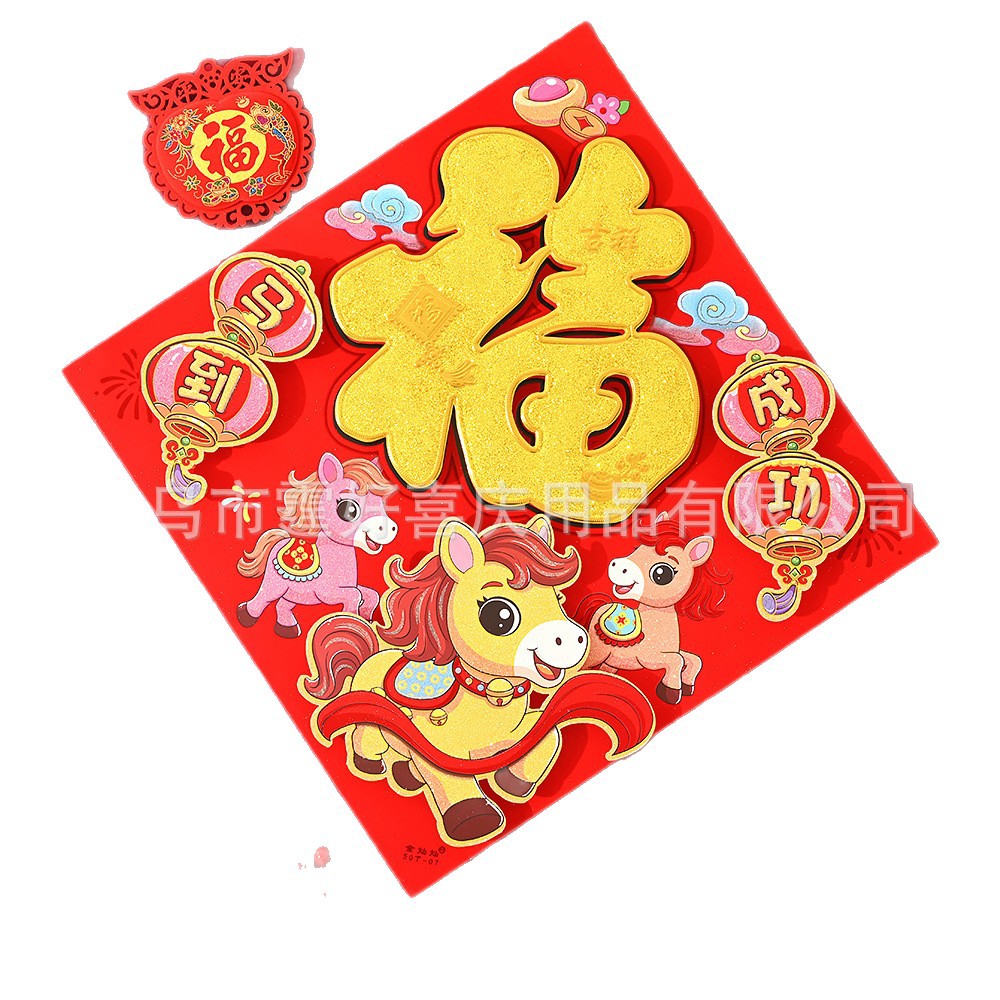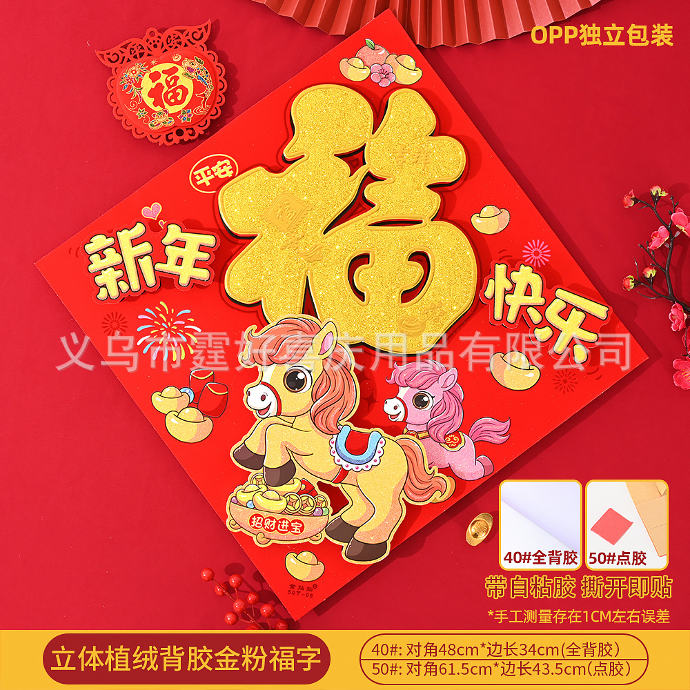 福字门贴2026新款马年过年春节墙贴新年大门装饰植绒金粉福年画批
