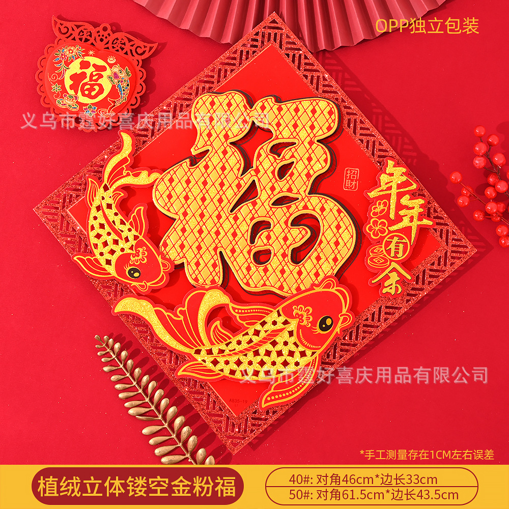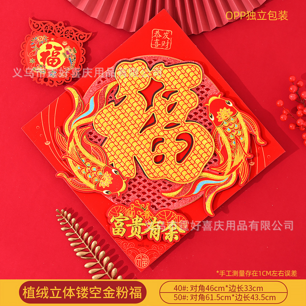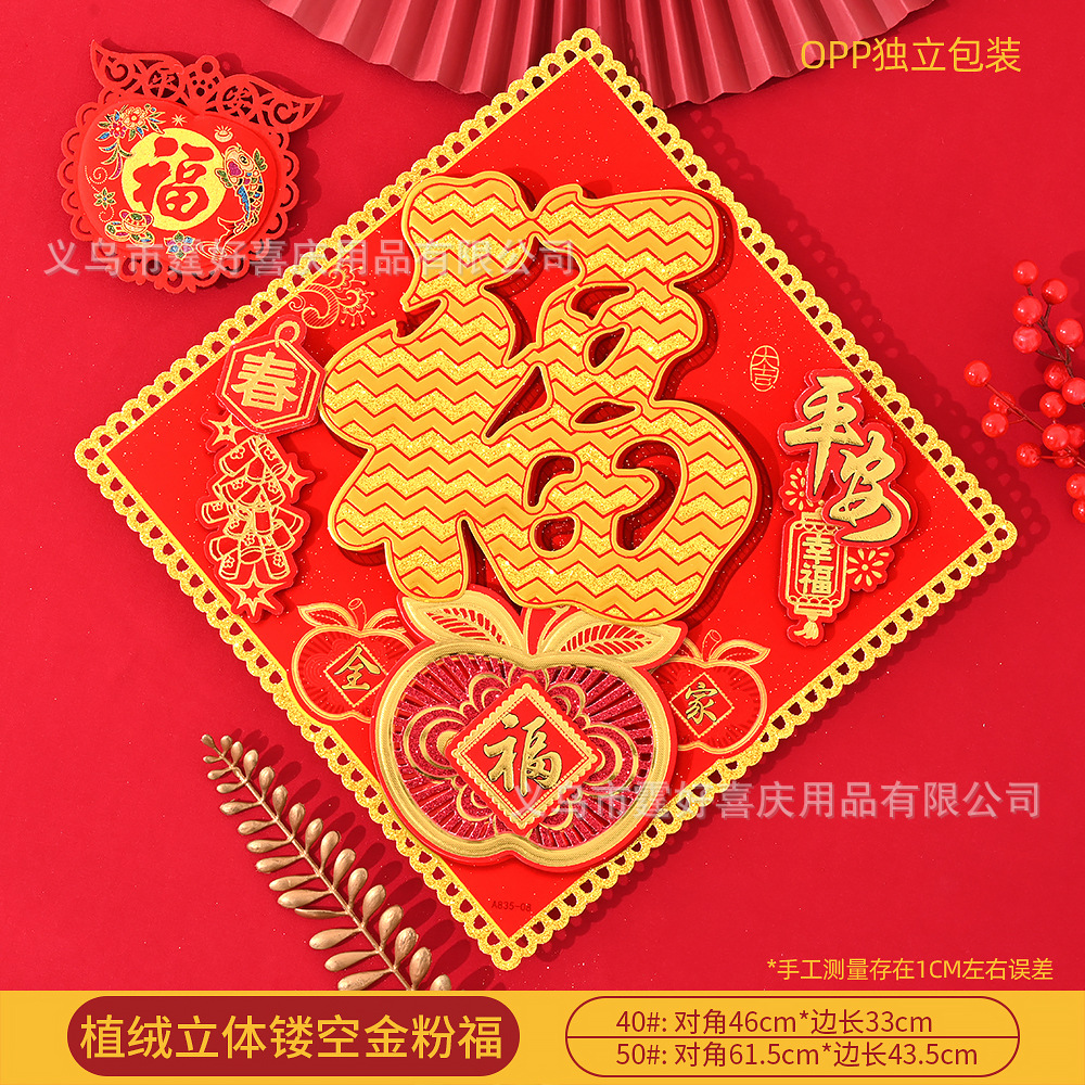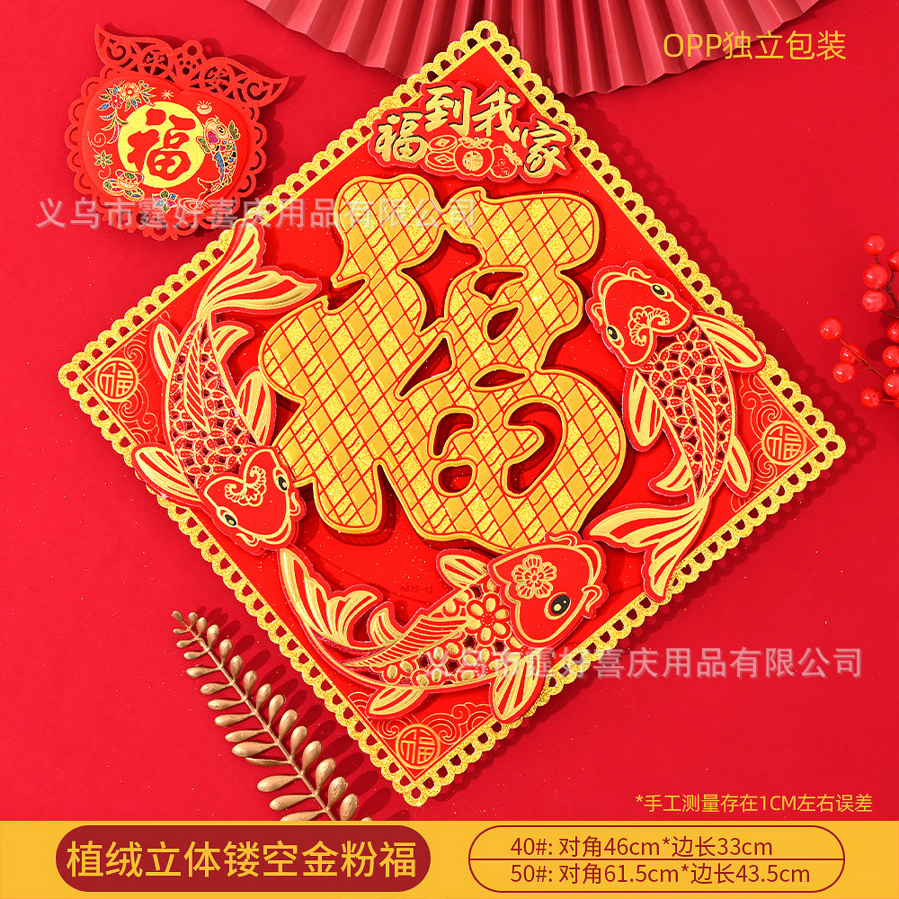 福字门贴2026新款马年过年春节墙贴新年大门装饰植绒金粉福年画批