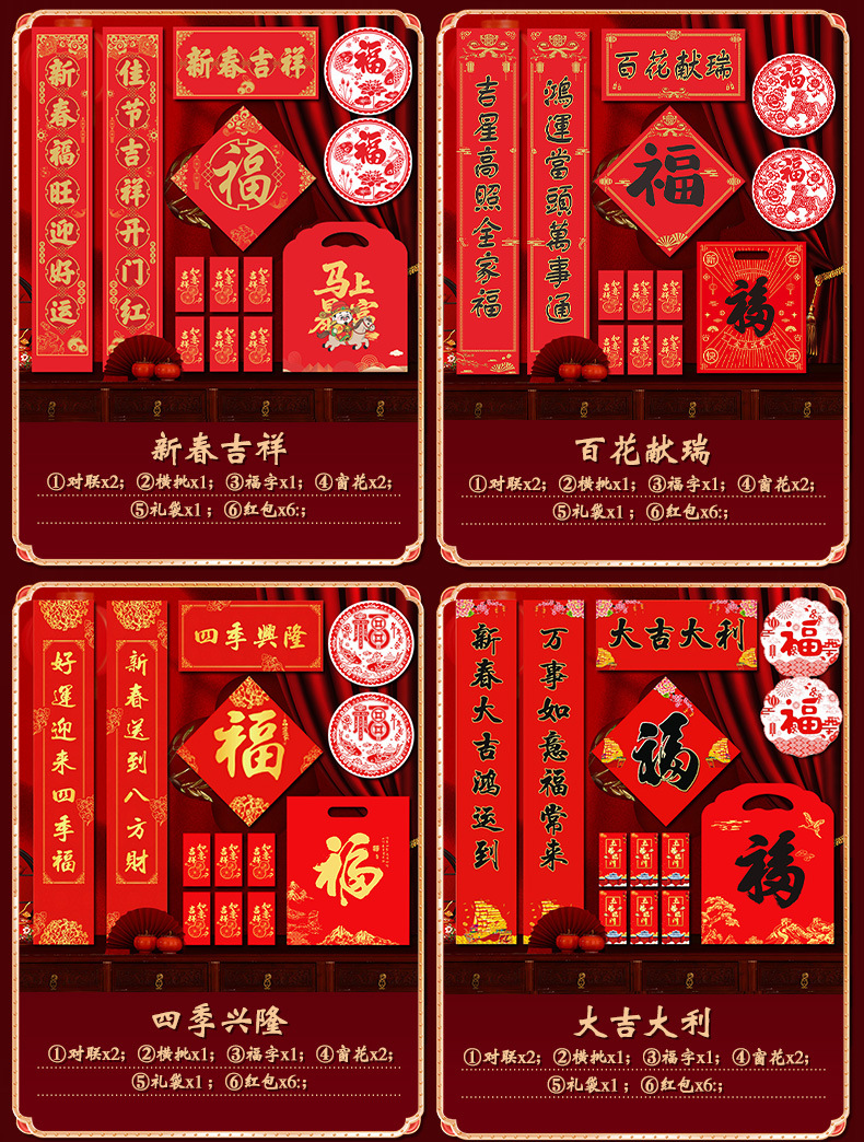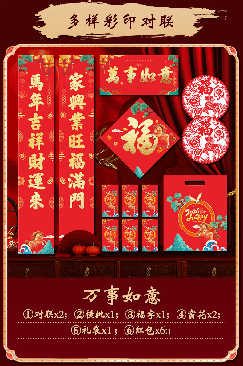 2026新款马年对联春节大礼包批货广告保险银行企业春联印logo定制