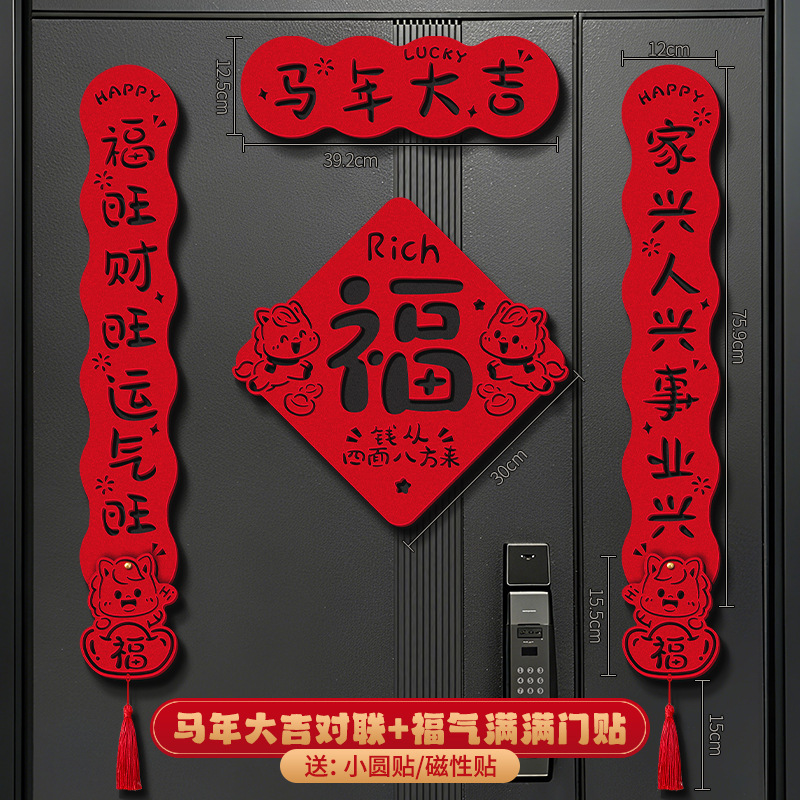 马年春联2026新款创意磁吸对联新年福字门贴过年装饰春节入户门联