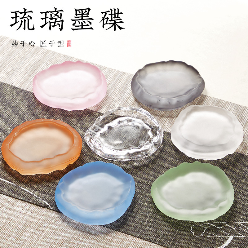 墨碟书法练习毛笔字琉璃款玻璃笔搁文房四宝墨蝶墨汁砚台墨池摆件