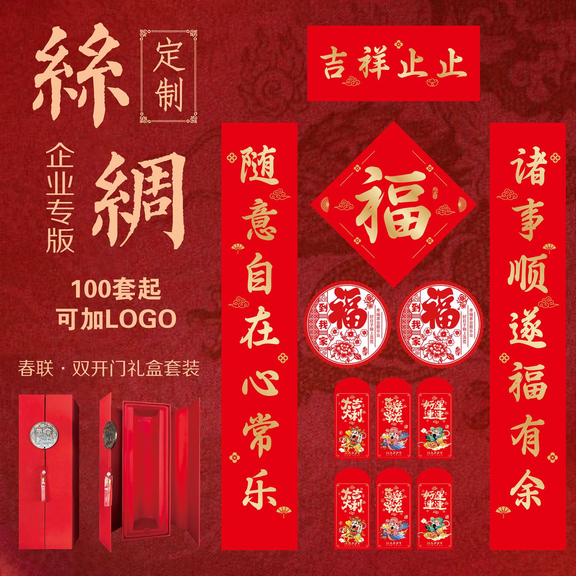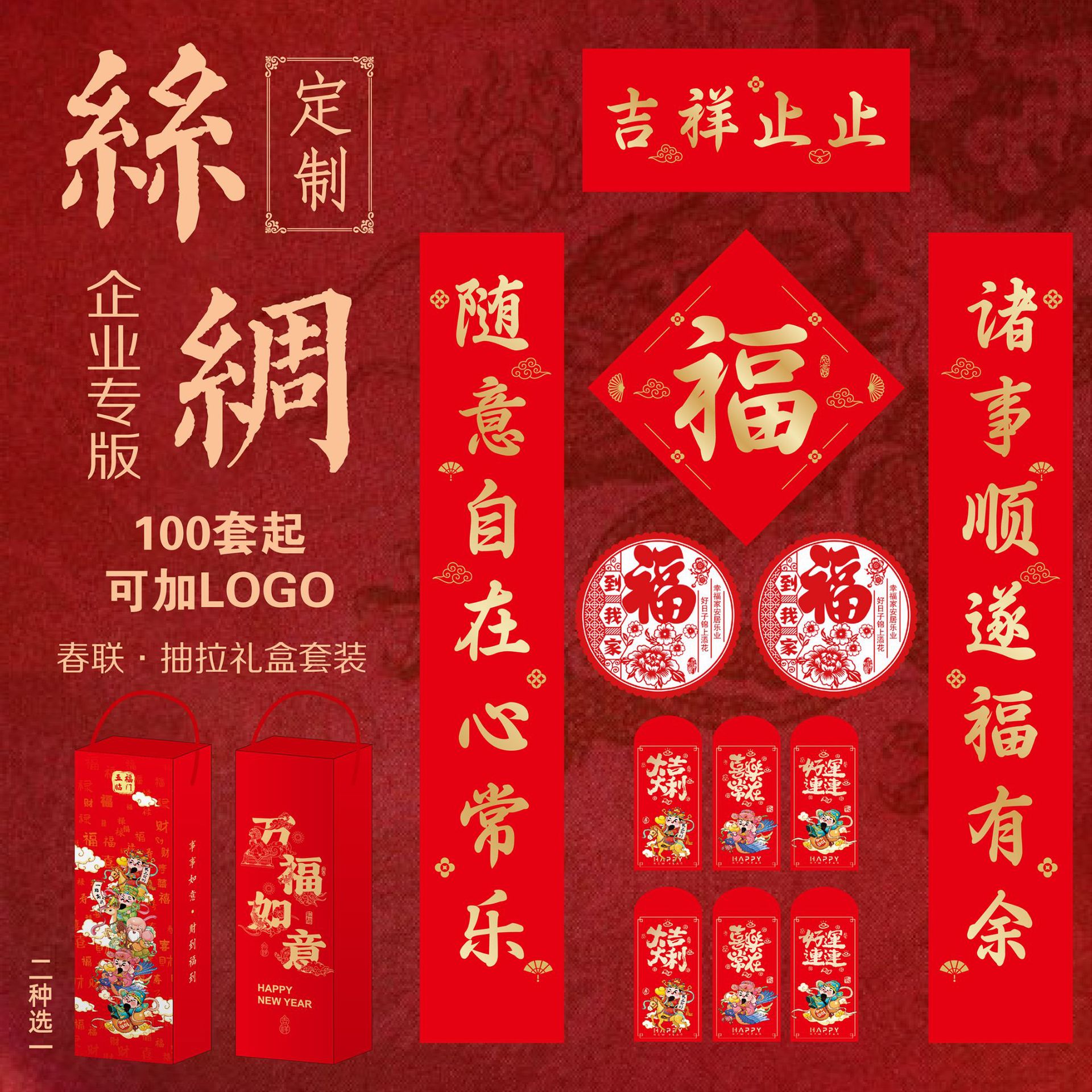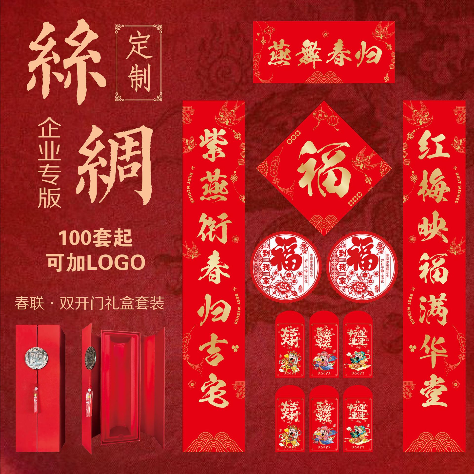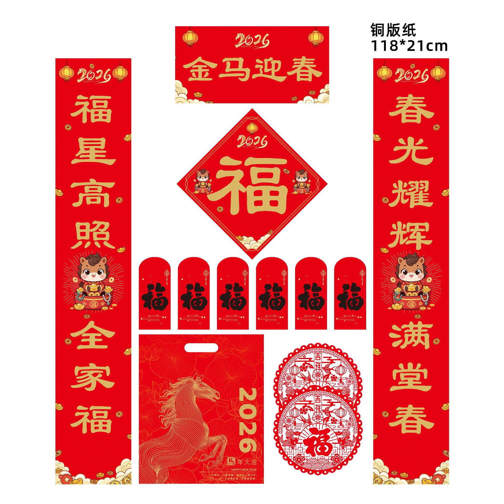 2026年马年新款春节书法对联批货礼盒春联国风丝印手工福字大礼包