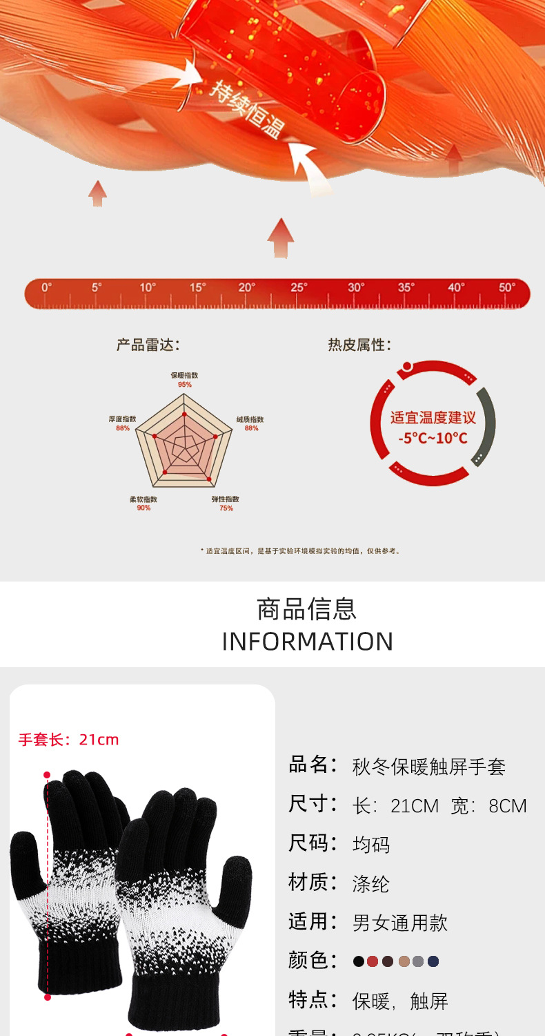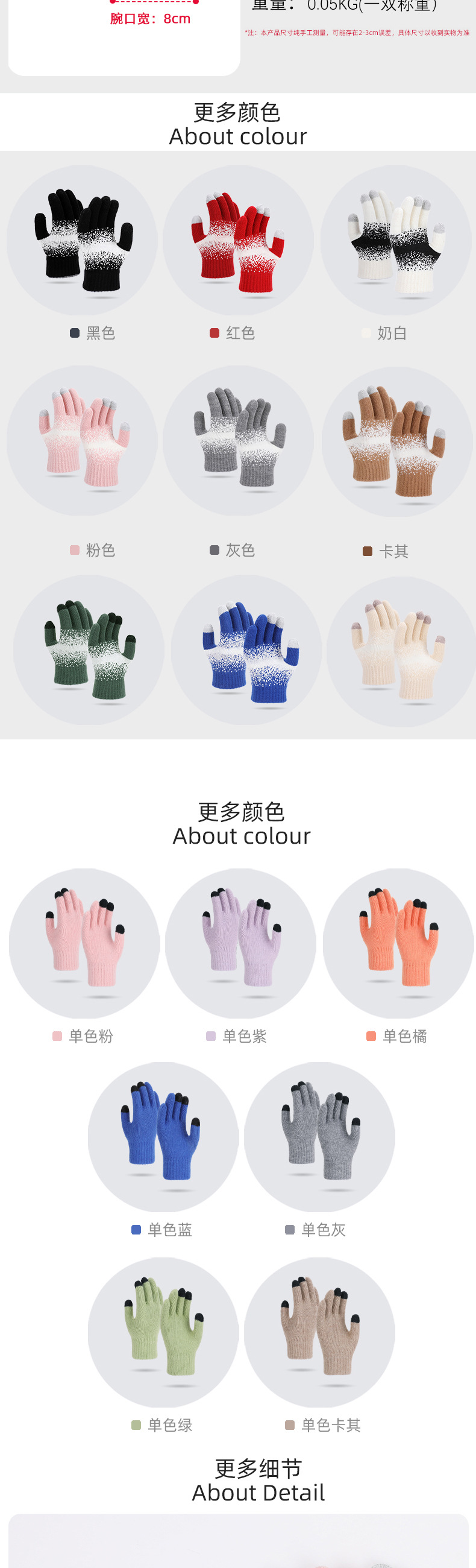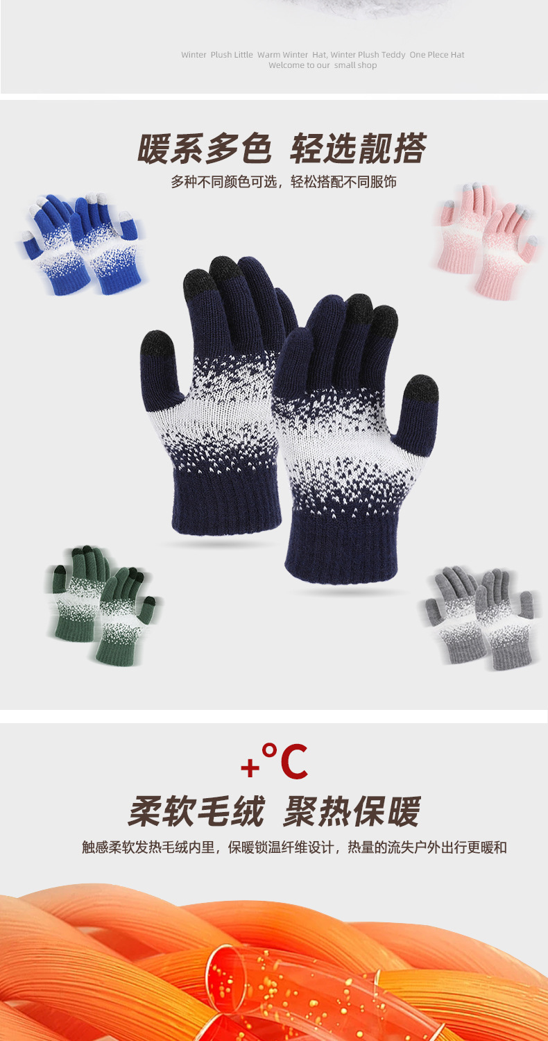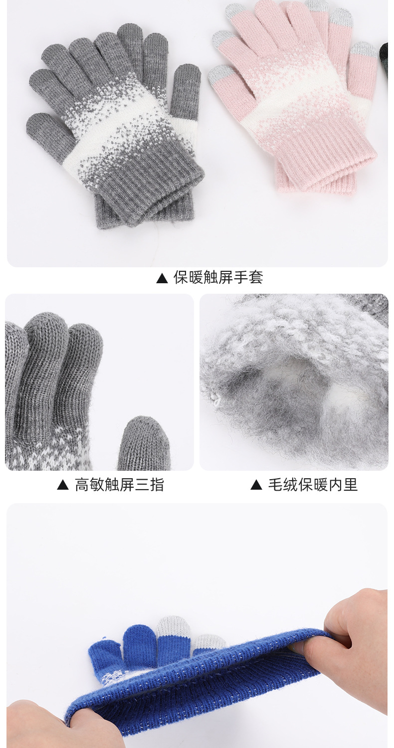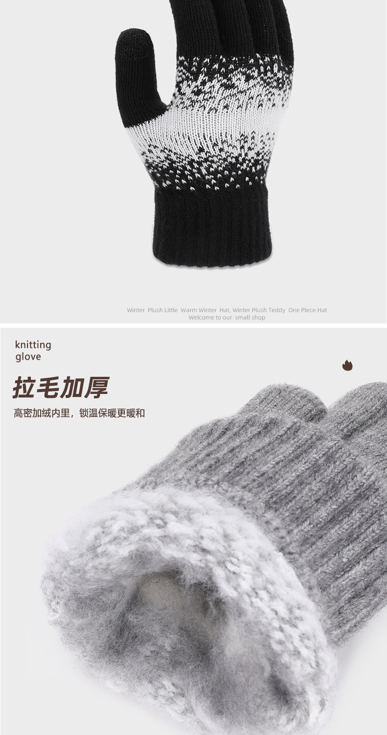秋冬季新款手套女士针织毛线韩版五指保暖手套加绒加厚触屏手套男